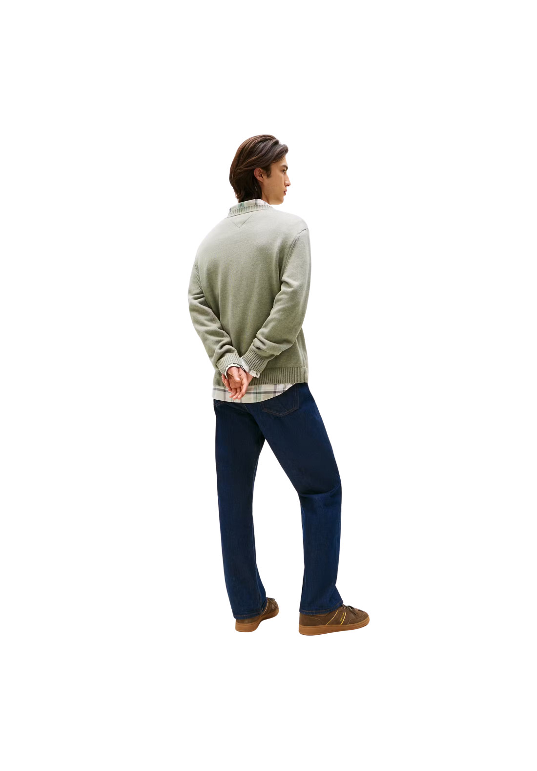 Sweater clásico con cuello redondo acanalado.