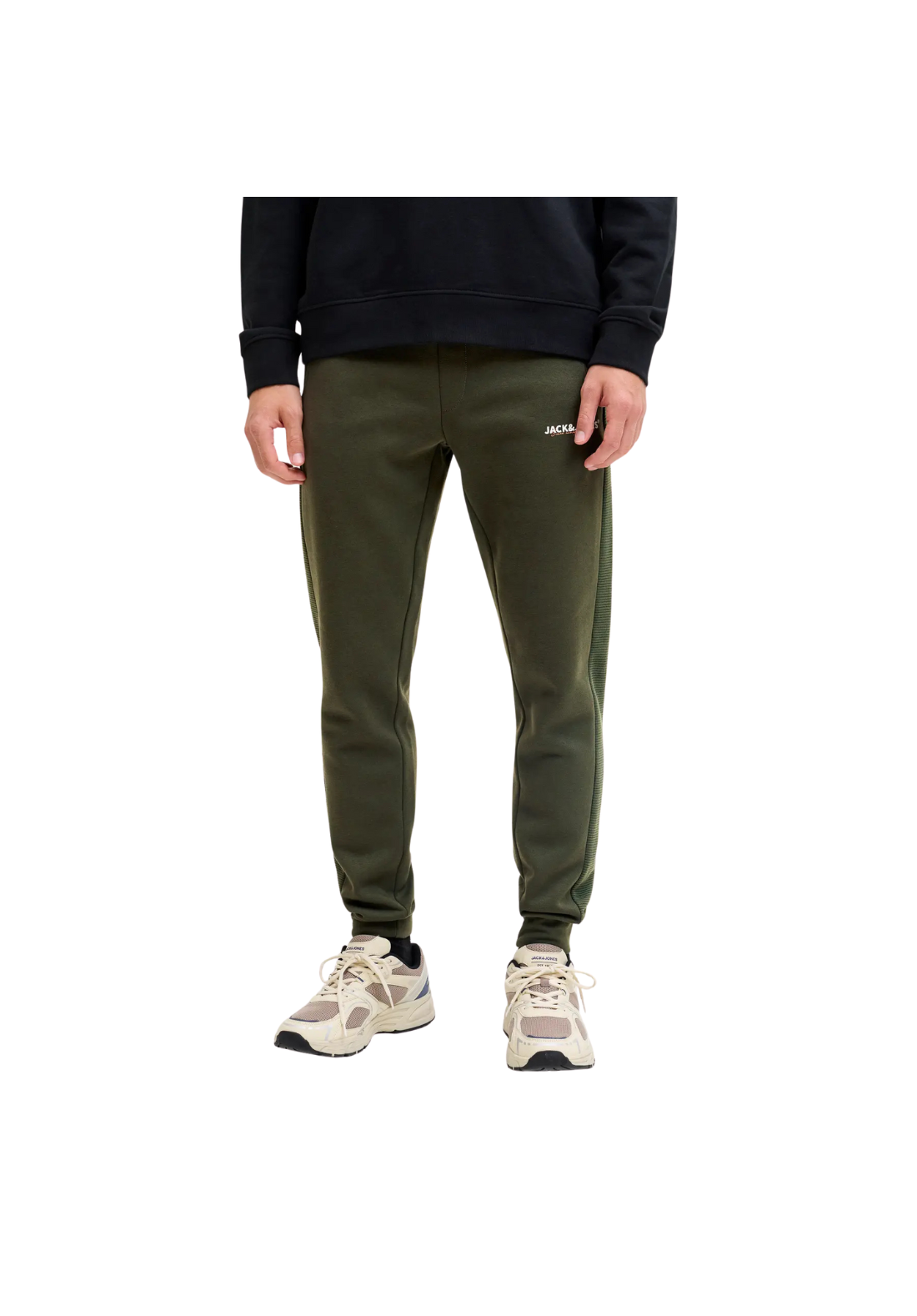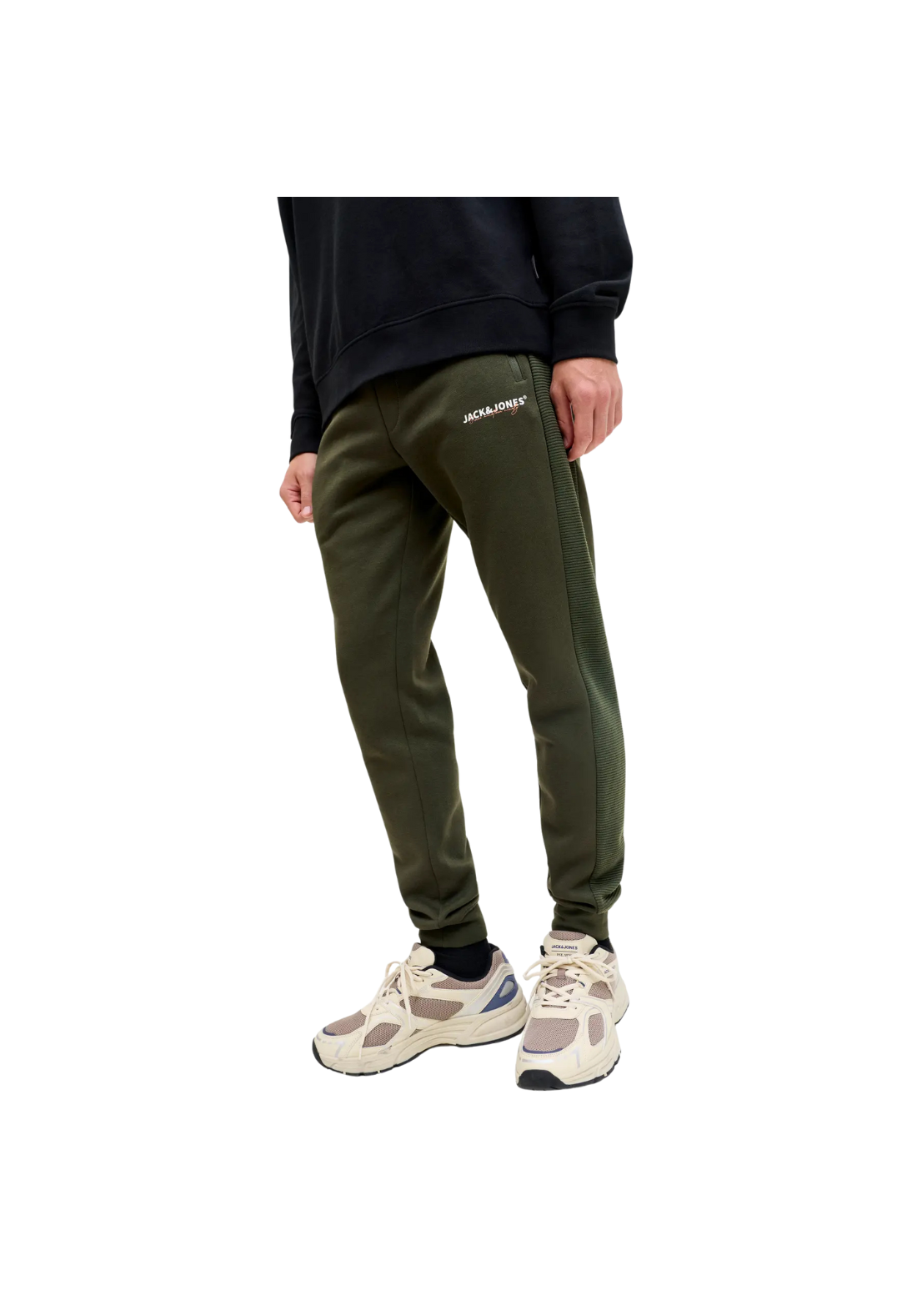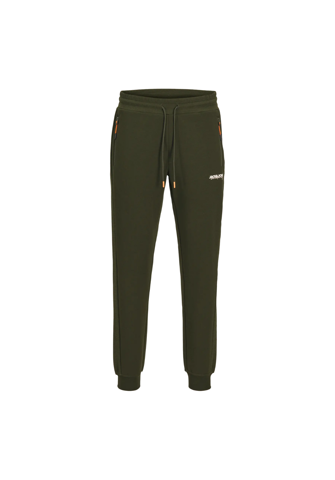 Pantalones deportivos con cordón en la cintura. Tiene bolsillos laterales con cierre de cremallera. Bajos acanalados y cintura elástica.