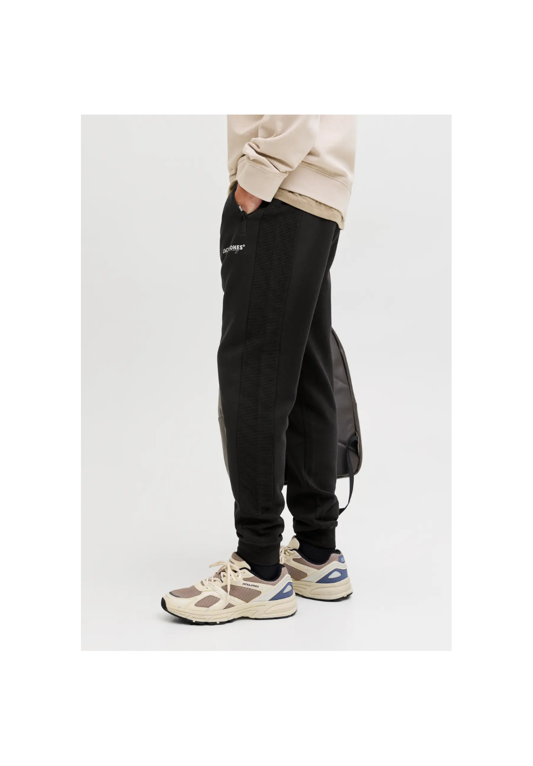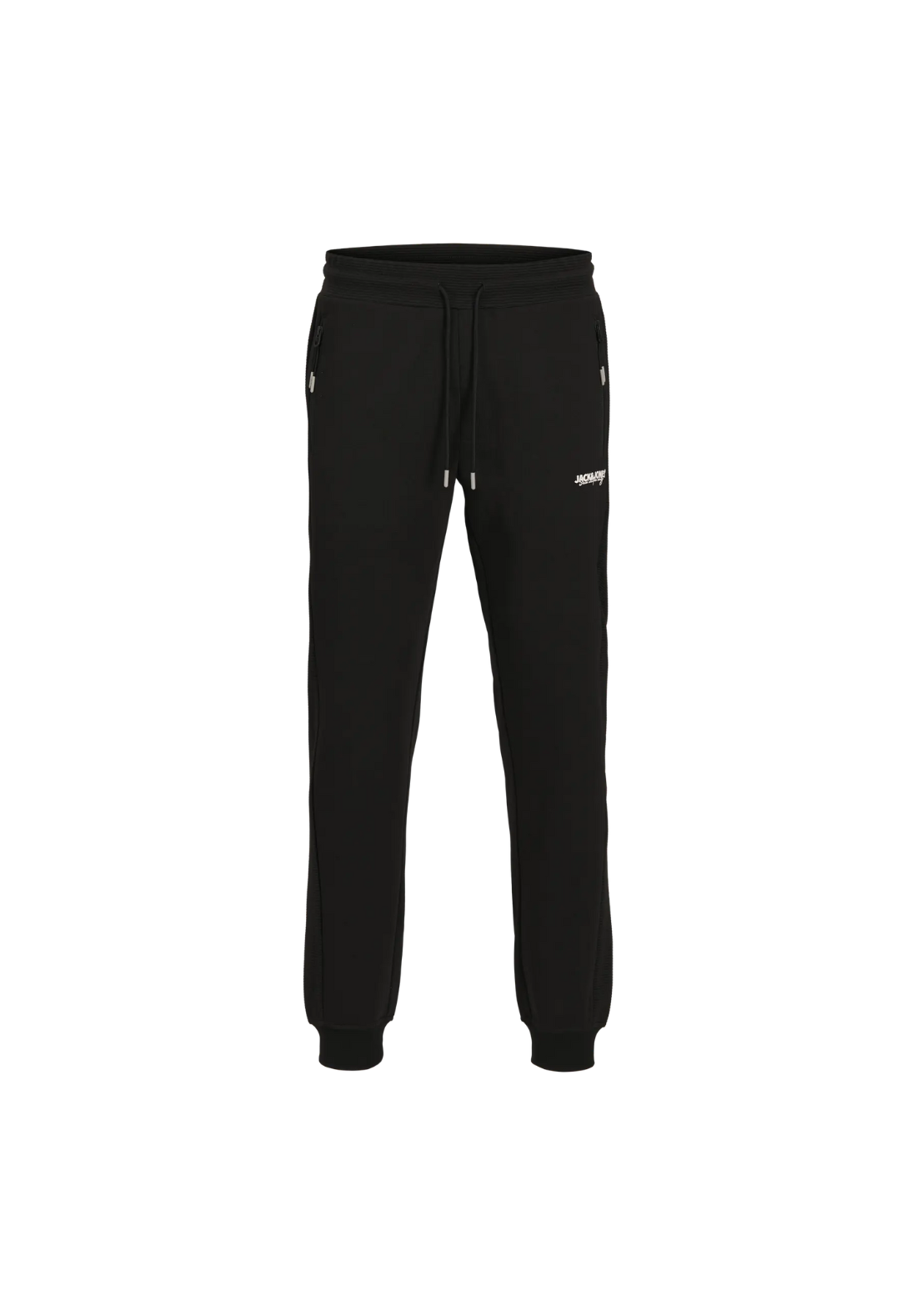 Pantalones deportivos con cordón en la cintura. Tiene bolsillos laterales con cierre de cremallera. Bajos acanalados y cintura elástica.