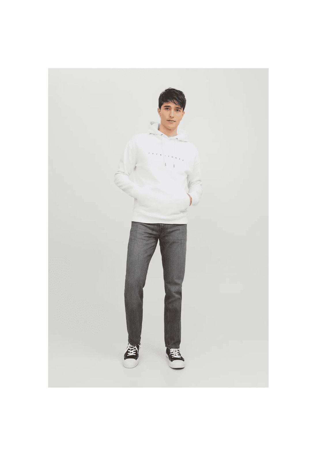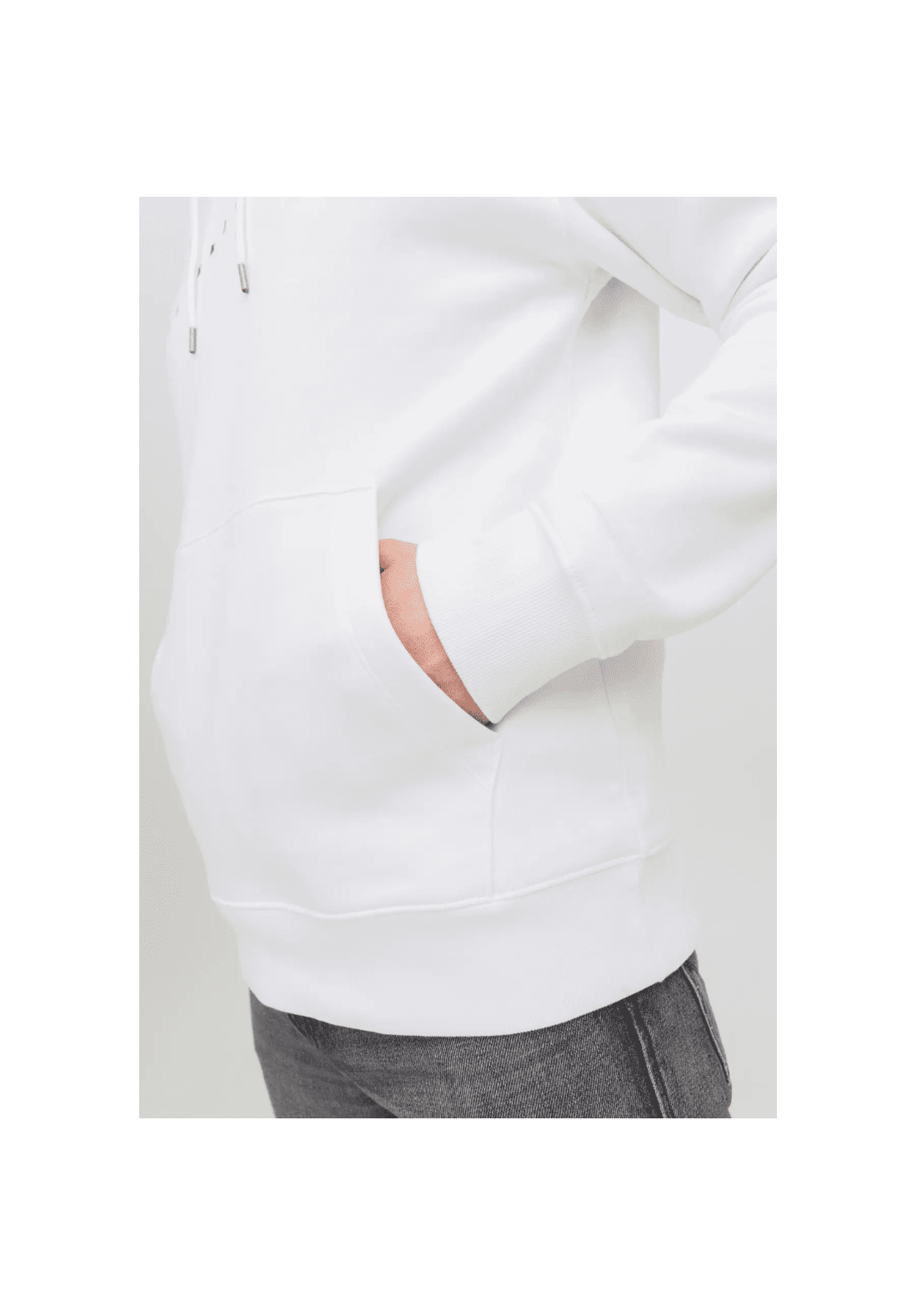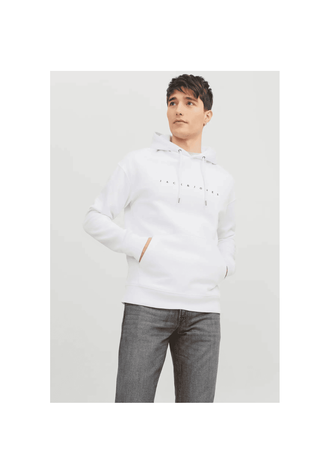 Sudadera con capucha y cordón ajustable. Tiene bolsillo tipo canguro.