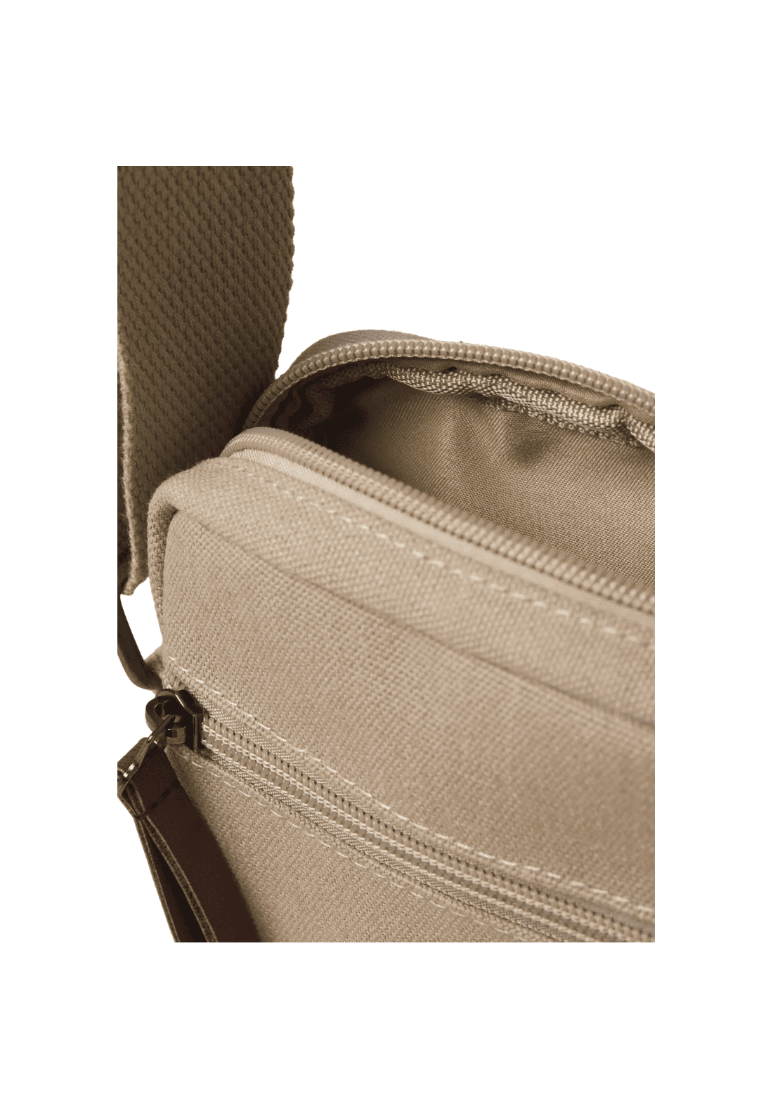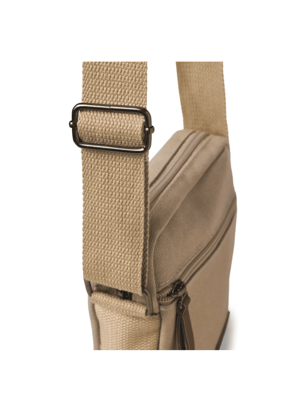 Bolso bandolera con correa ajustable. El cierre es de cremallera.