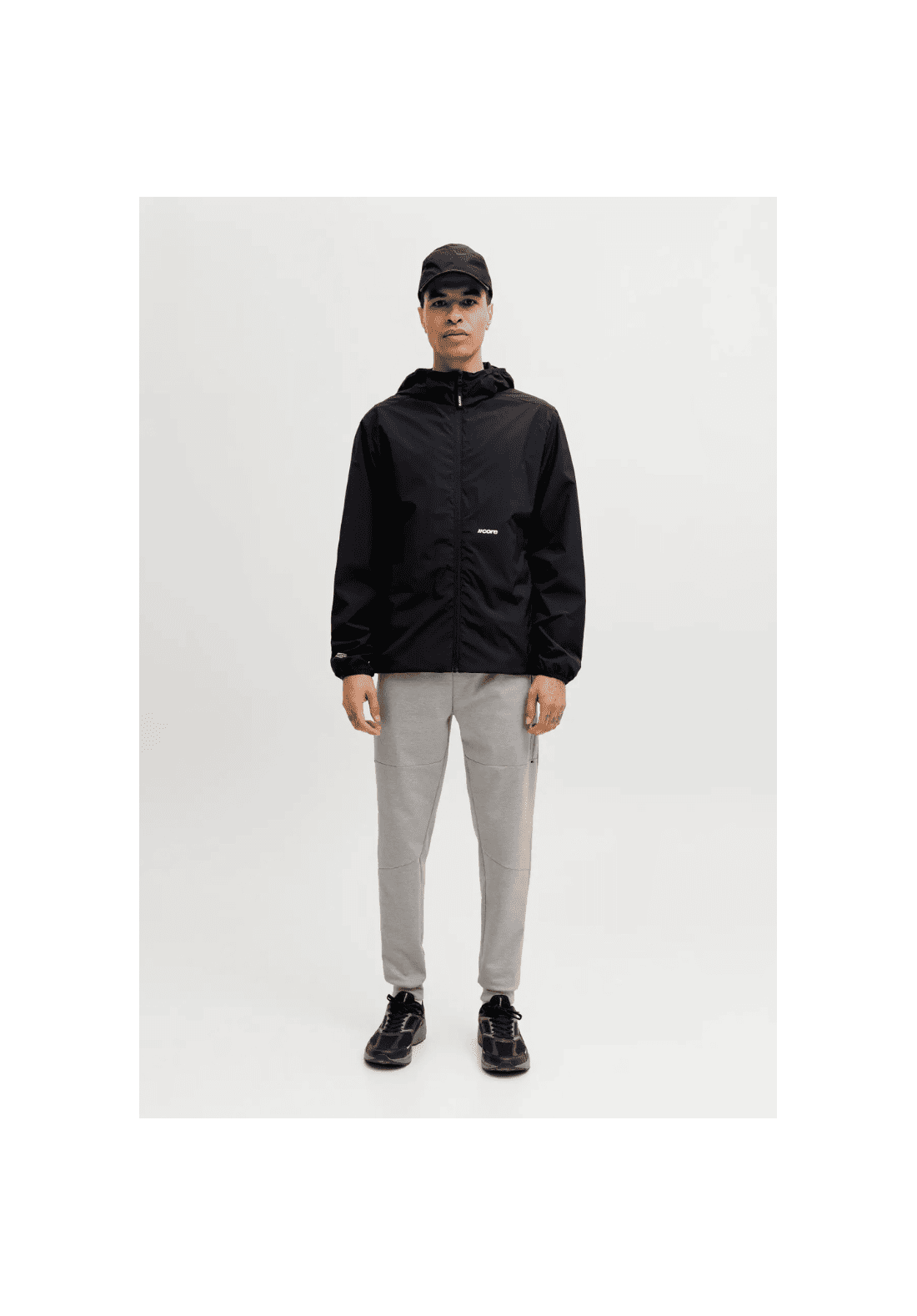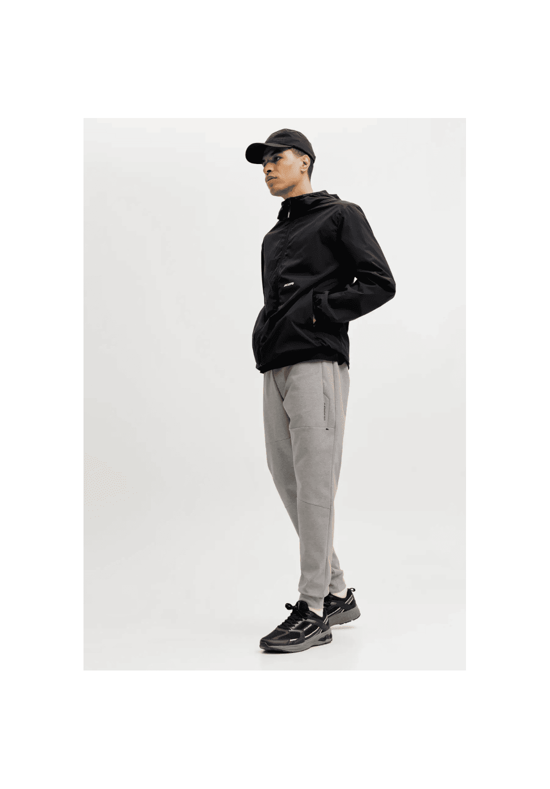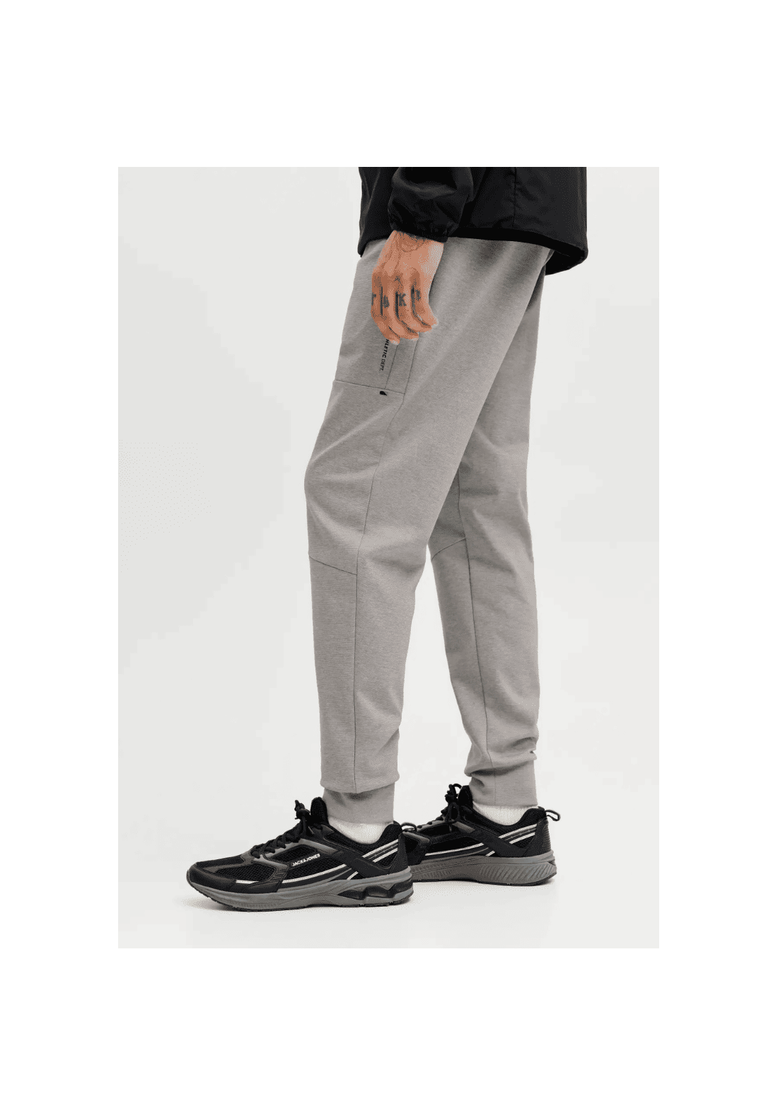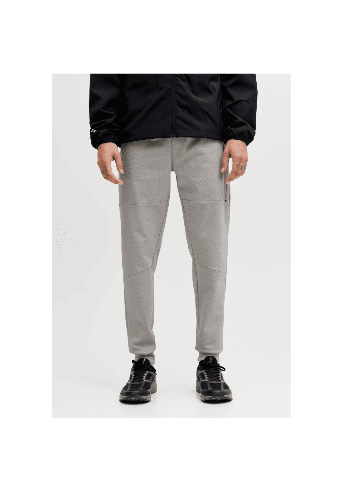 Pantalones de cintura elástica con cierre de cordón. Tiene dos bolsillos delanteros con cremallera. Bajos acanalados.