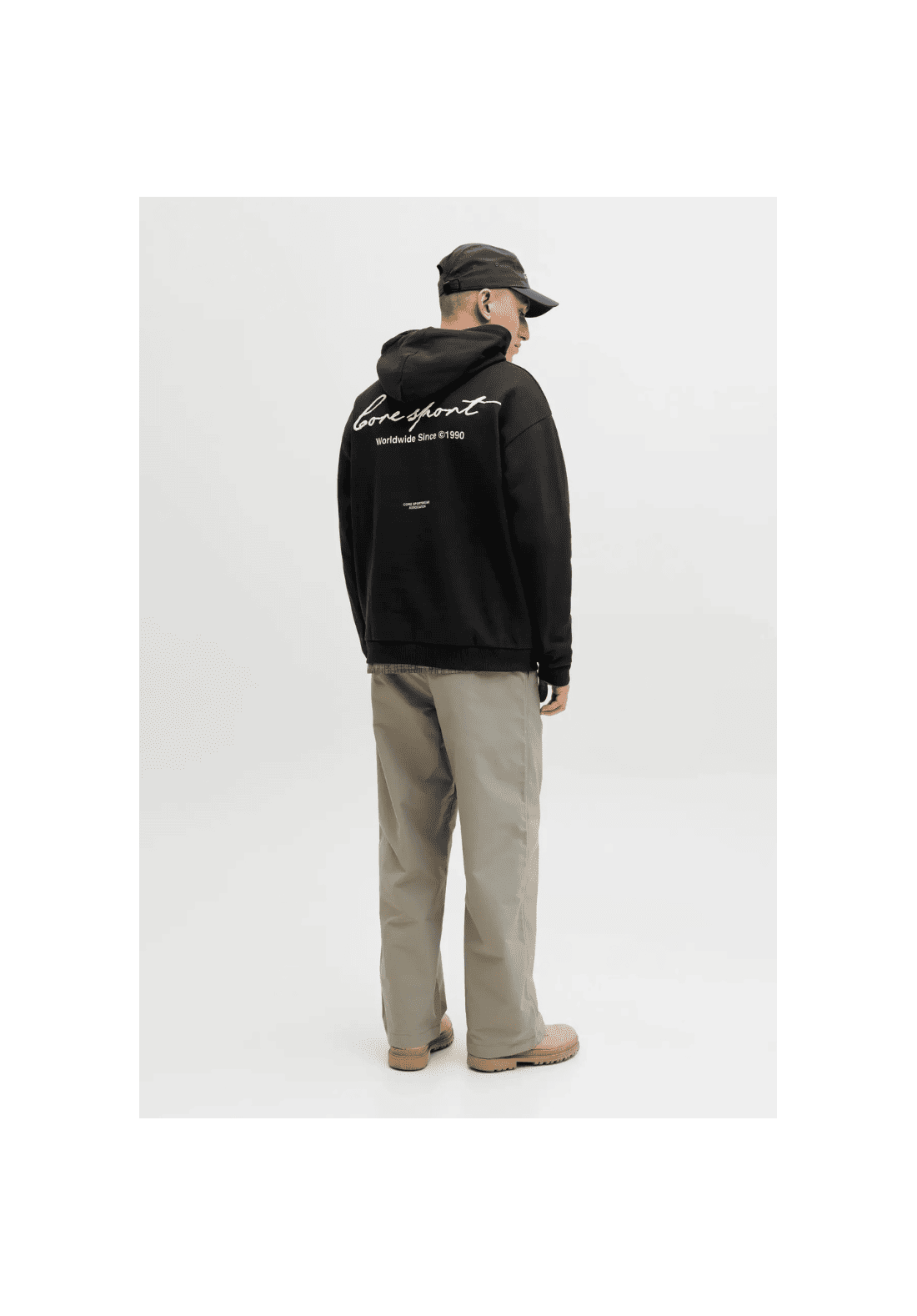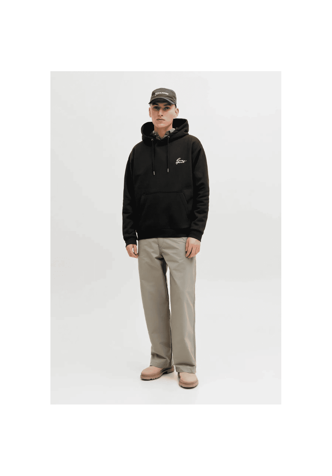 Sudadera con capucha y bolsillo tipo canguro. Estampado en la parte delantera y trasera