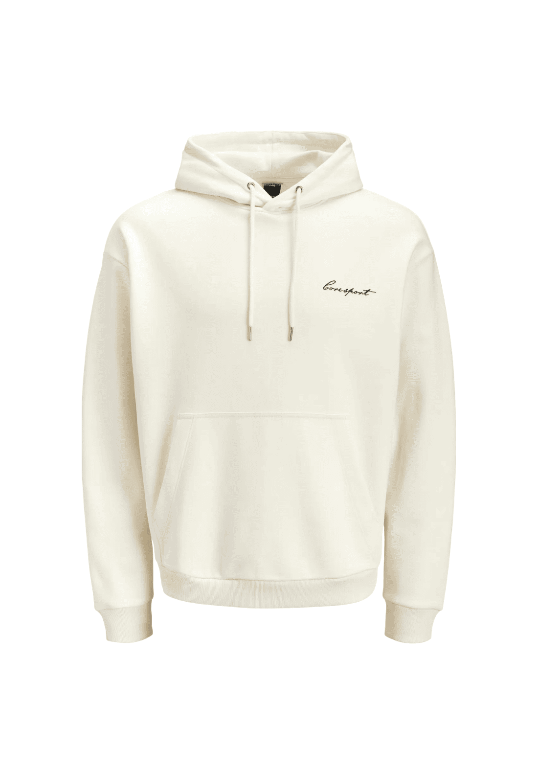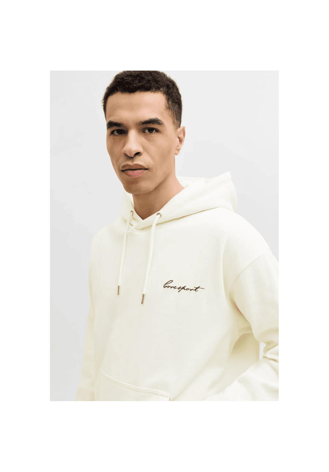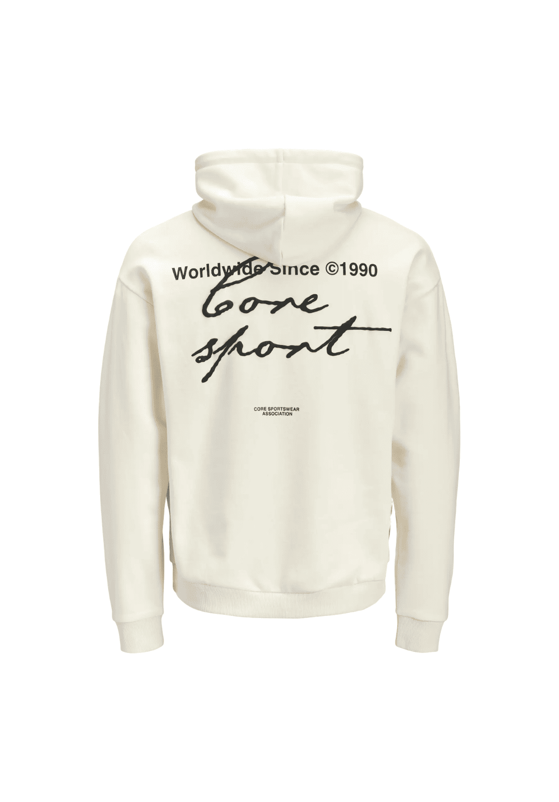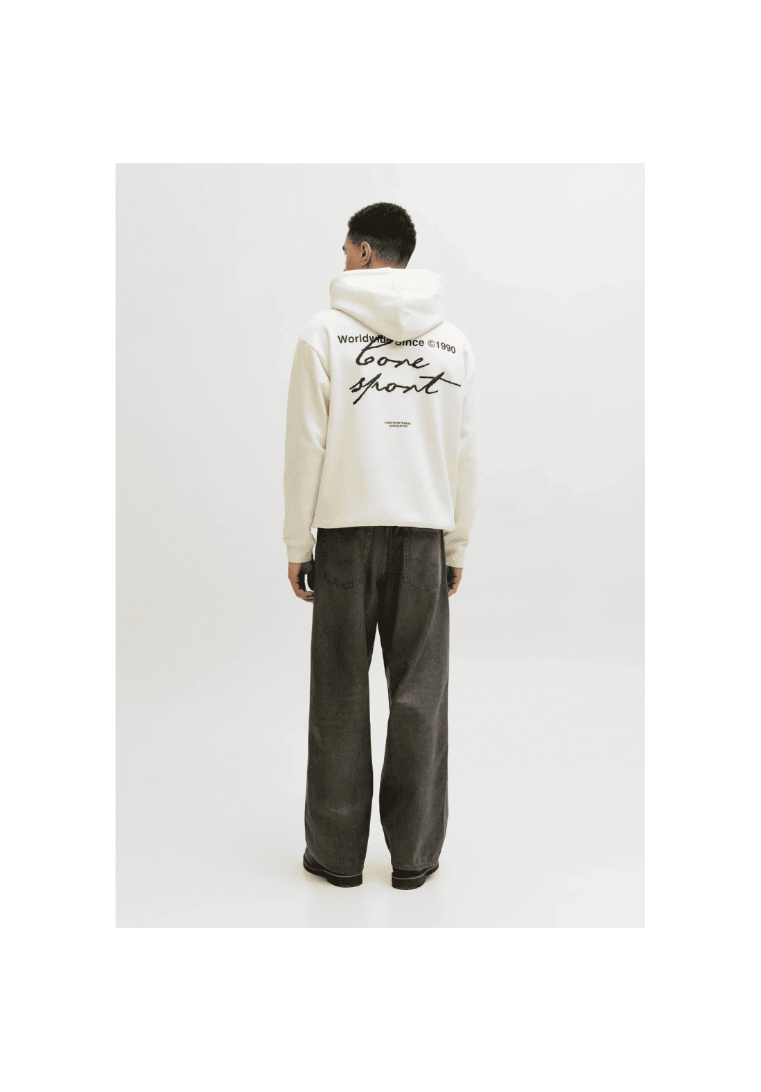 Sudadera con capucha y bolsillo tipo canguro. Estampado en la parte delantera y trasera