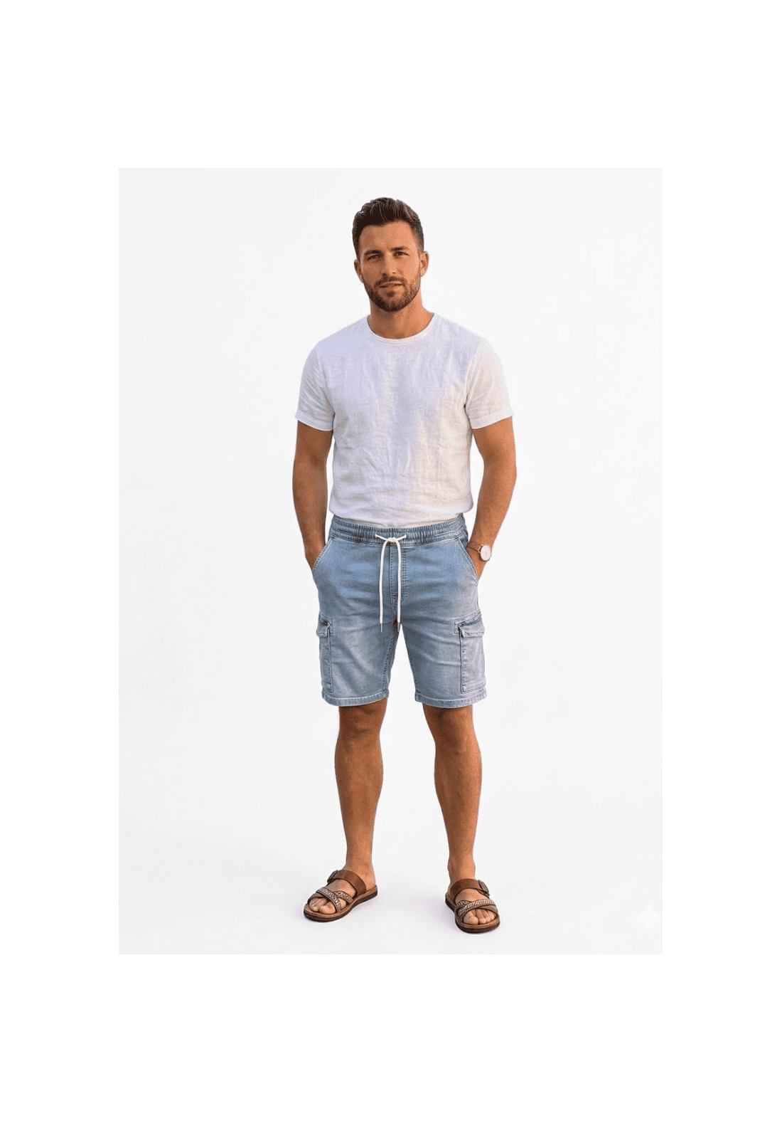Este pantalón combina la estética clásica del denim con la comodidad de un pantalón jogger con cintura elástica.