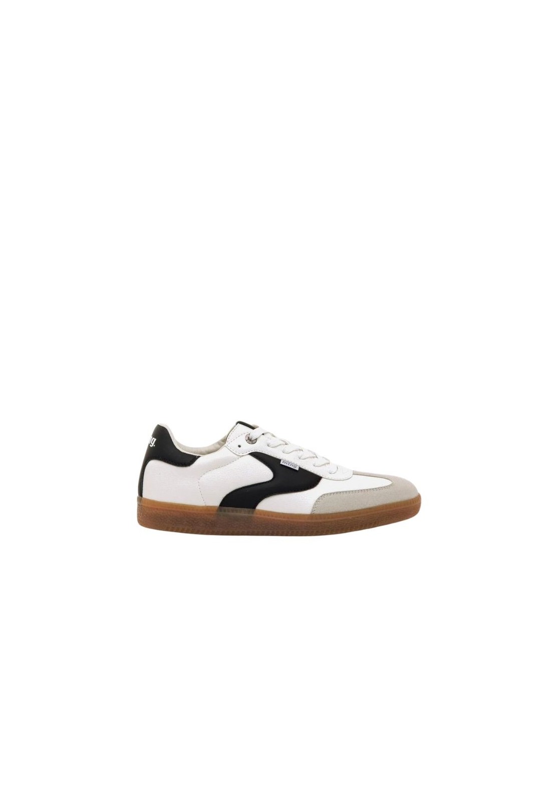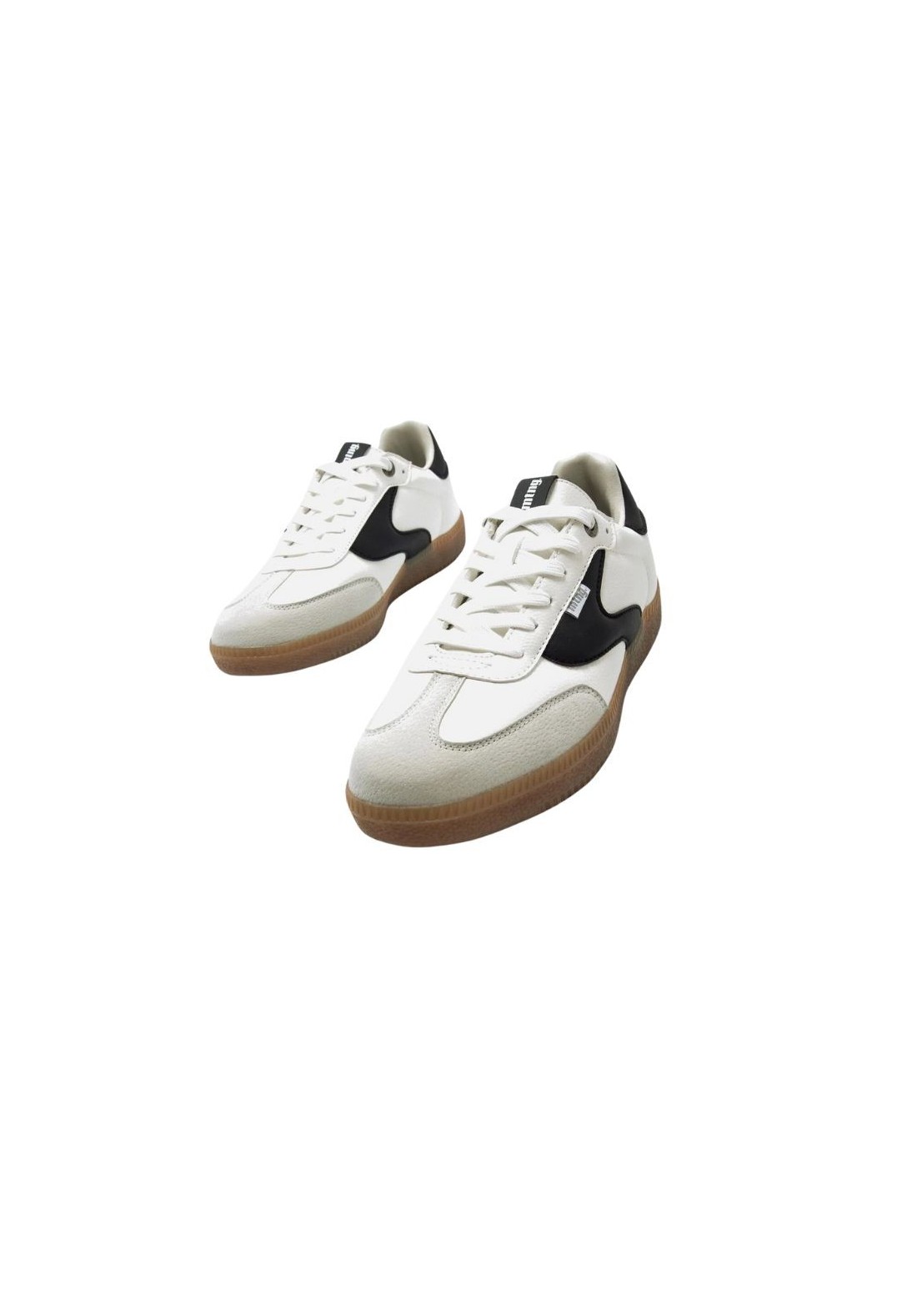 Zapatillas color blanco Nova de hombre, de la marca Mustang.  Zapatillas con diseño clásico y elegante, contrastando el color blanco y el negro en sus detalles laterales y la zona del talón. Sus colores son fáciles de combinar, es un básico para cualquier ocasión.