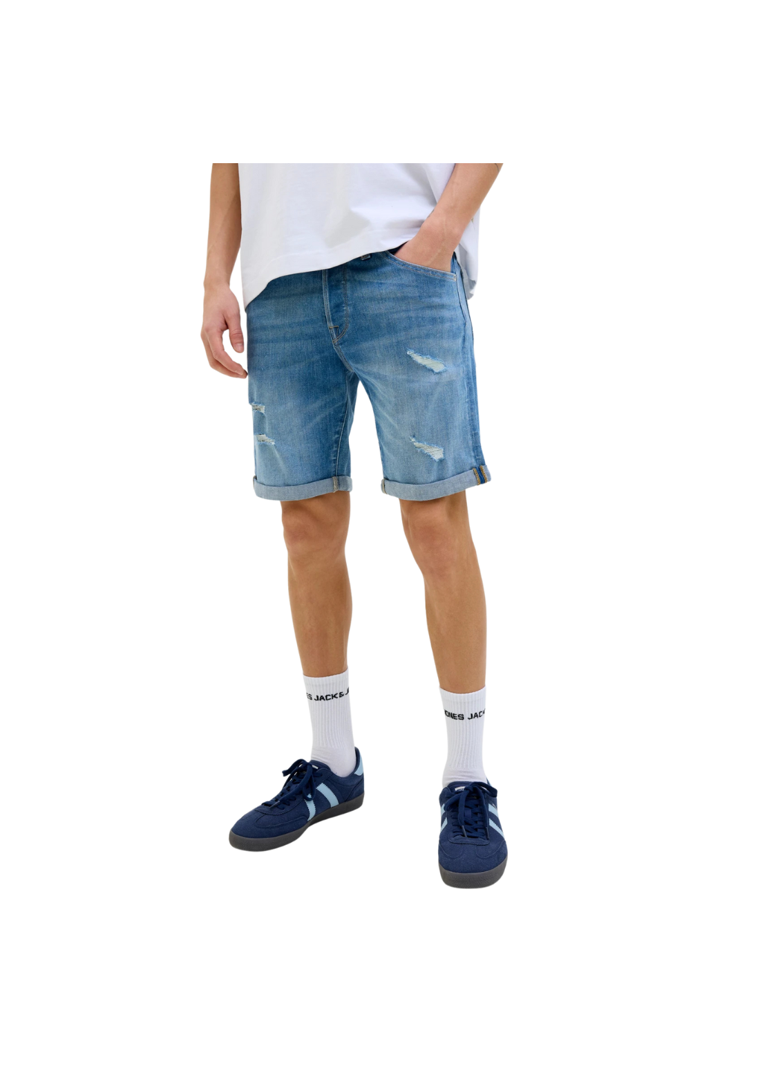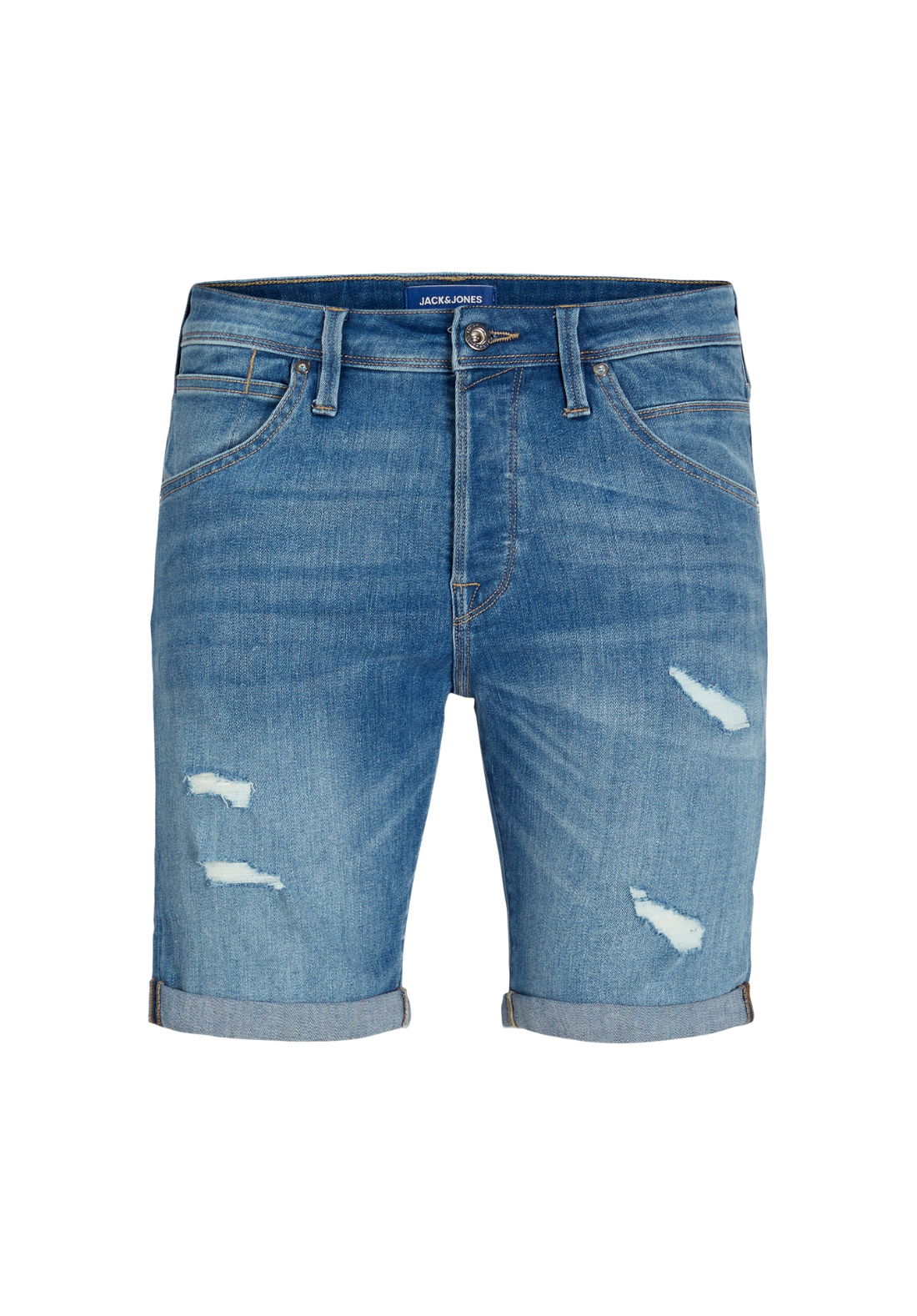 Shorts de ajuste regular y cierre de bragueta con botones. Tiene bolsillos traseros, bolsillo relojero y bolsillos delanteros. Es de talle medio y viene con rasgaduras sutiles con arreglos.