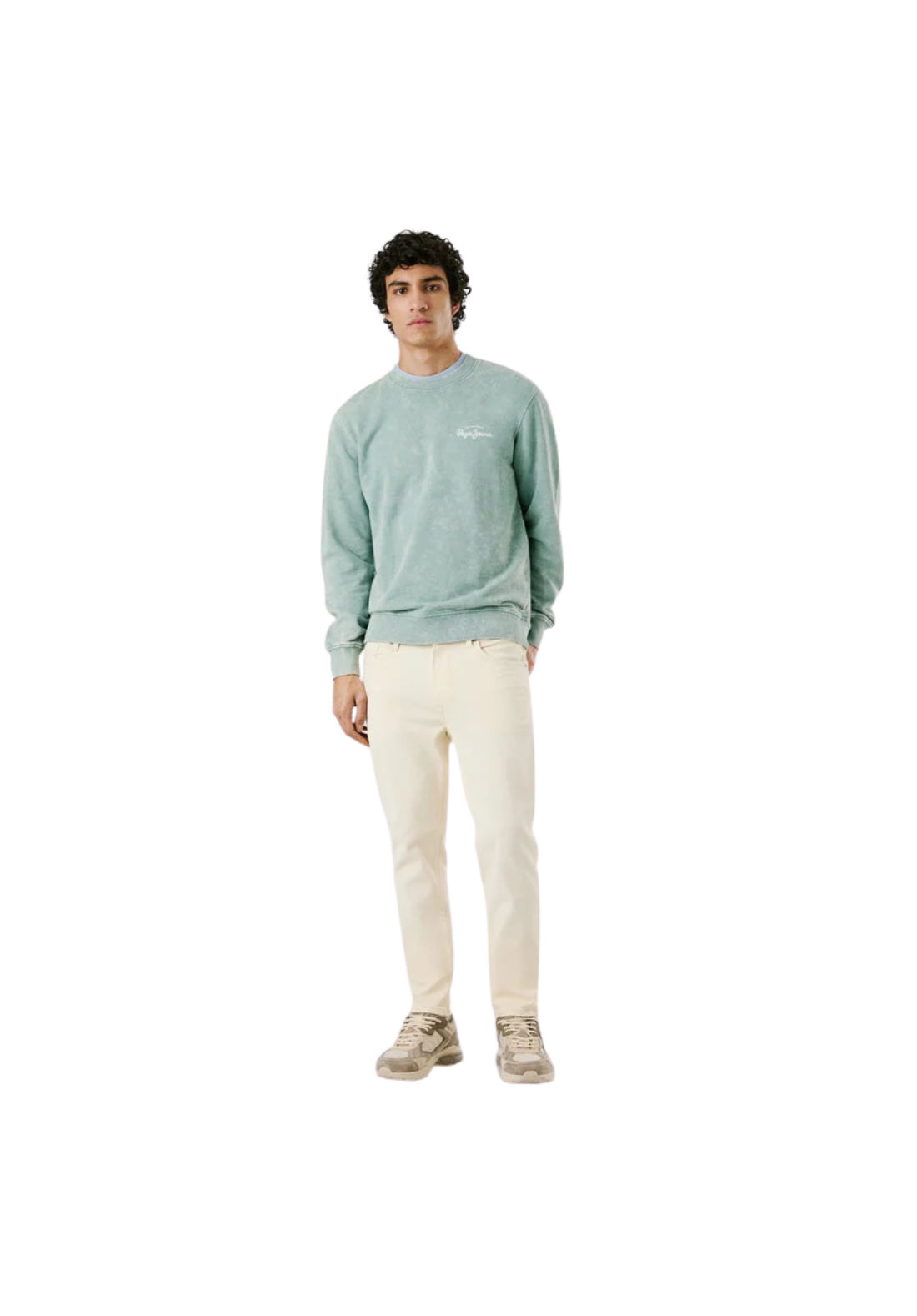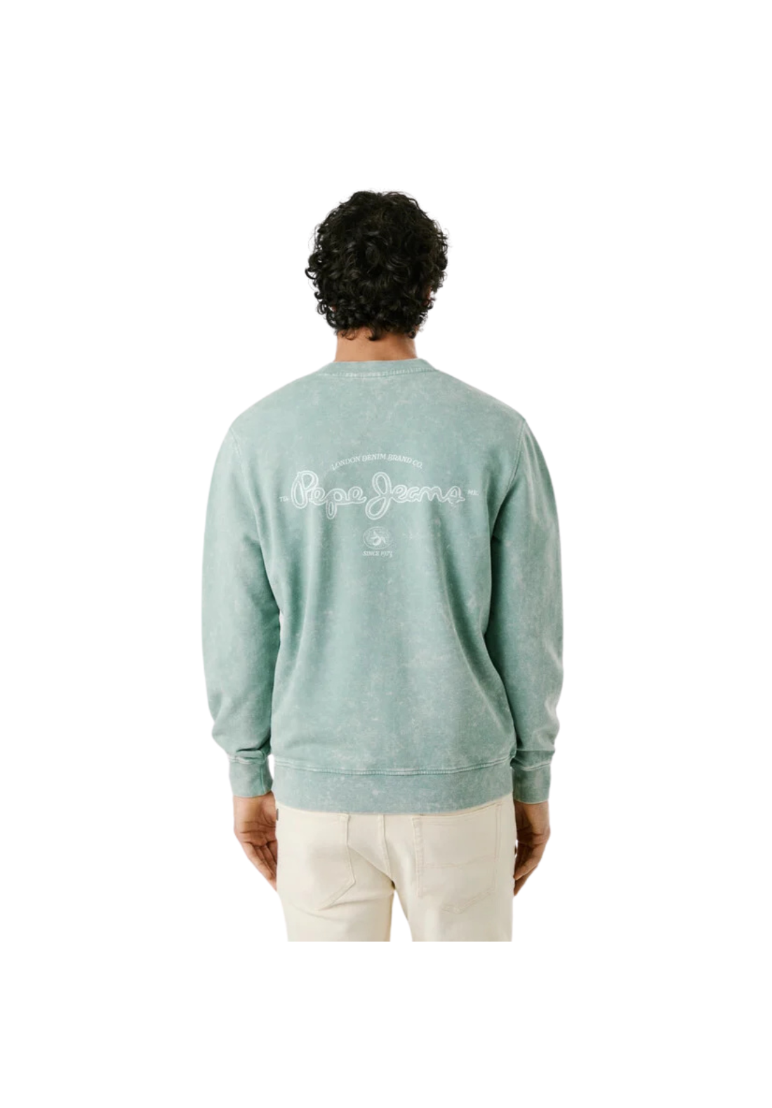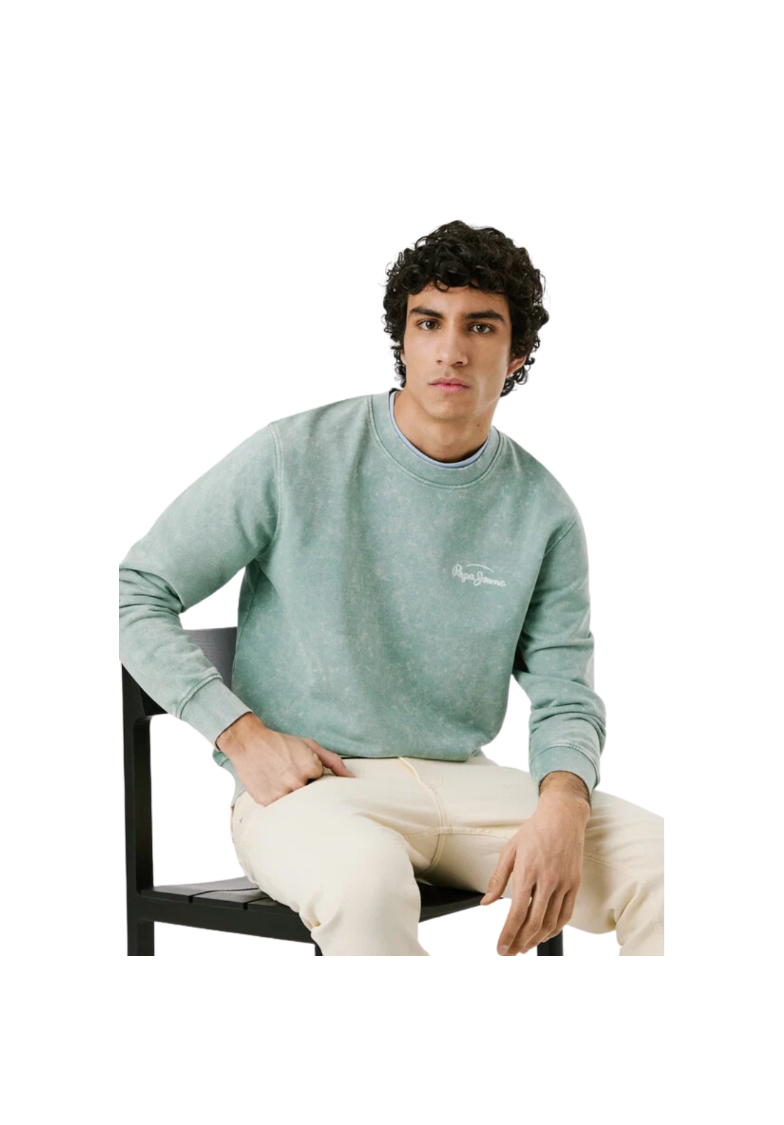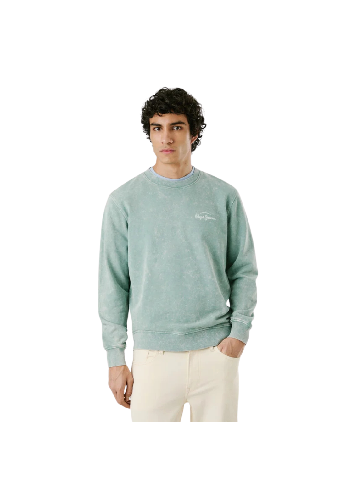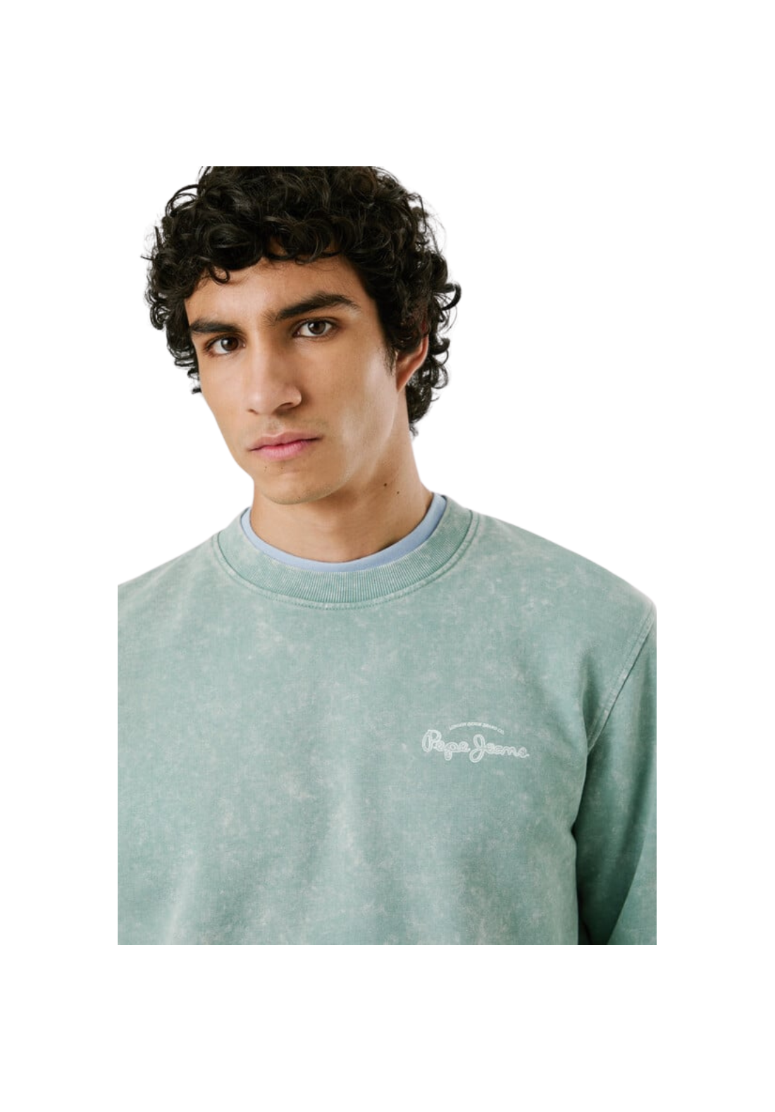 Sudadera en tejido de felpa de cuello redondo. Lavado ácido para un aspecto desgastado. Detalle canalé en cuello, puños y bajo.