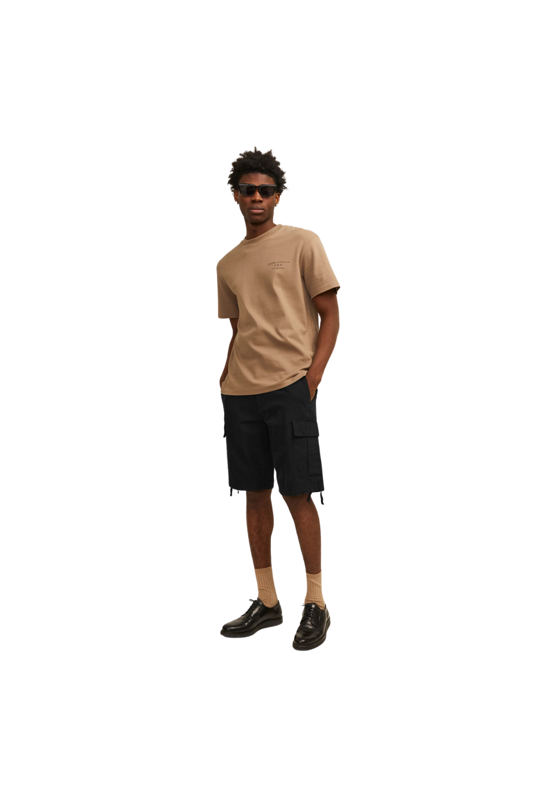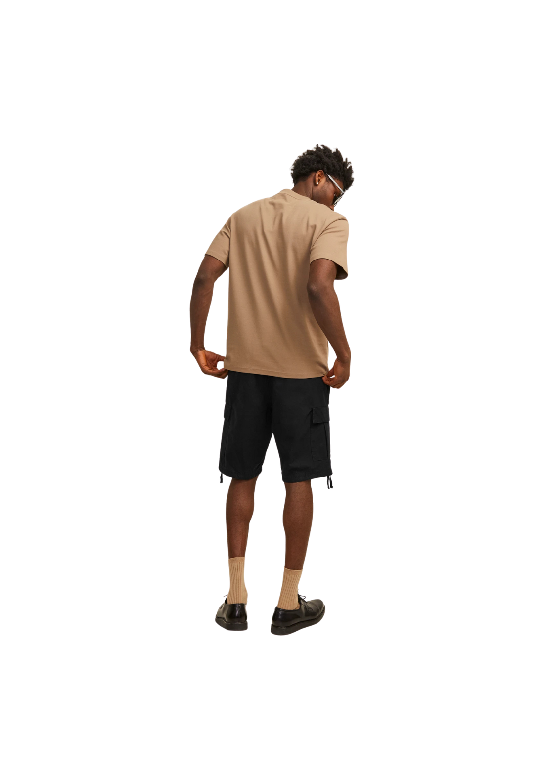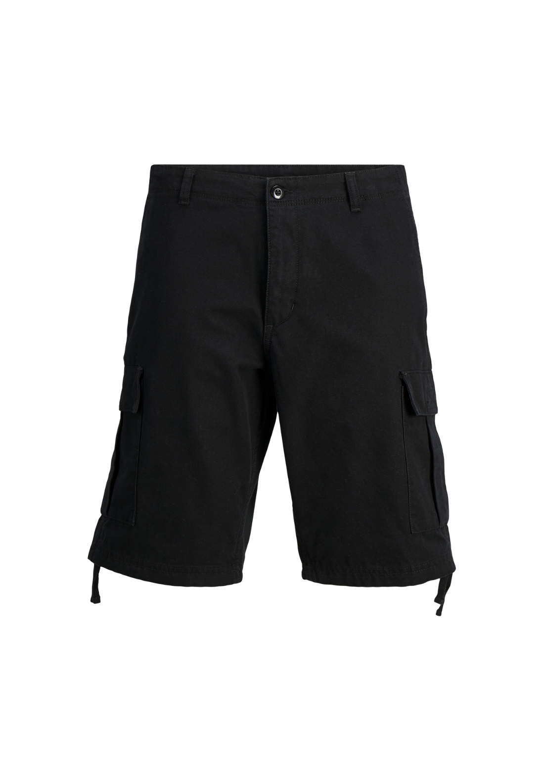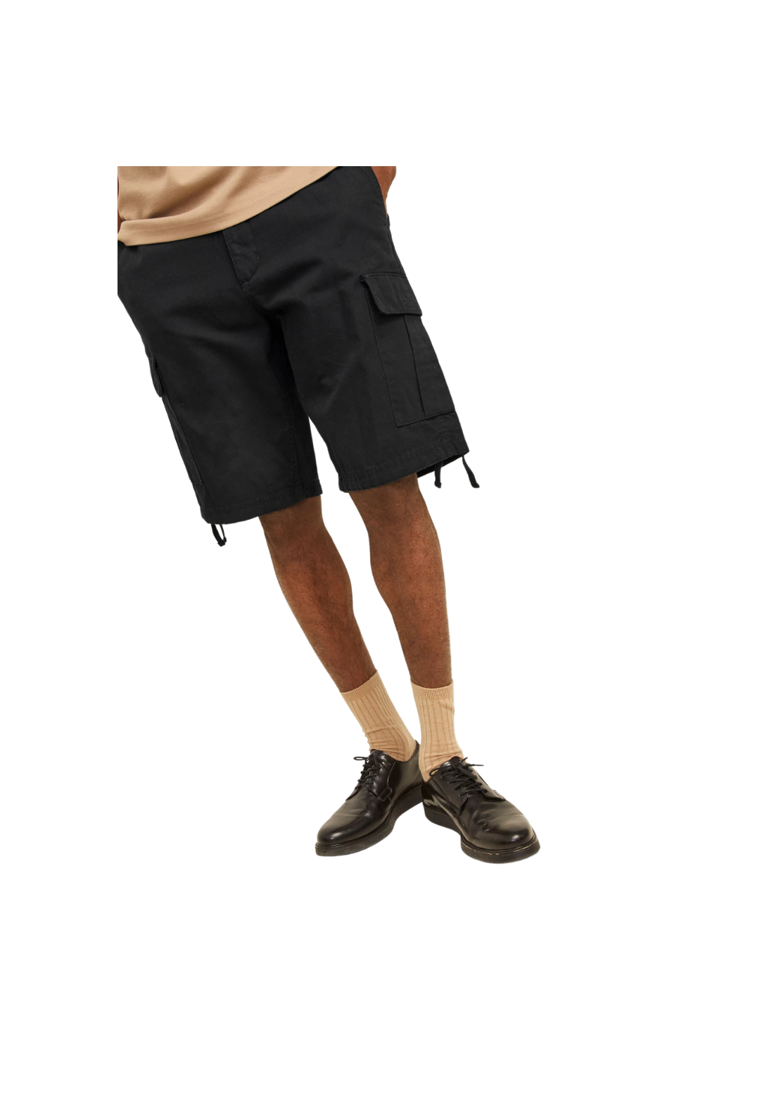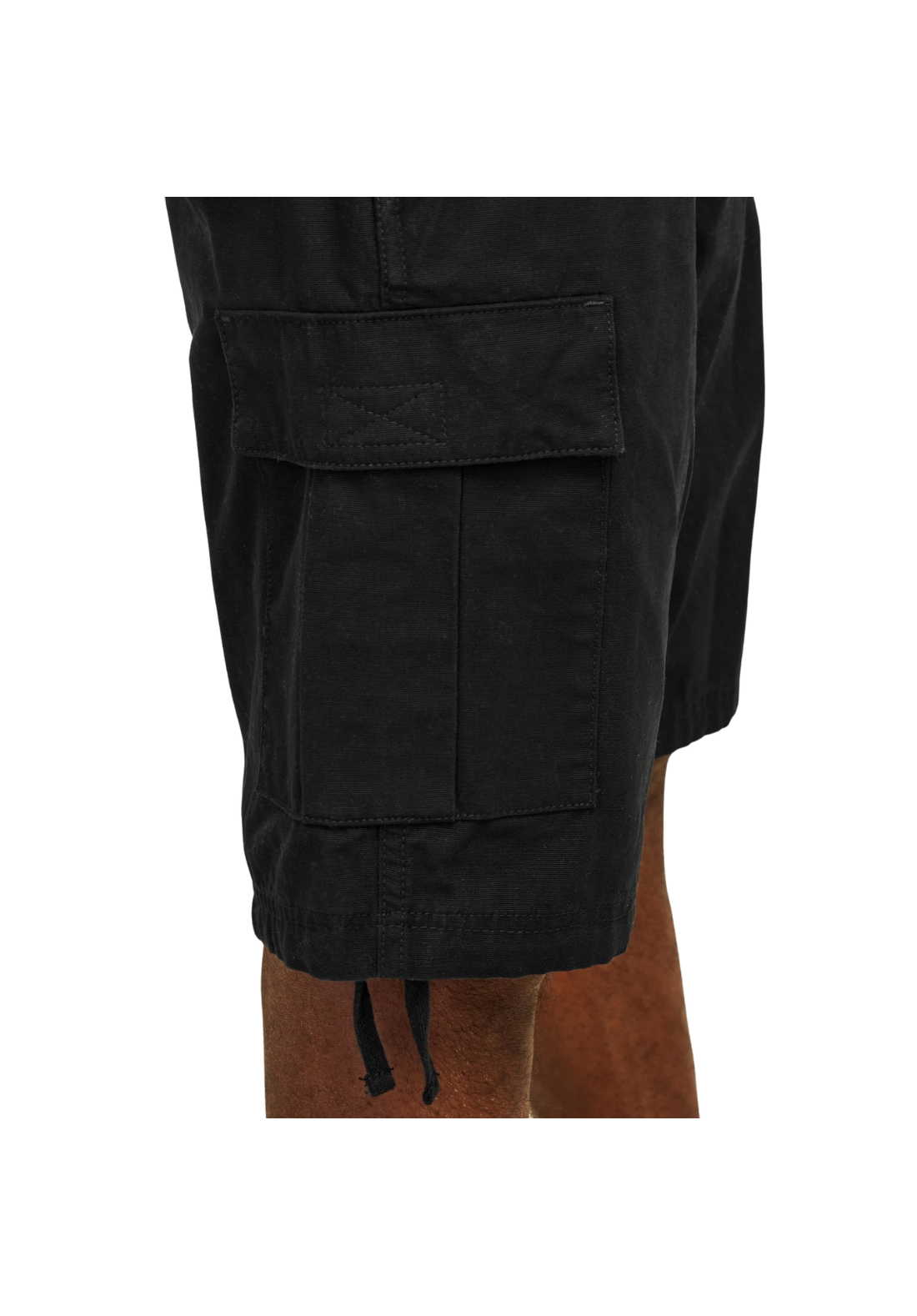 Pantalón corto estilo cargo con dos bolsillos laterales, dos bolsillos traseros y dos bolsillos con solapa en la parte externa de la pierna. El cierre es con cremallera y botón.