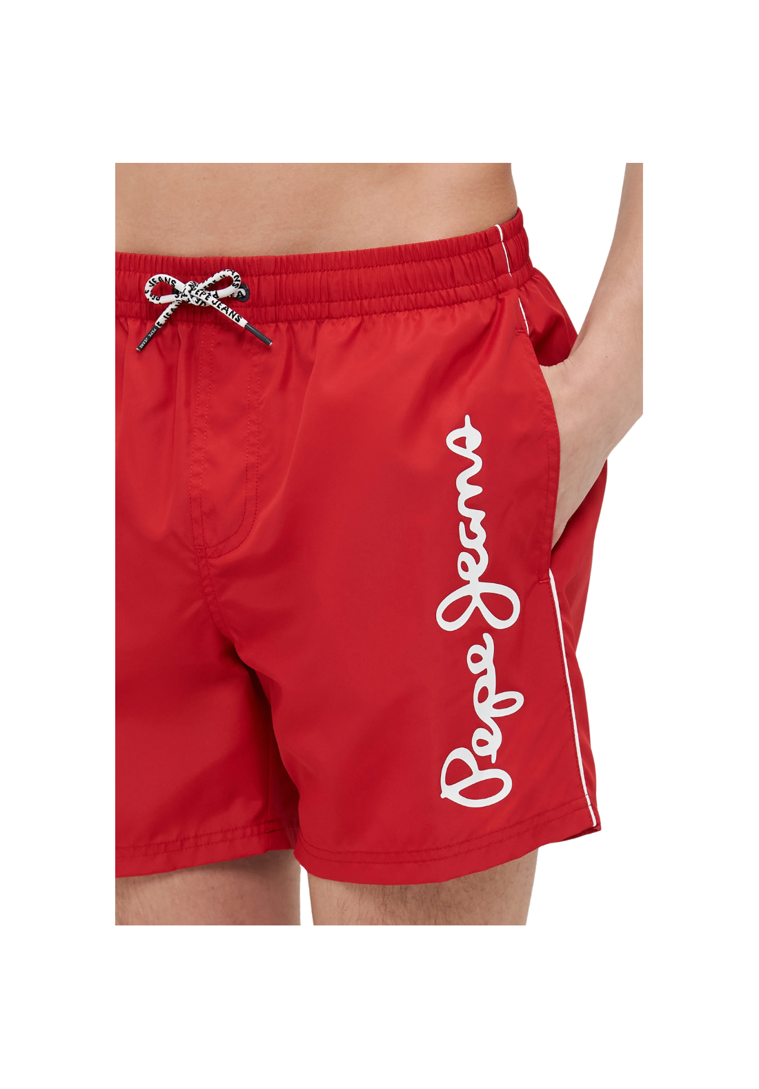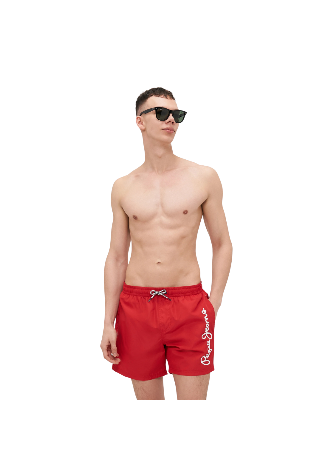 Bañador de cintura elástica, con bolsillos laterales y traseros. Trae cordón para atar a la cintura.