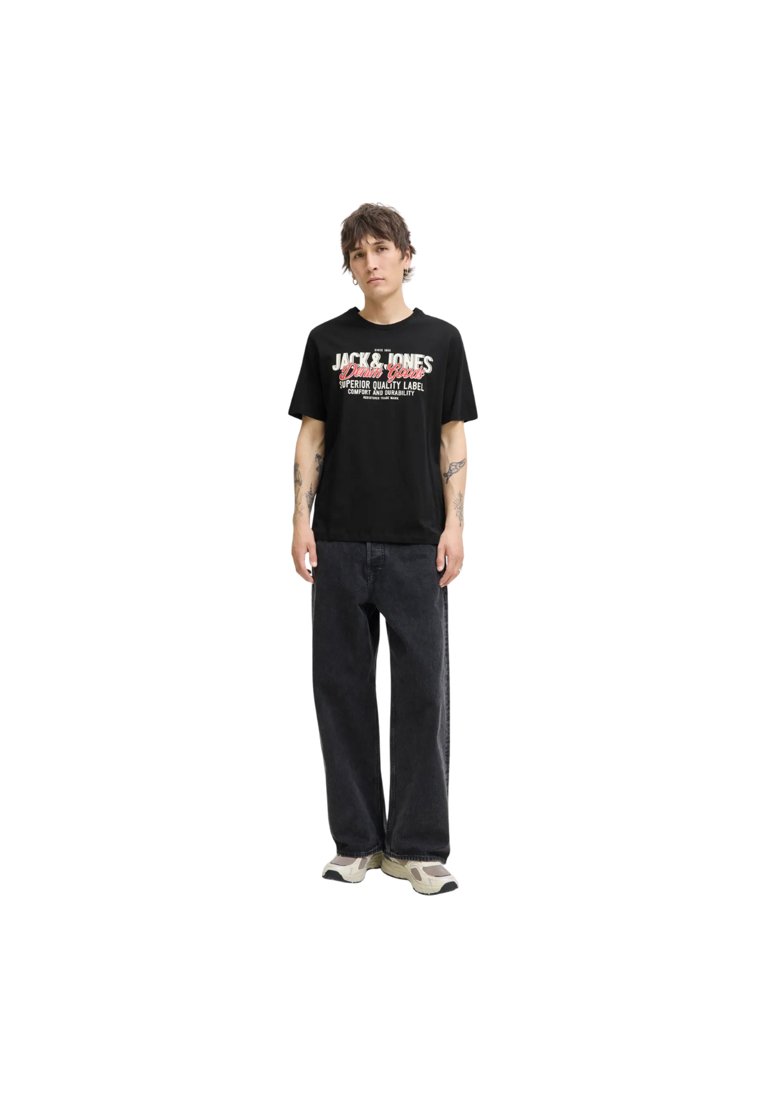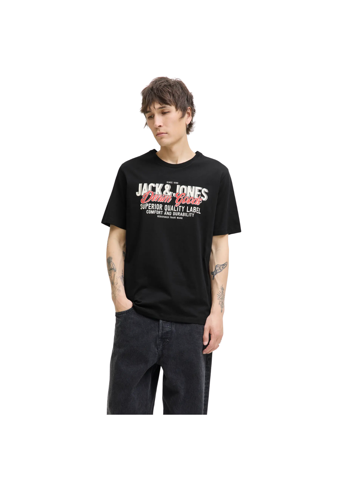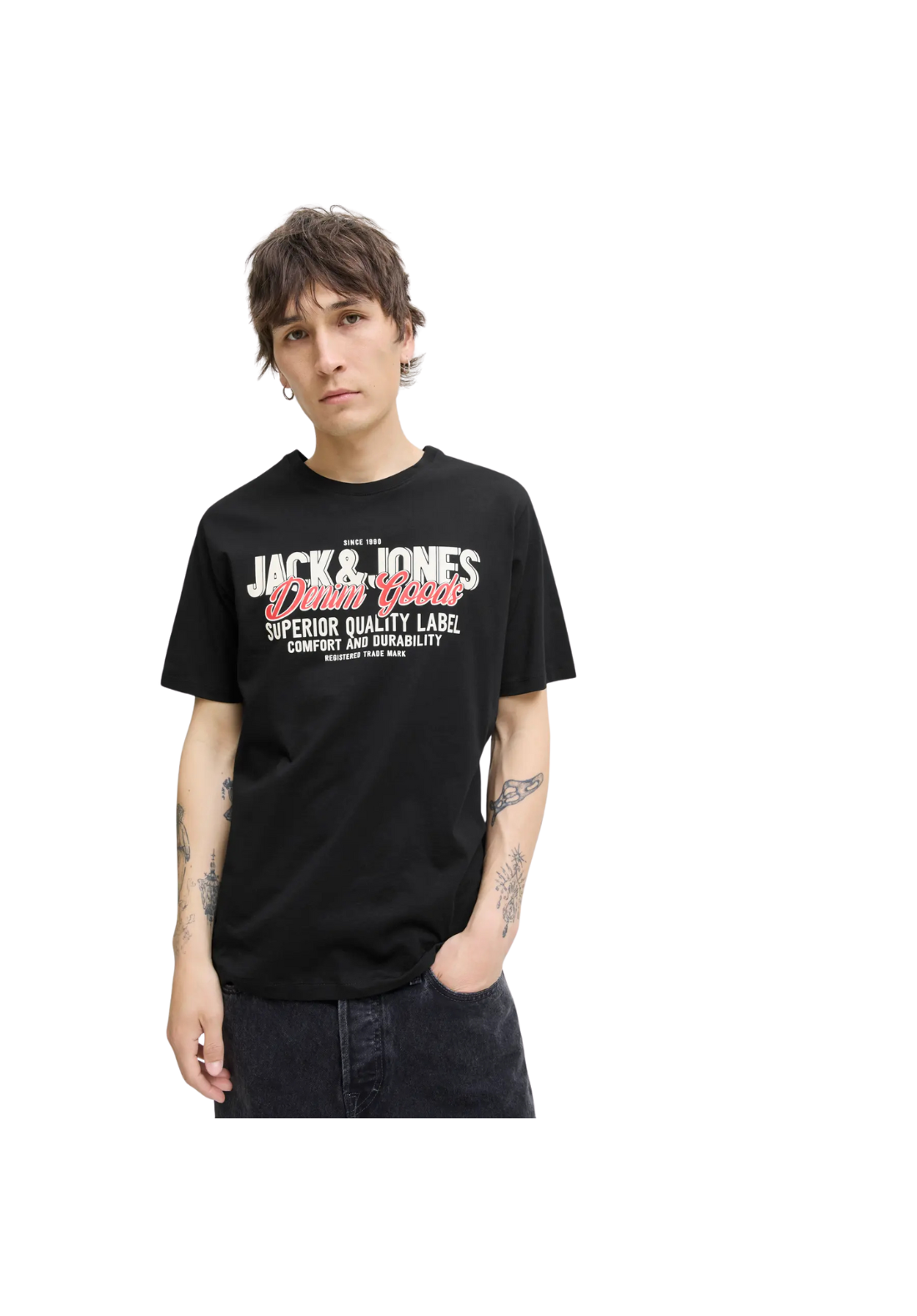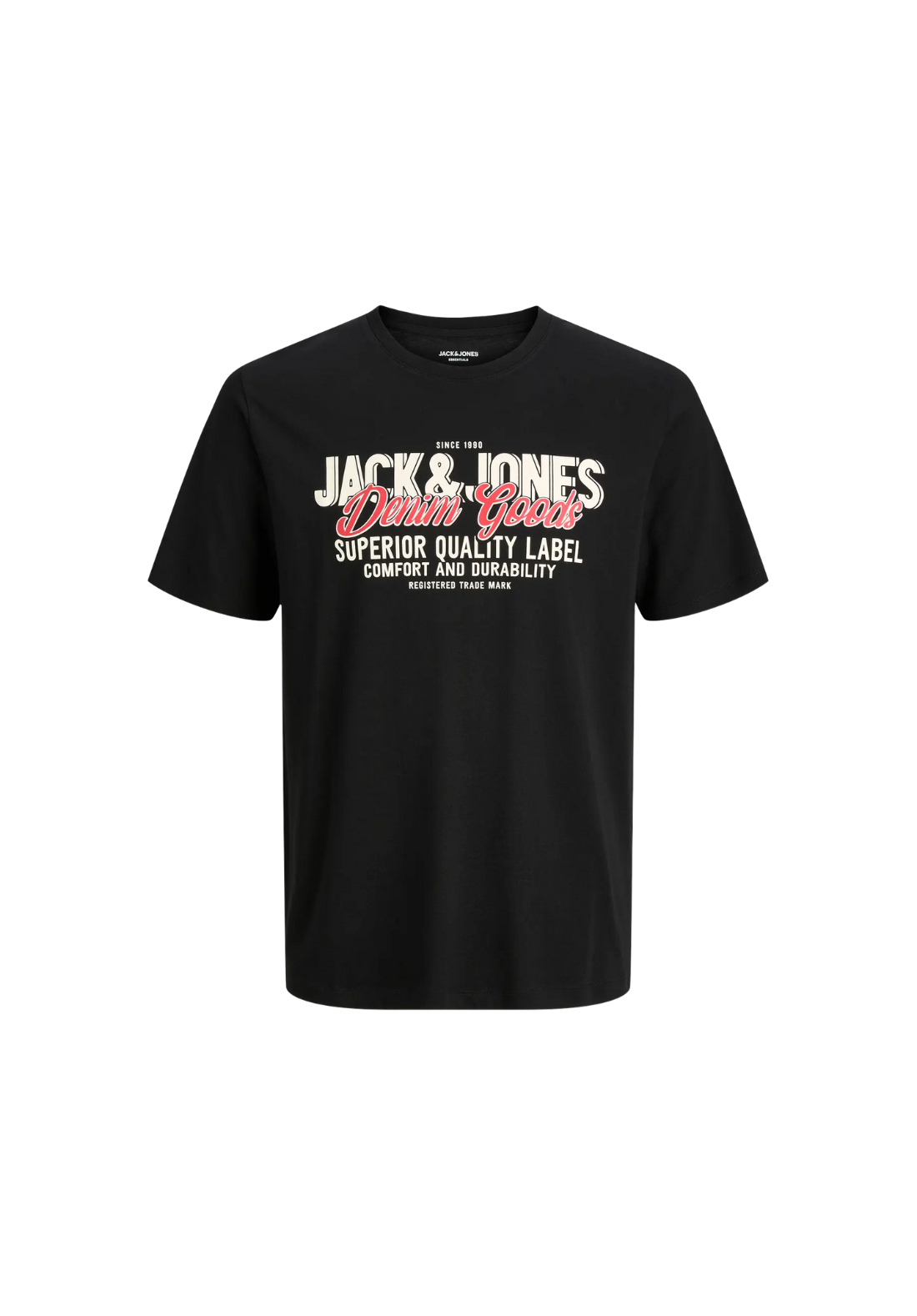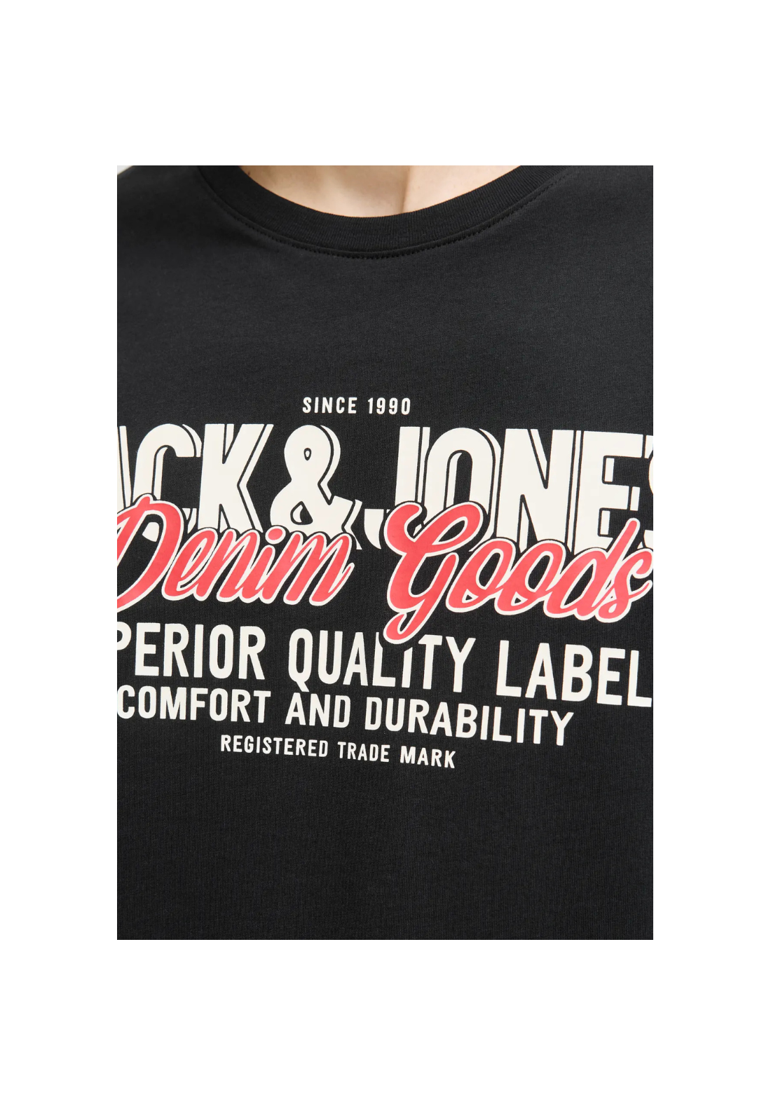 Camiseta de manga corta y cuello redondo con estampado de goma en el pecho.