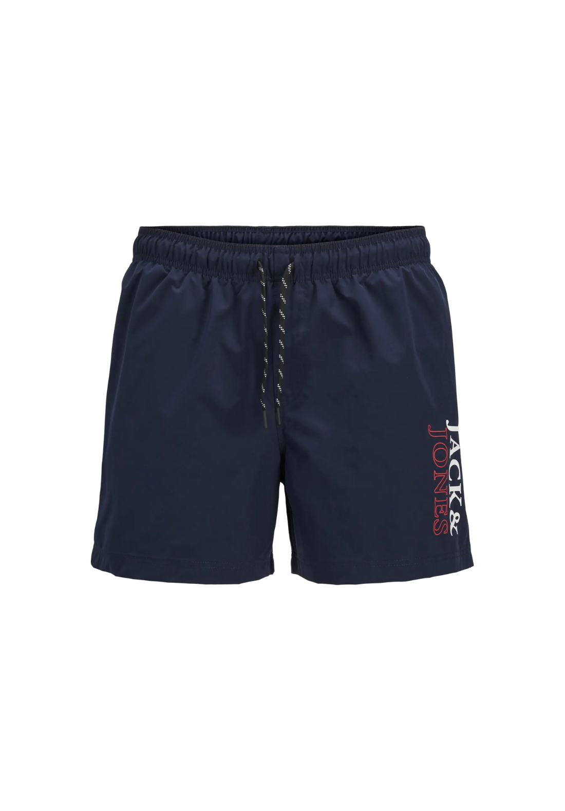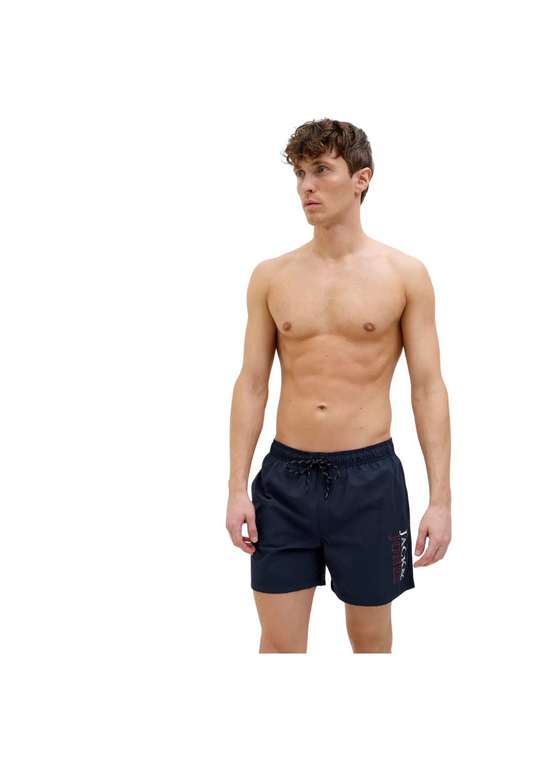 Bañador corto, de tiro medio, con bolsillos traseros. Tiene cordón ajustable a la cintura y la cinturilla es elástica.