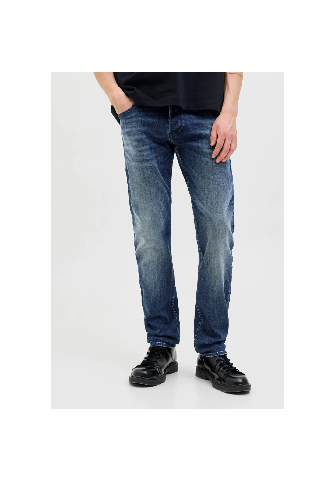 Vaquero de cierre de botón y cremallera. Tiene 5 bolsillos. Es de tiro bajo.