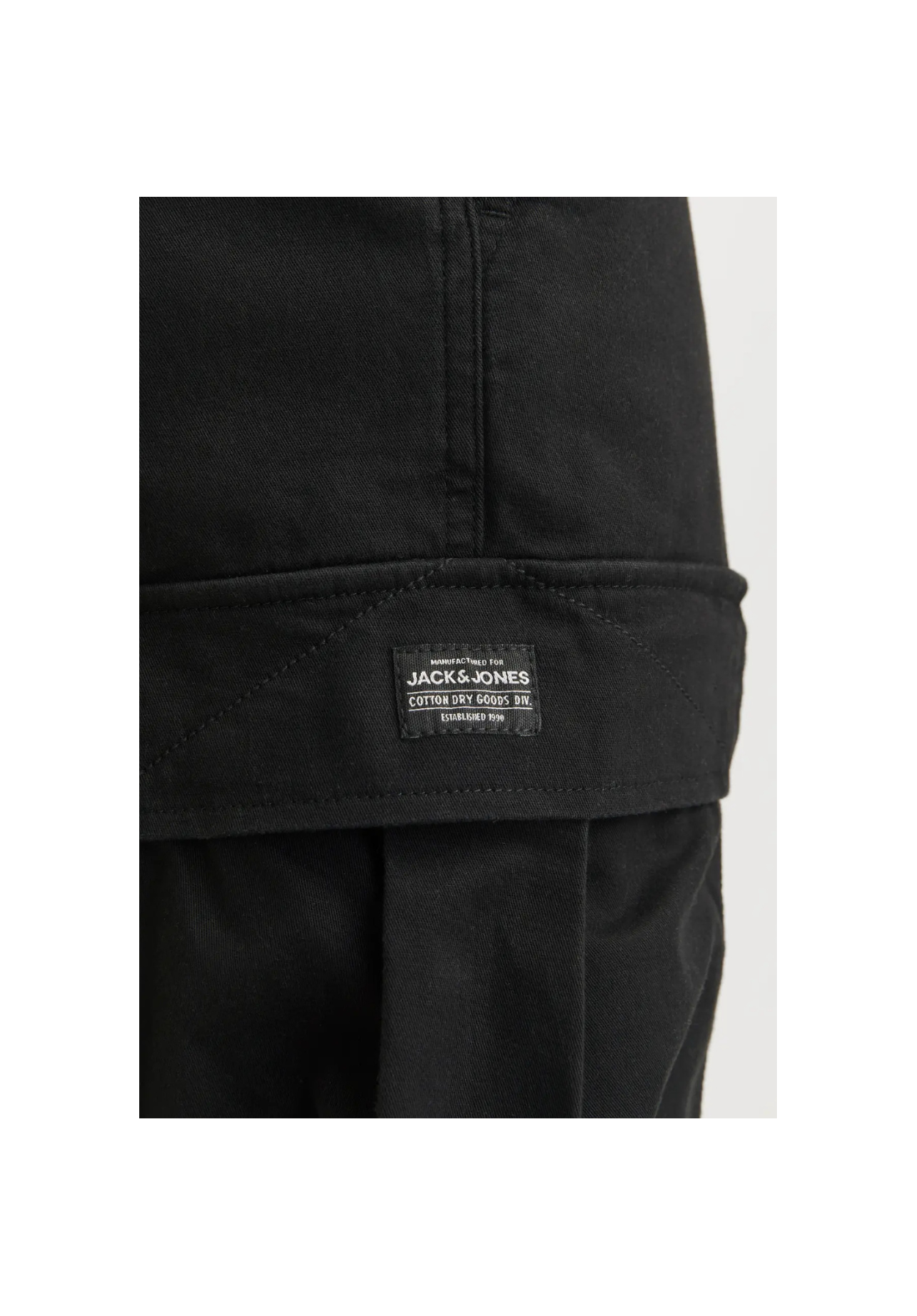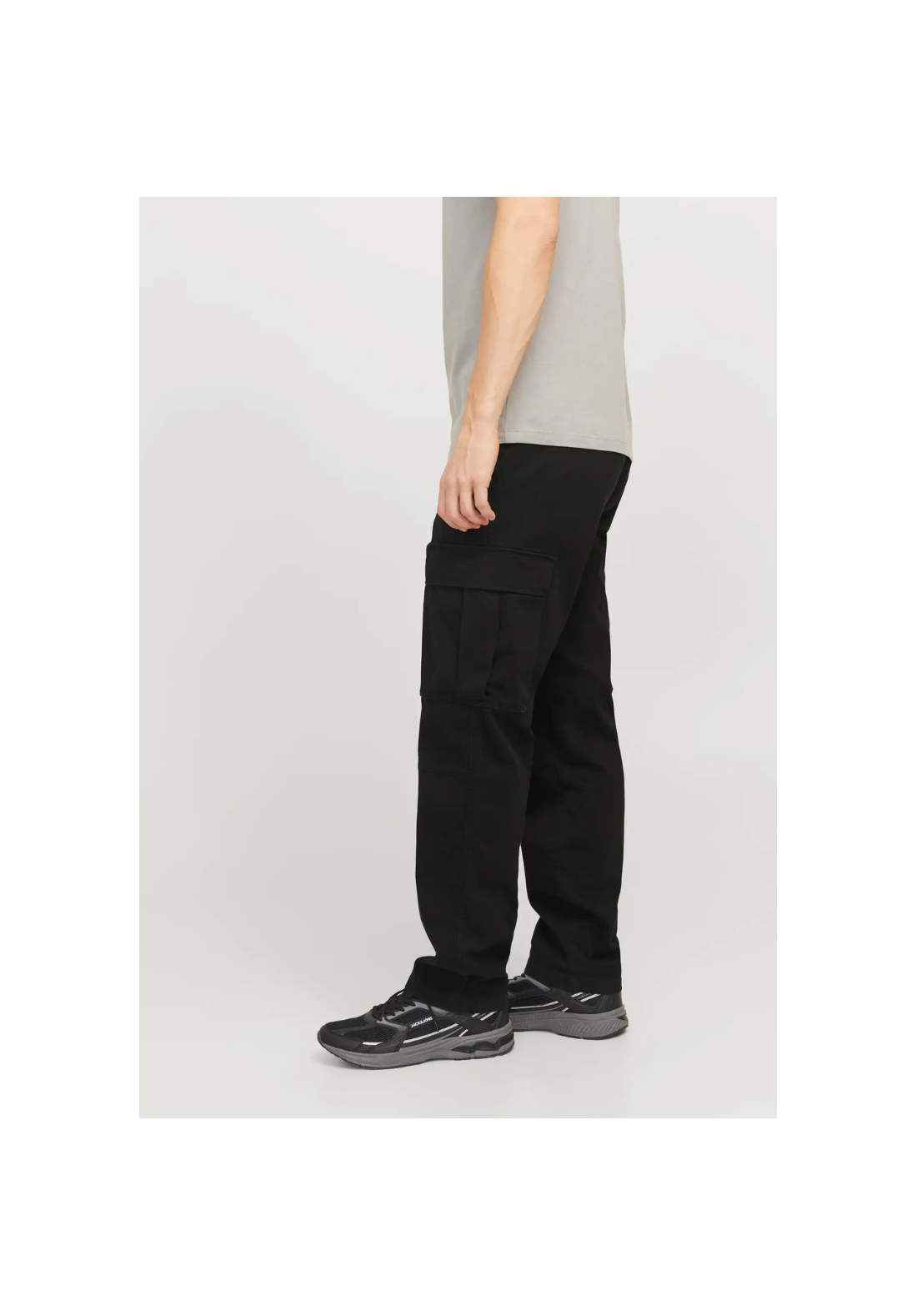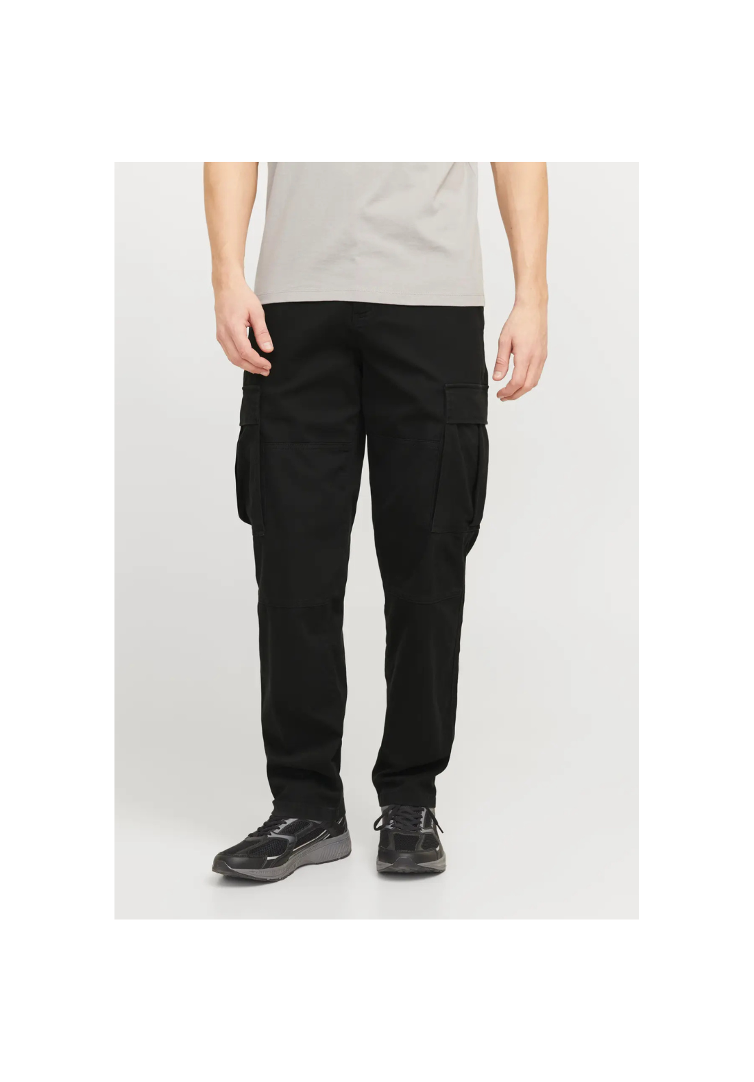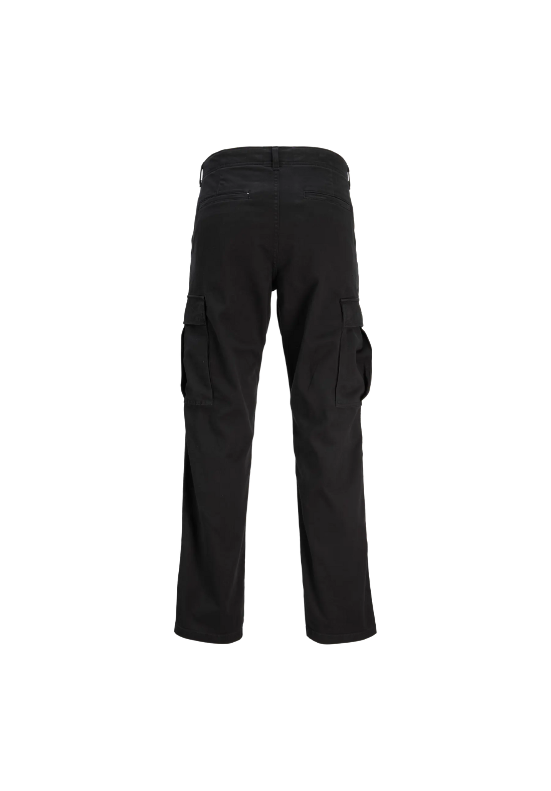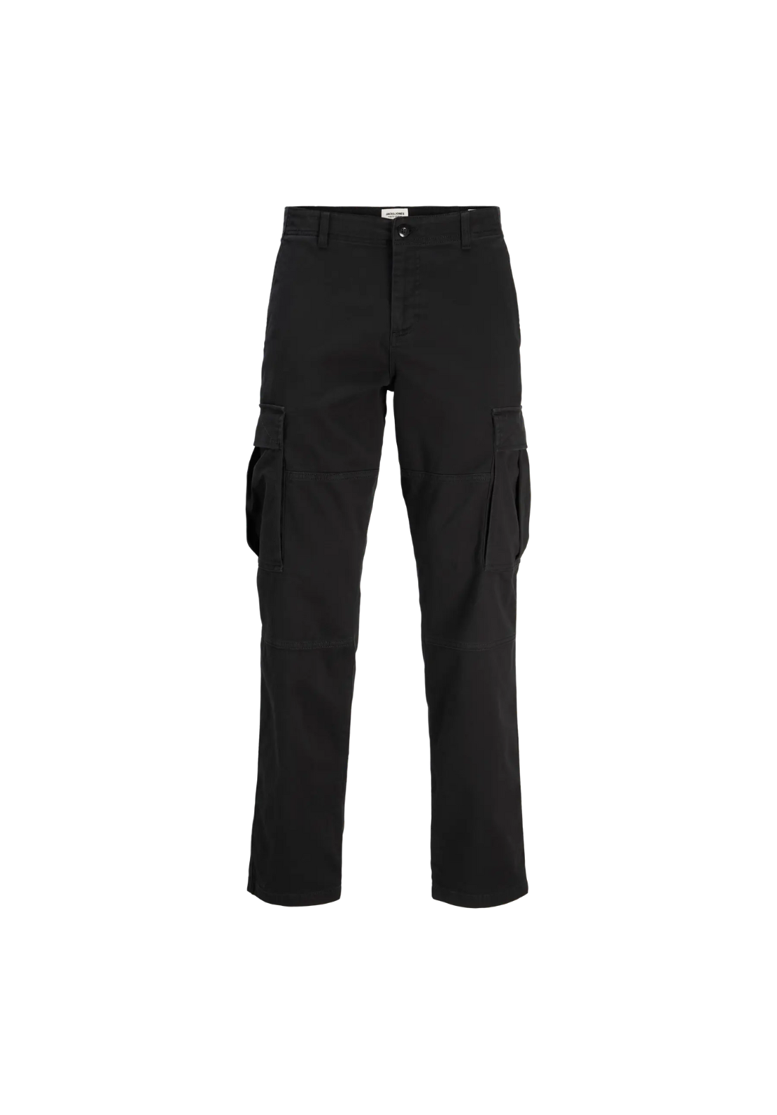 Pantalones cargo de corte holgado, con cierre de botón y cremallera. Tiene bolsillos delanteros, laterales y traseros. Es de tiro medio