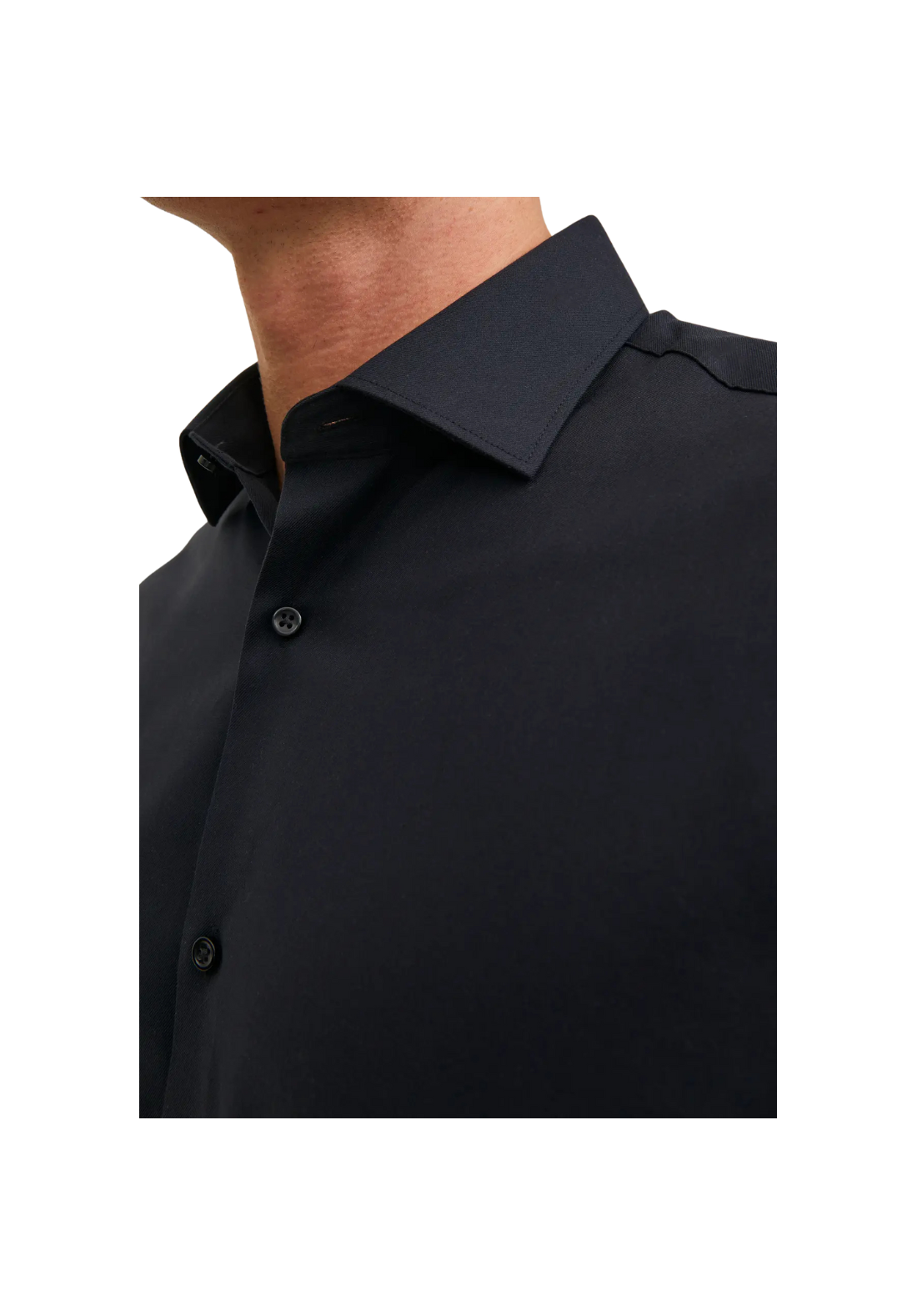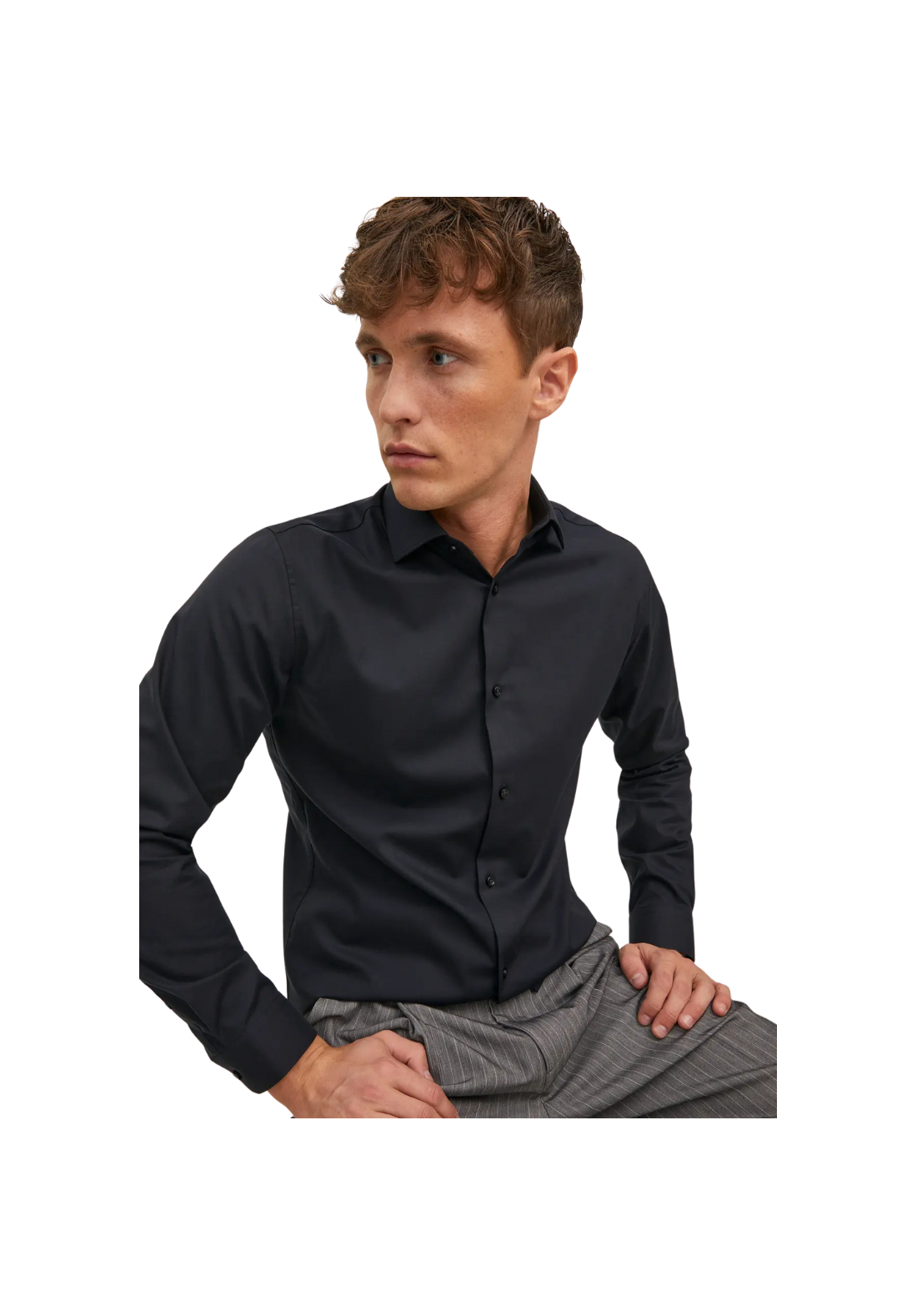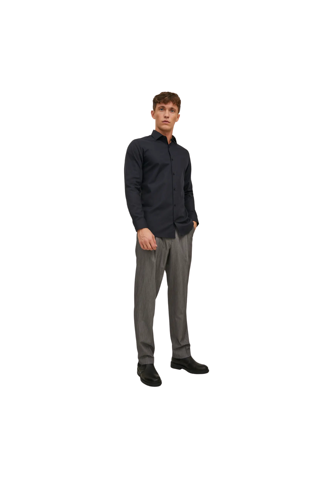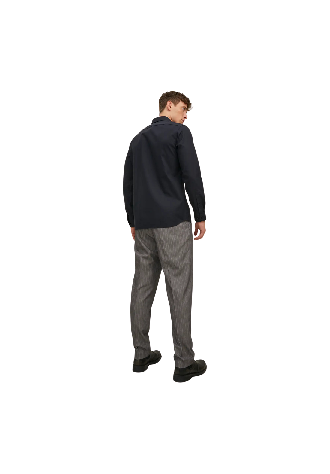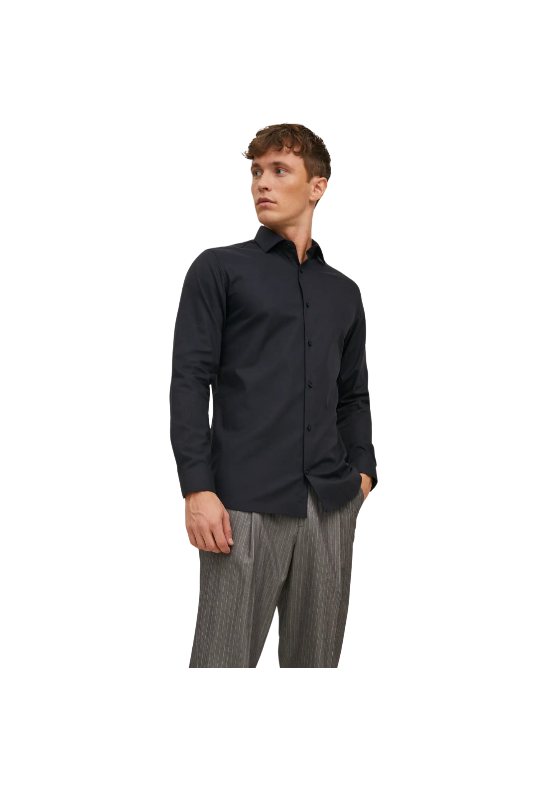 Camisa de manga larga, con cuello camisero y cierre de botones.