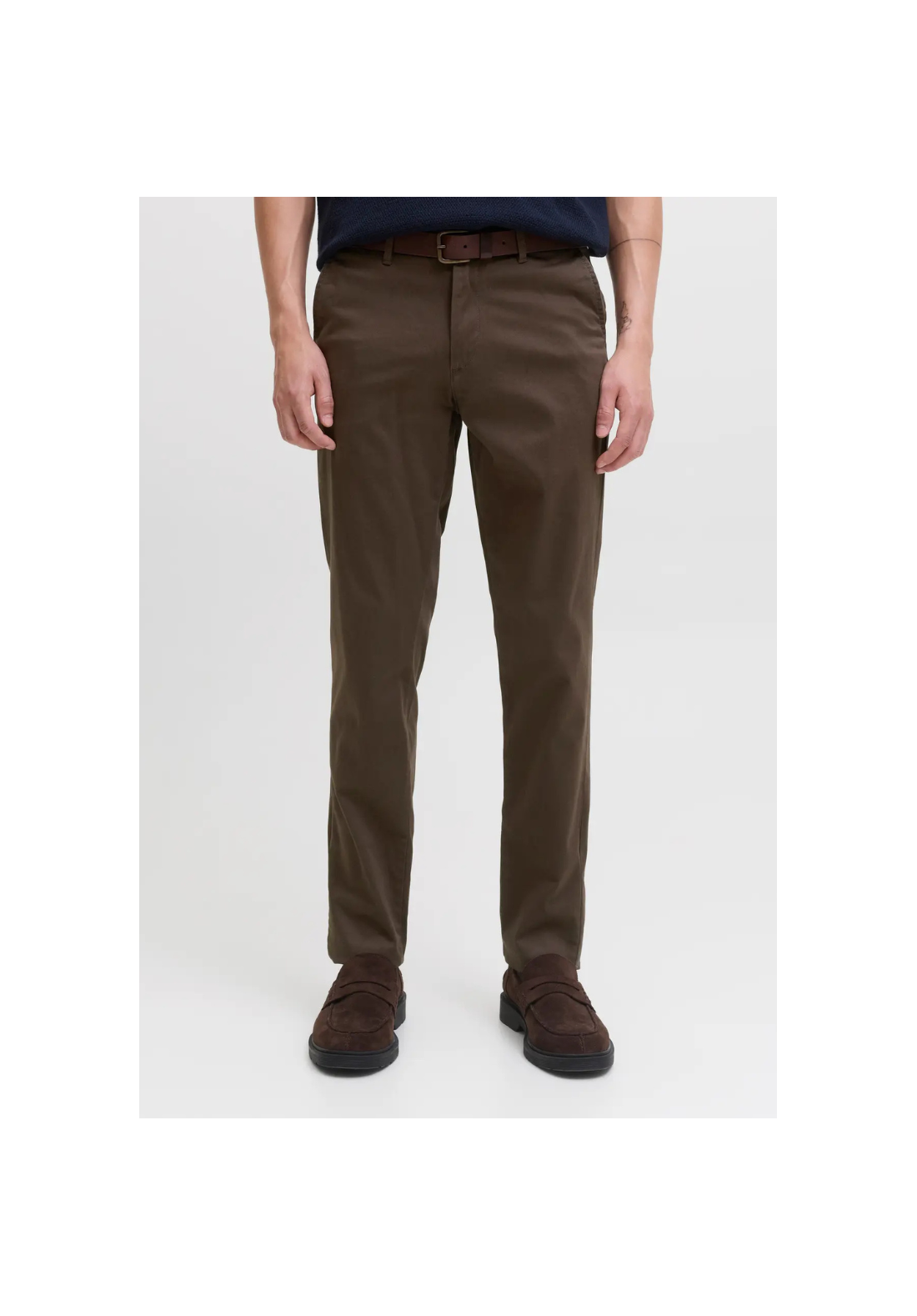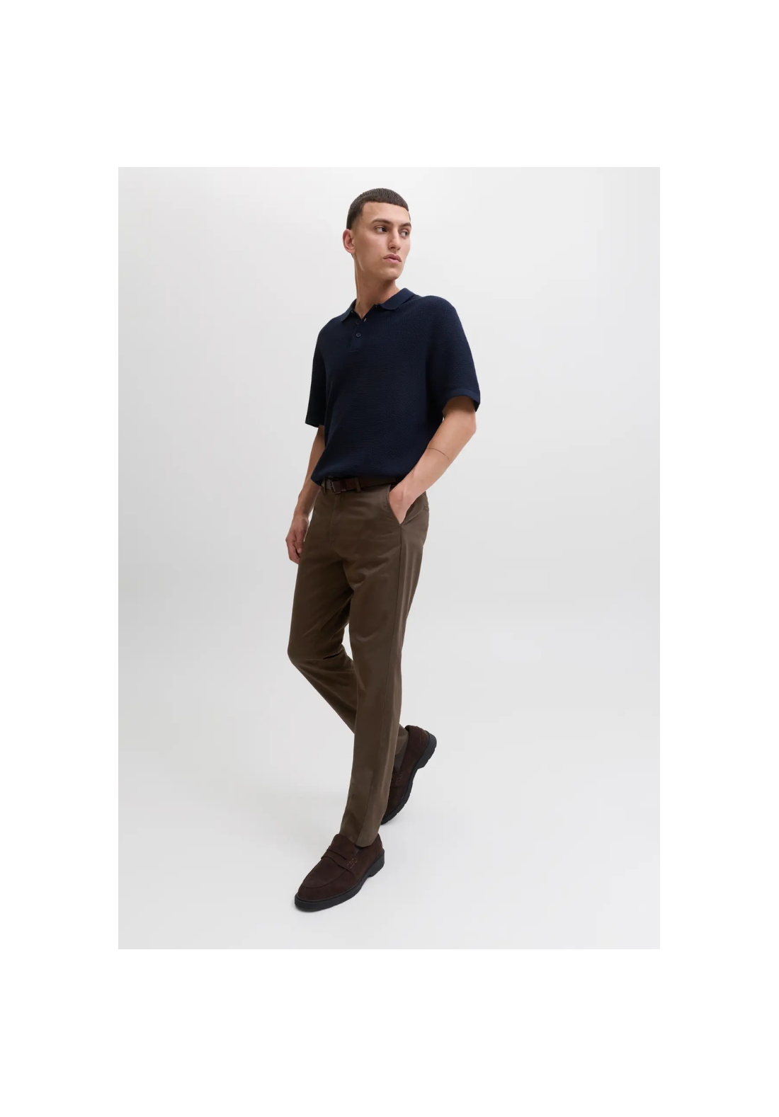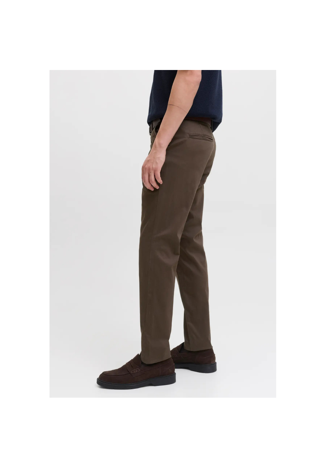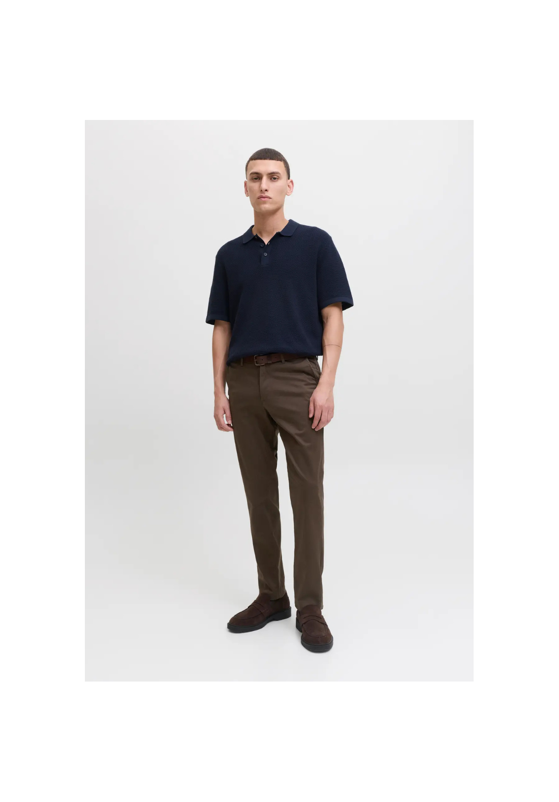 Pantalón chino con cierre de cremallera. Tiene bolsillos delanteros laterales y bolsillos traseros. Es de tiro bajo.