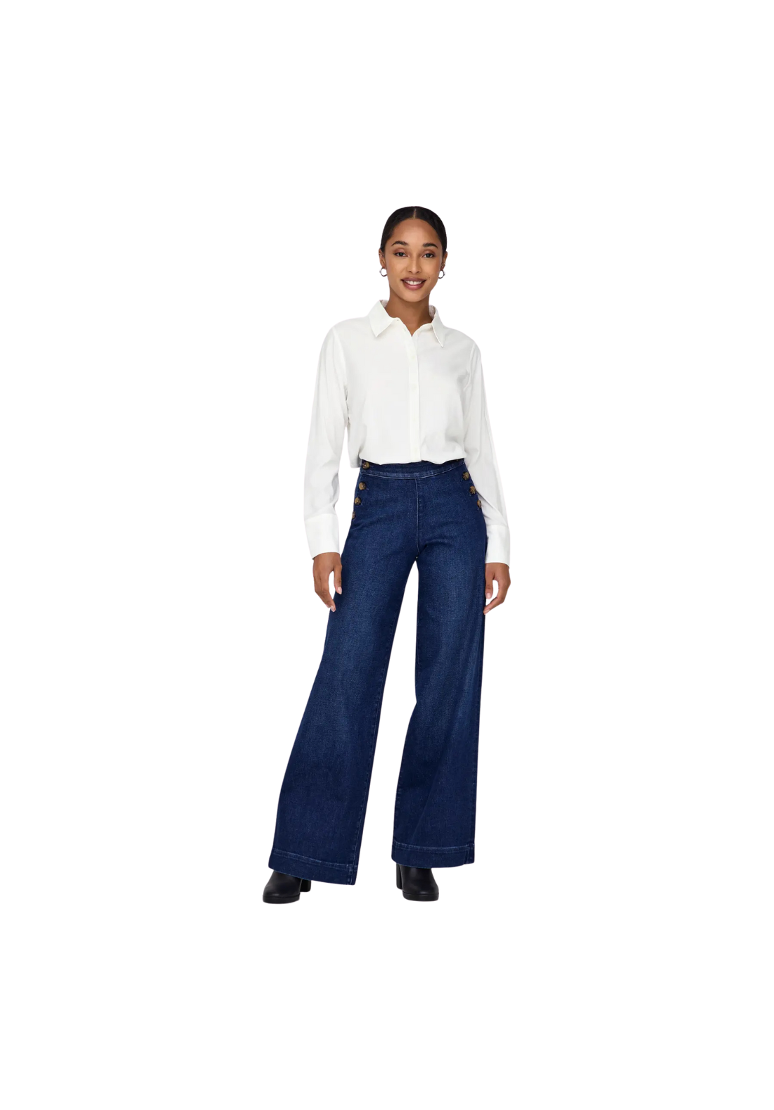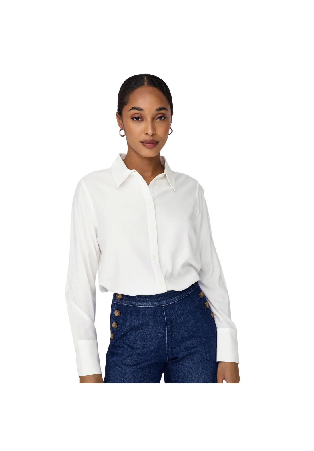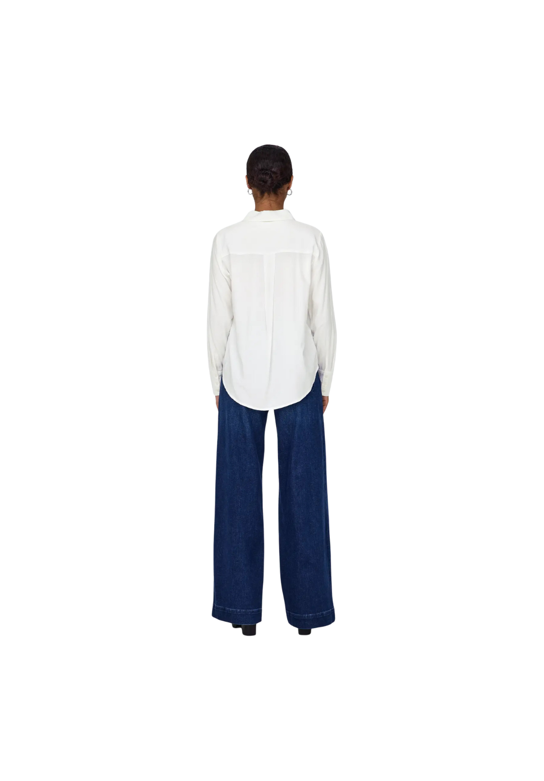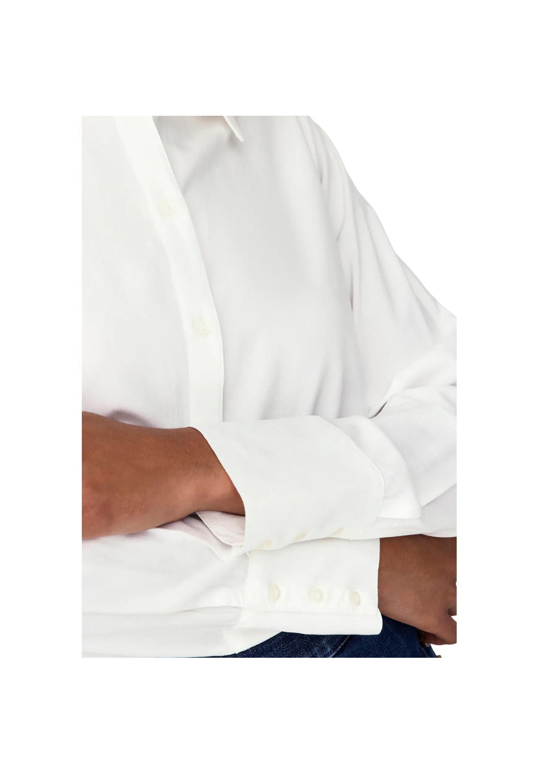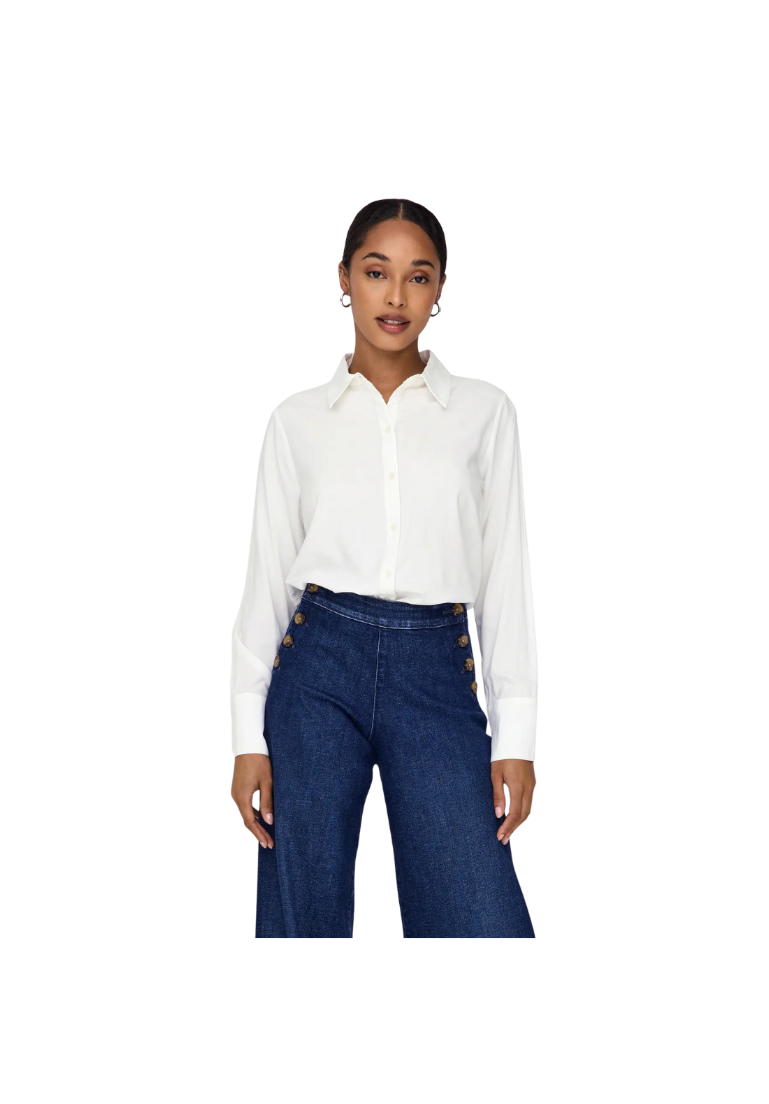 Camisa de manga larga, con cuello camisero y cierre de botonadura. La parte de la espalda es más larga.