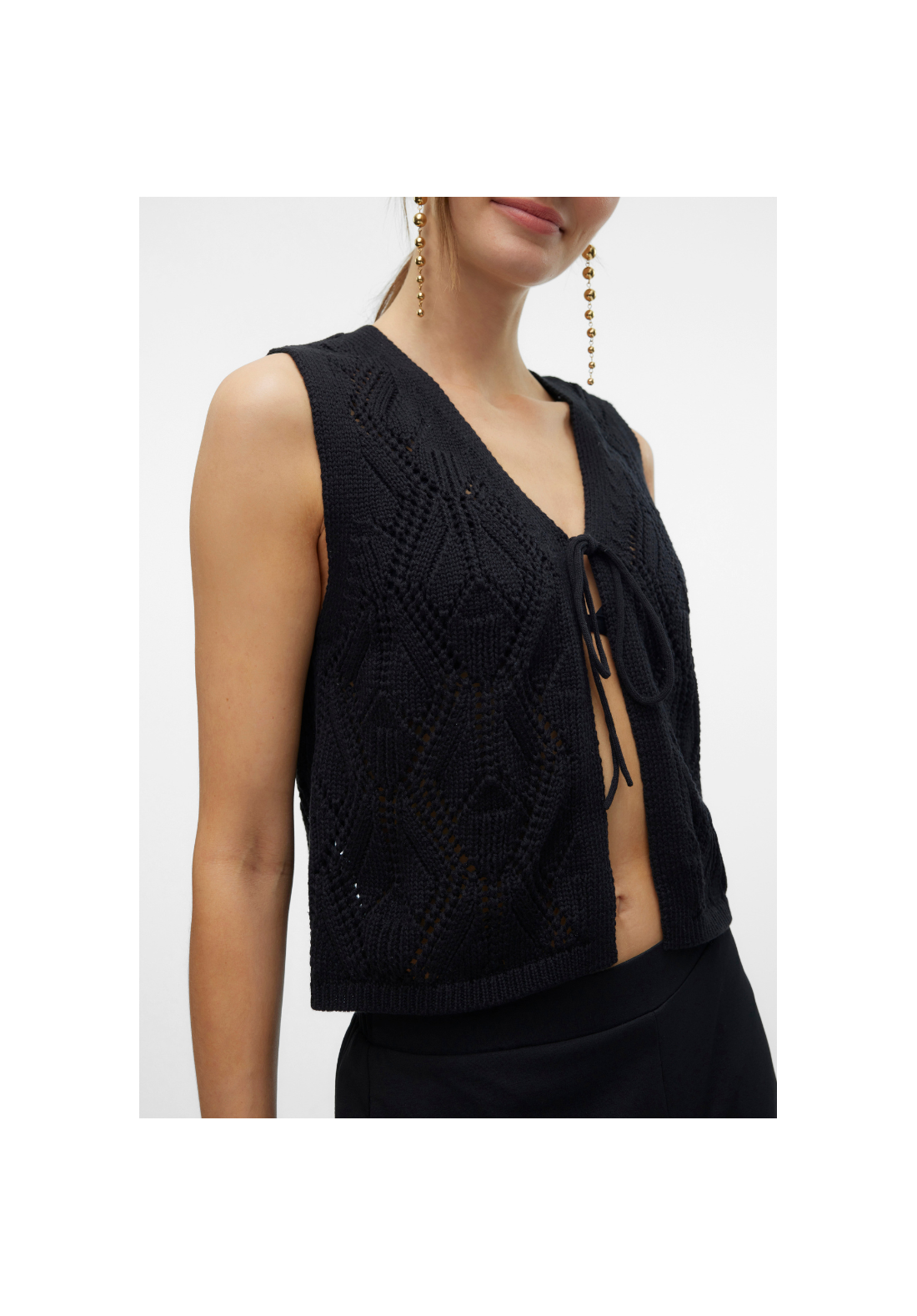 Chaleco de punto con cierre de cordón. Es reversible.