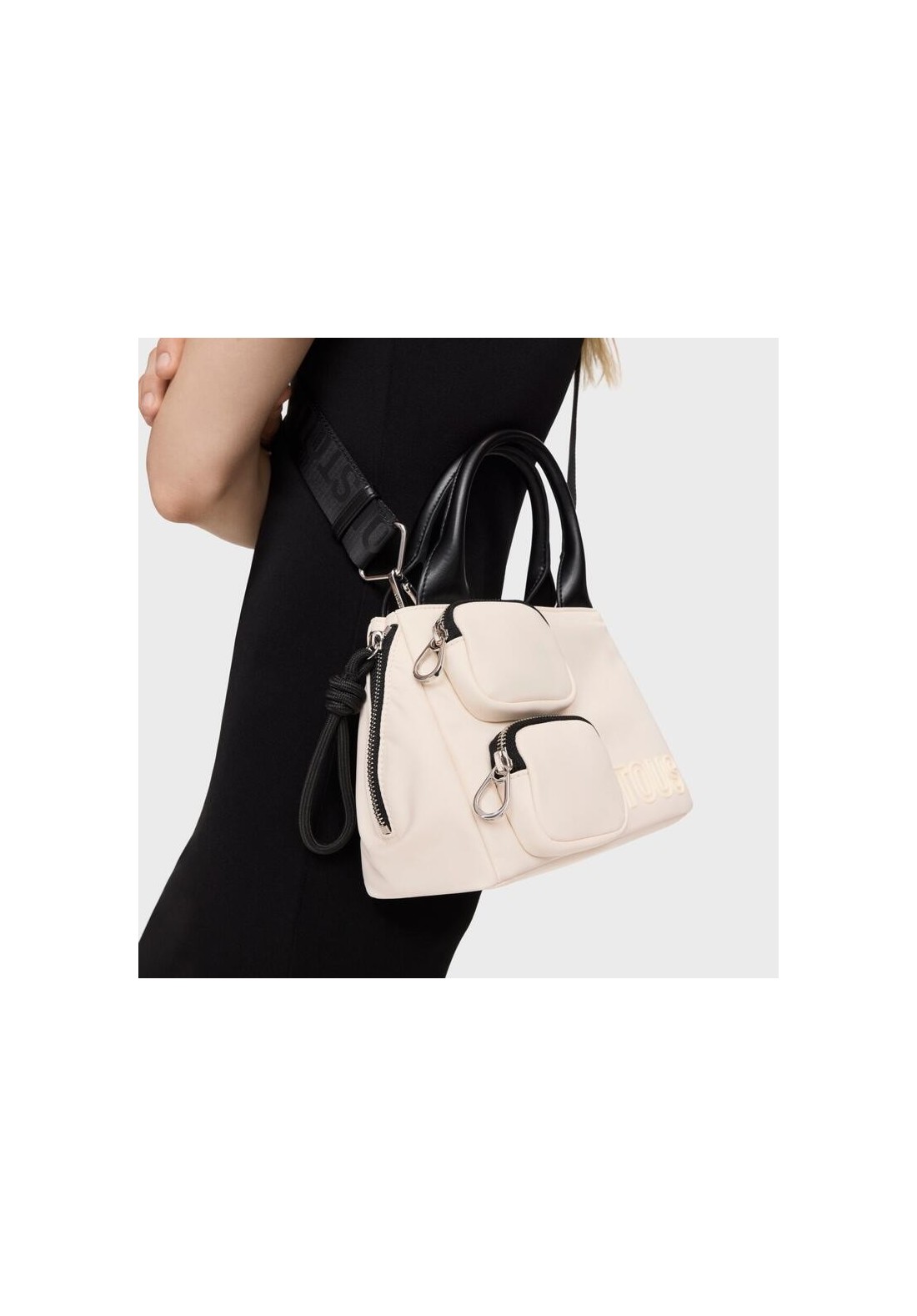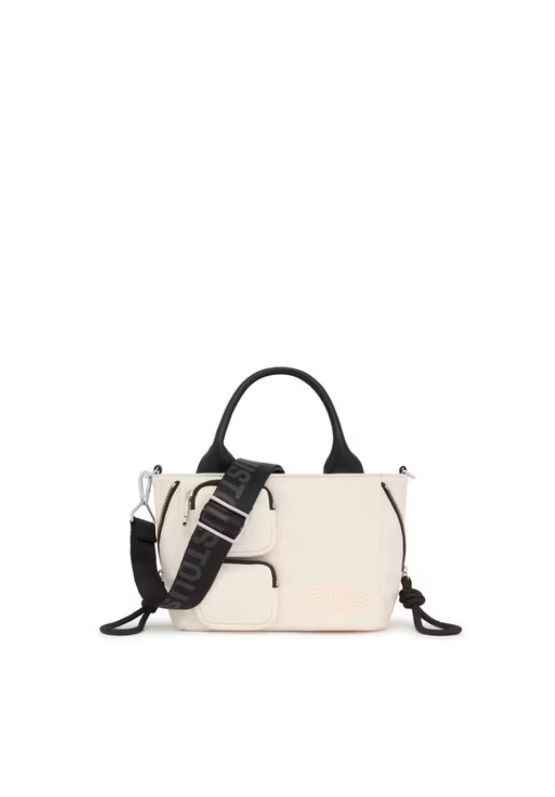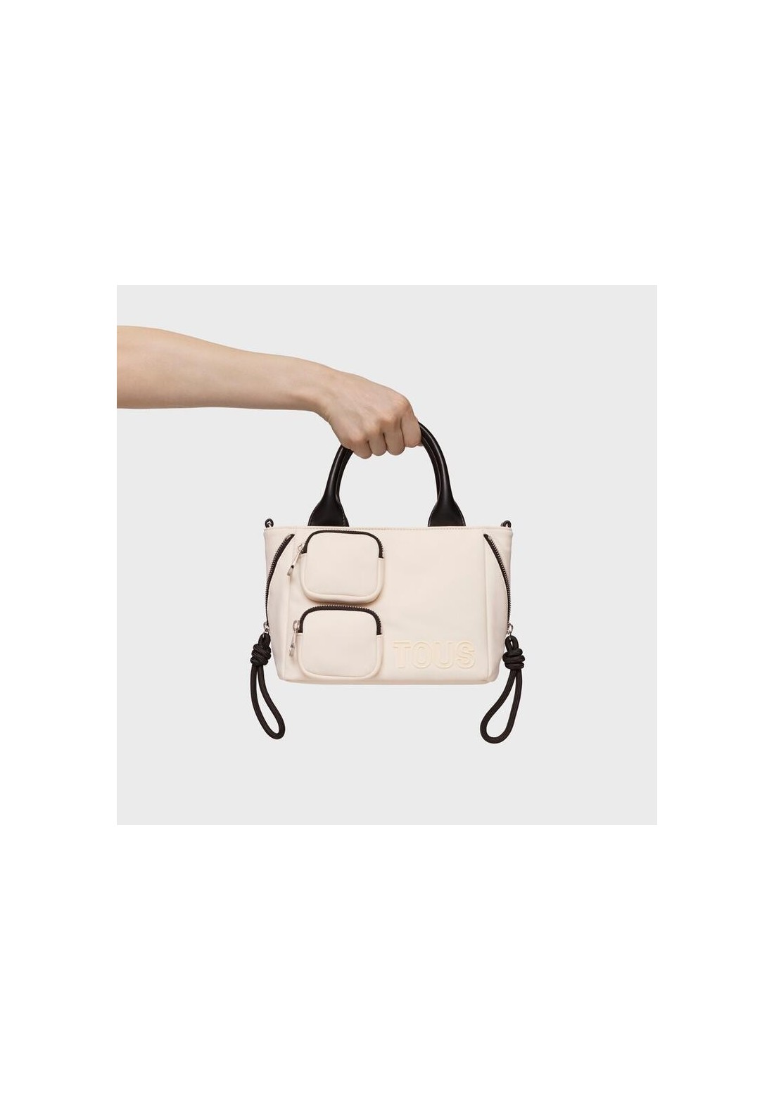 Bolso shopper pequeño TOUS Roomy de poliéster reciclado con detalles de poliuretano y cierre de cremallera. Tiene dos bolsillos exteriores con cierre de cremallera y un bolsillo interior abierto, asas fijas de hombro y asa bandolera ajustable y desmontable.