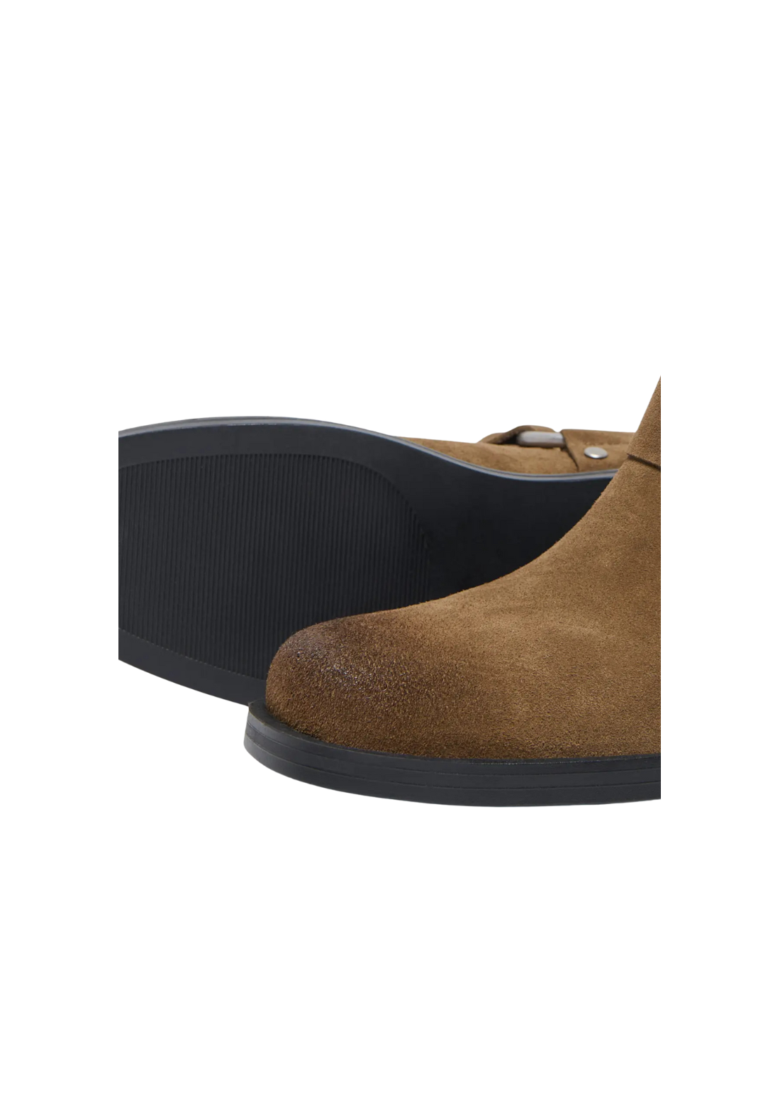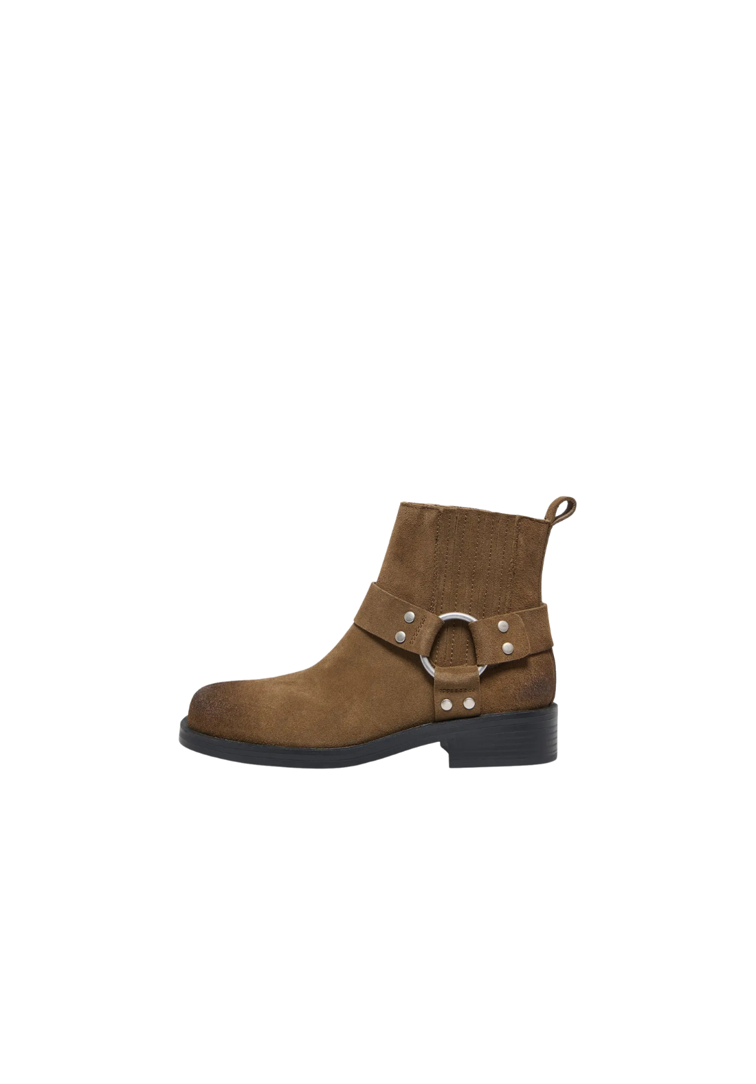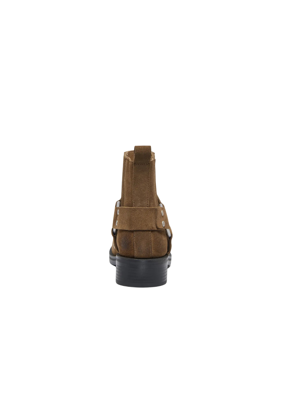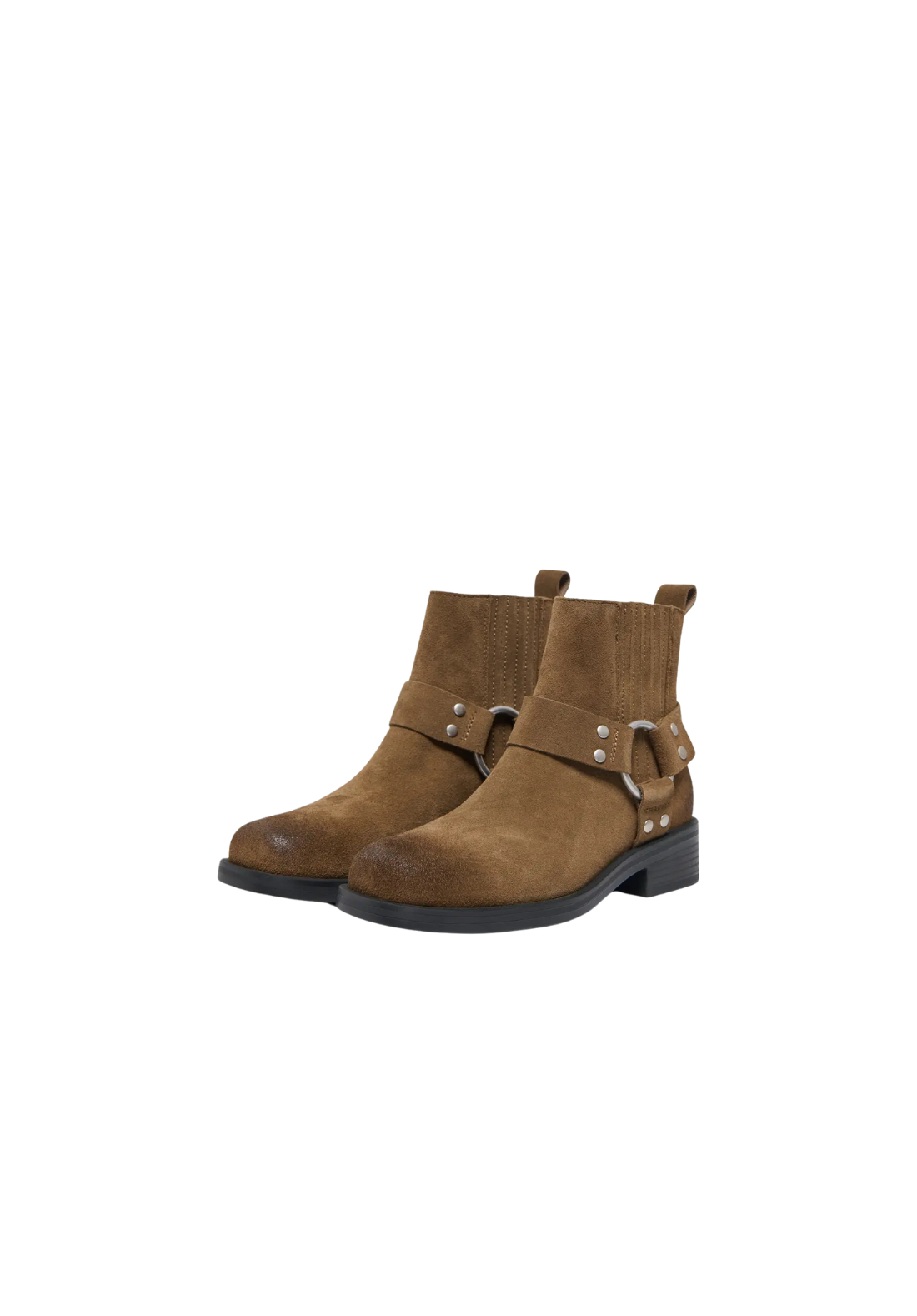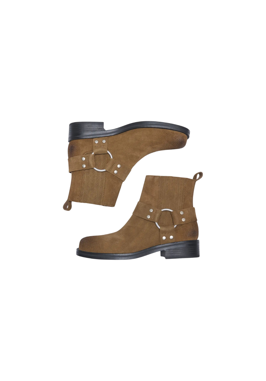 Botas estilo biker, de punta cuadrada y largo hasta los tobillos. La suela es resistente, de goma termoplástica.