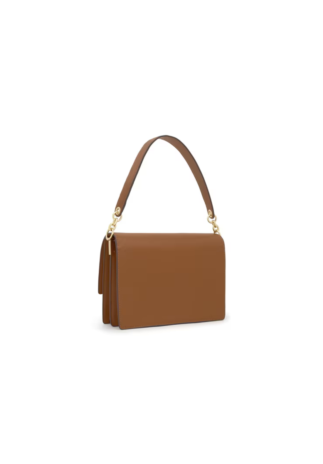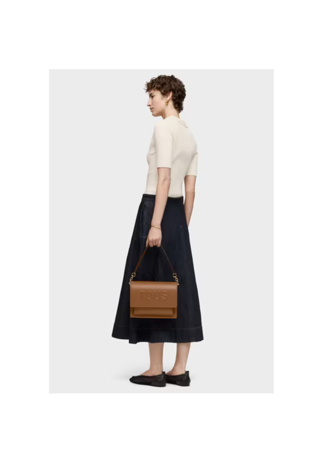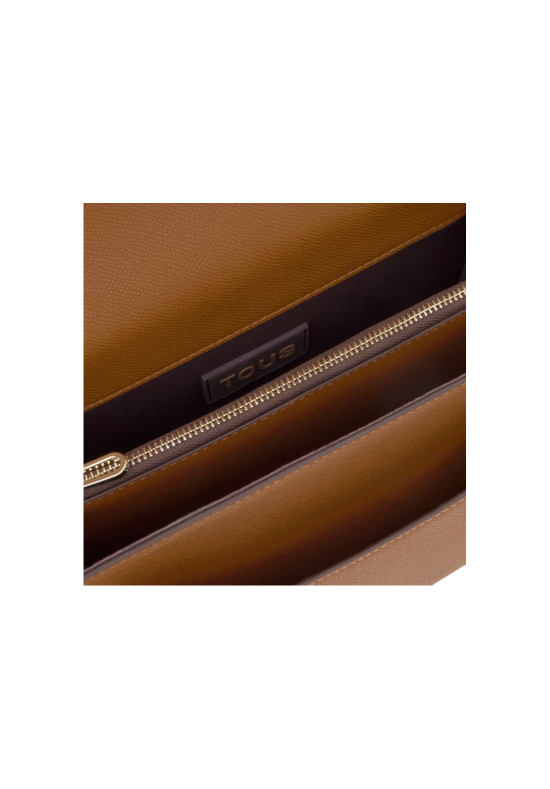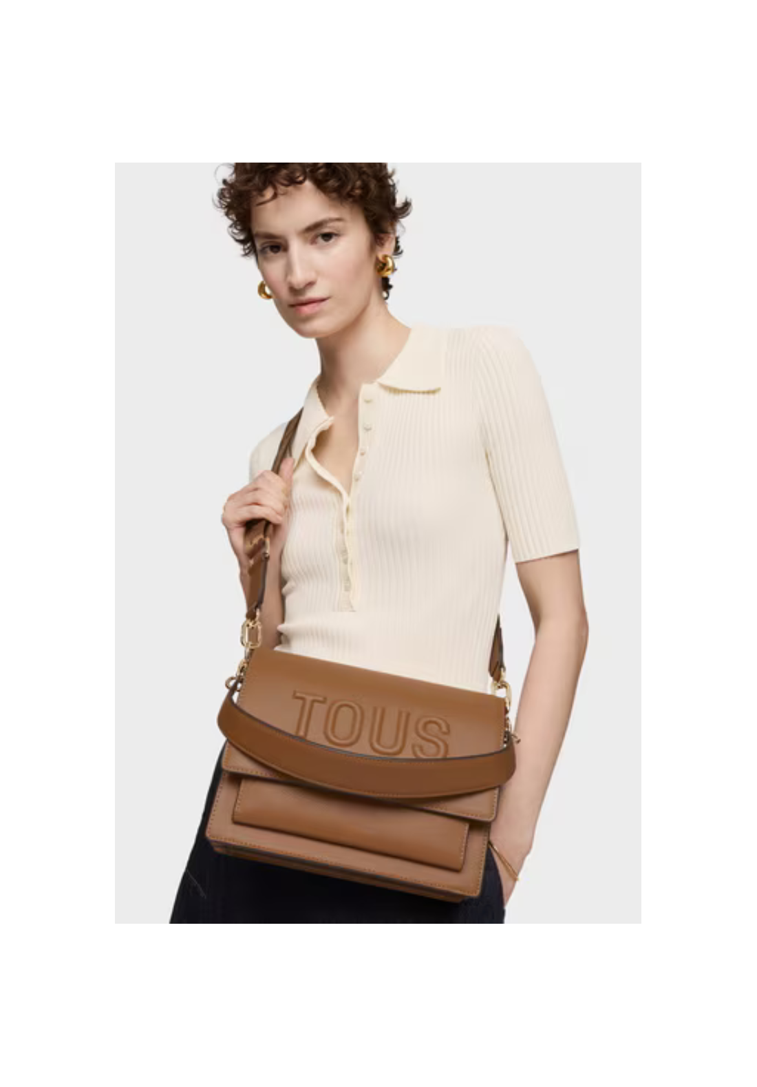 Bolso bandolera mediano Audree TOUS Brenda de poliuretano que incorpora una solapa y cierre con dos botones magnéticos. Cuenta con dos compartimentos separados por uno con cremallera y un bolsillo abierto en la parte delantera. Asa de hombro fija y asa bandolera ajustable y desmontable.