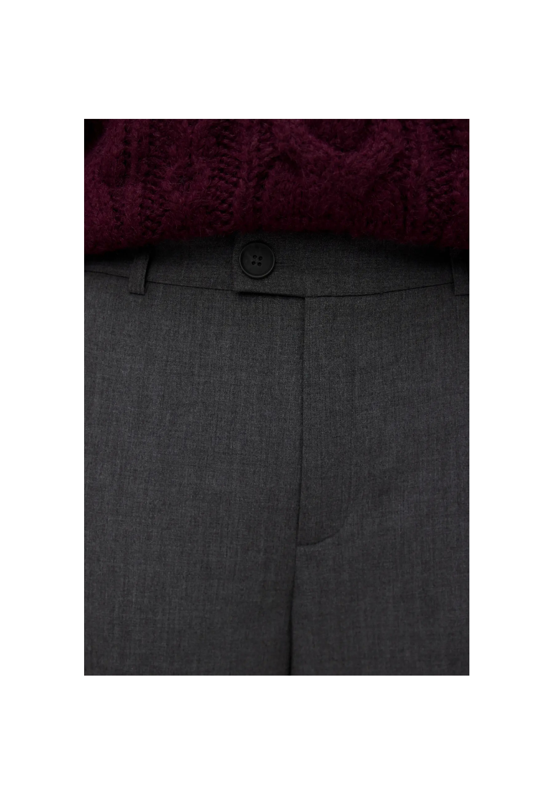 Pantalones de sastre, con cierre de botón y cremallera. Es de talle medio y tiene trabillas para el cinturón.