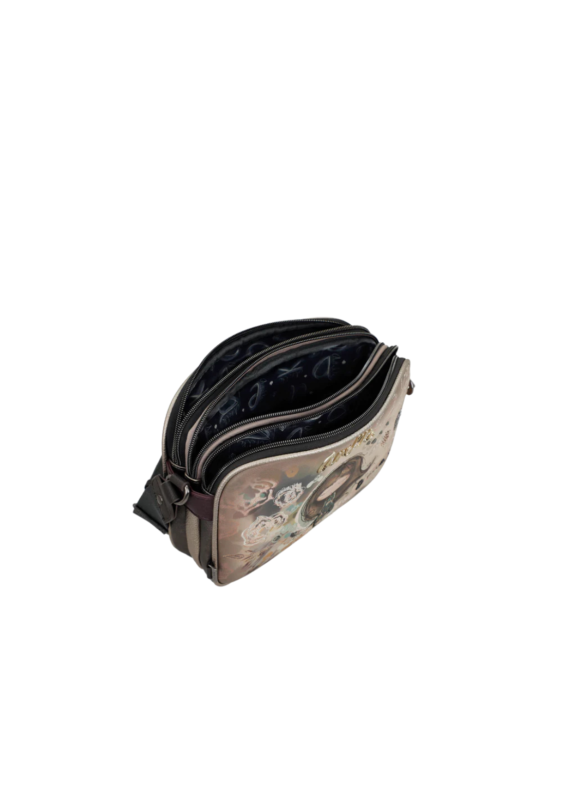 Tiene varios bolsillos: 3 compartimentos, 1 bolsillo trasero, int. 1 móvil y 1 crema.
