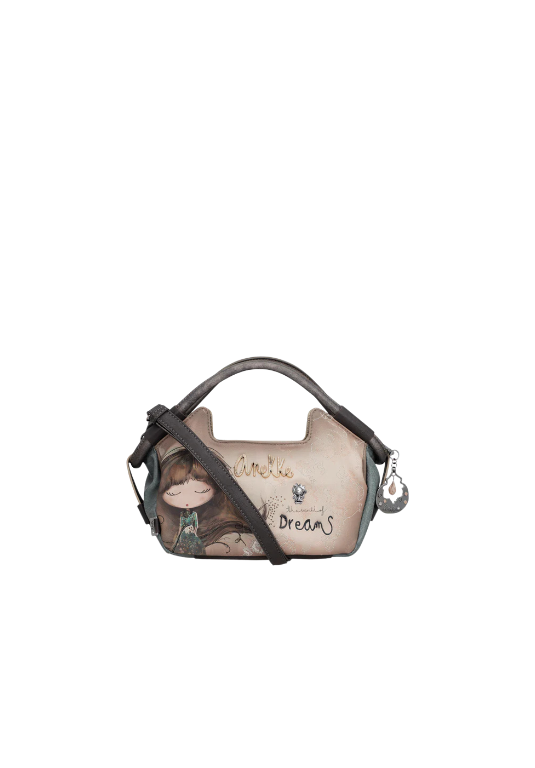 Bolso con cierre de cremallera y dos asas, una de mano y otra tipo bandolera.