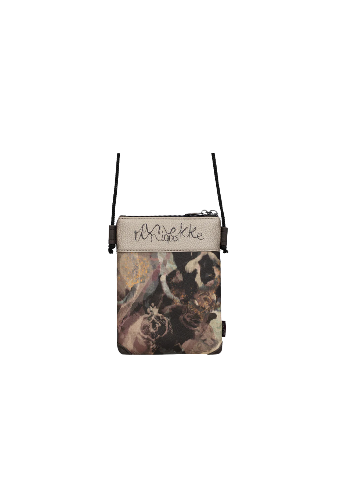 Bolso con cierre de cremallera y asa tipo bandolera. Tiene 1 bolsillo delantero.
