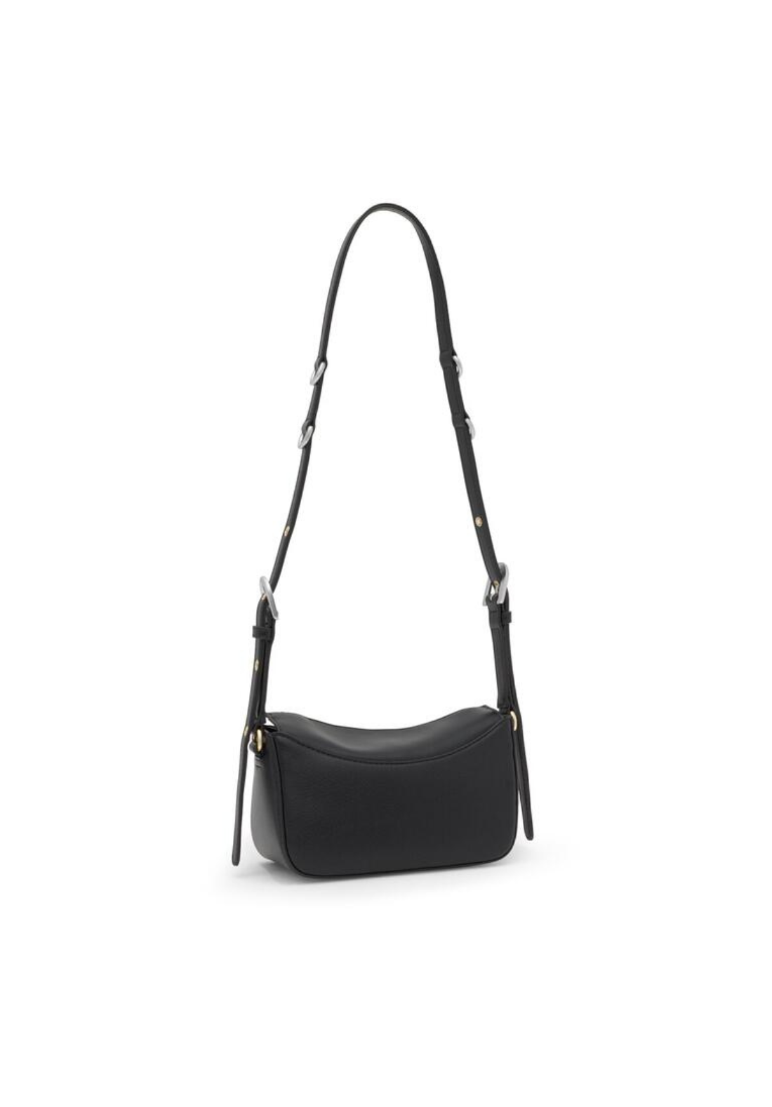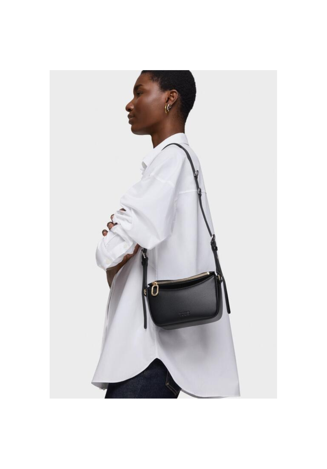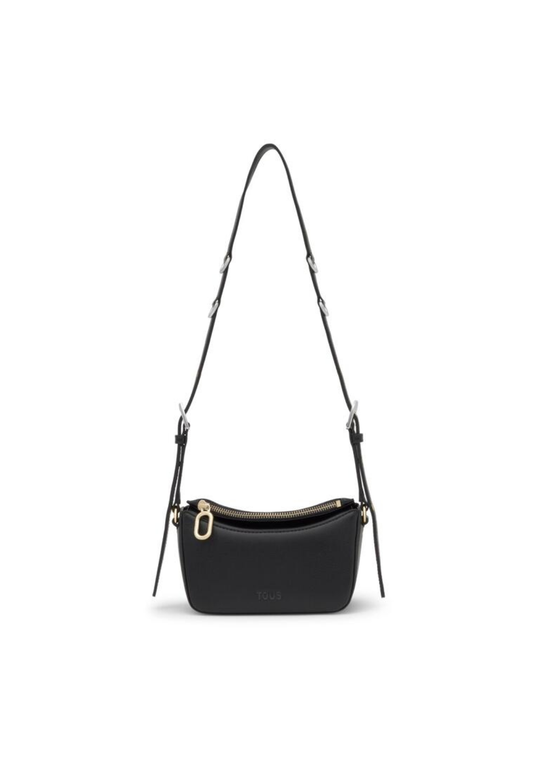 Bolso bandolera pequeño TOUS City de poliuretano con cierre magnético y asa bandolera ajustable y desmontable. Tiene un bolsillo exterior con cremallera. Medidas (alto x ancho x fondo): 12 x 20 x 9 cm.