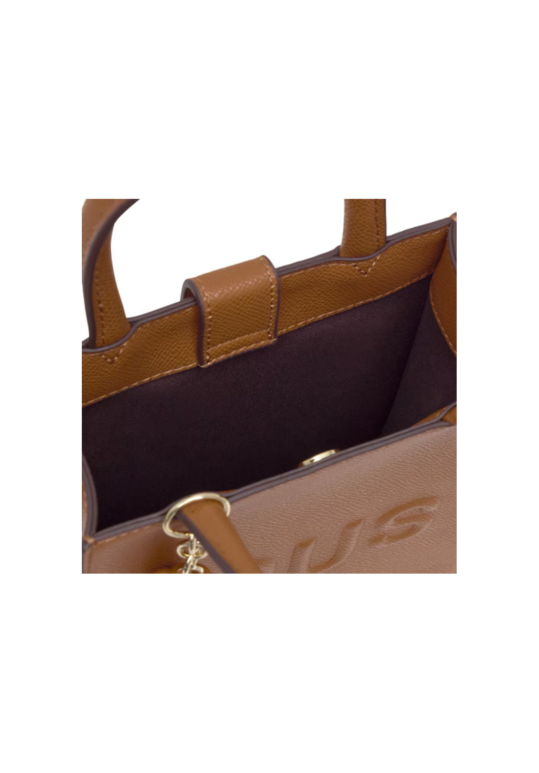 Minibolso Pop TOUS Brenda de poliuretano con cierre con botón magnético. Tiene asas fijas de mano y asa bandolera ajustable y desmontable. Incorpora un bonito detalle de oso colgante.