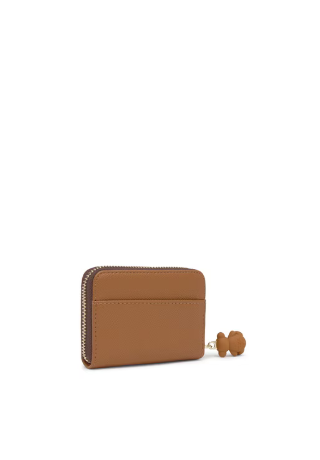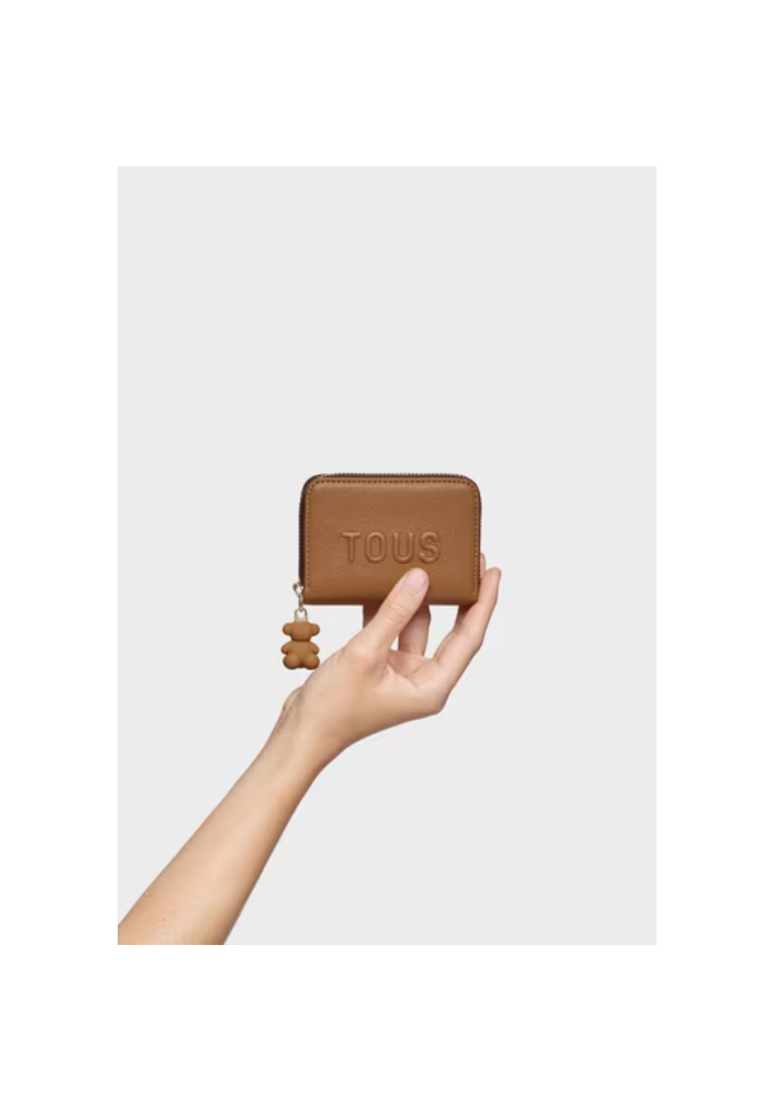 Monedero TOUS Brenda de poliuretano. En el interior cuenta con tres compartimentos abiertos para monedas y dos ranuras para tarjetas. Cierre de cremallera.