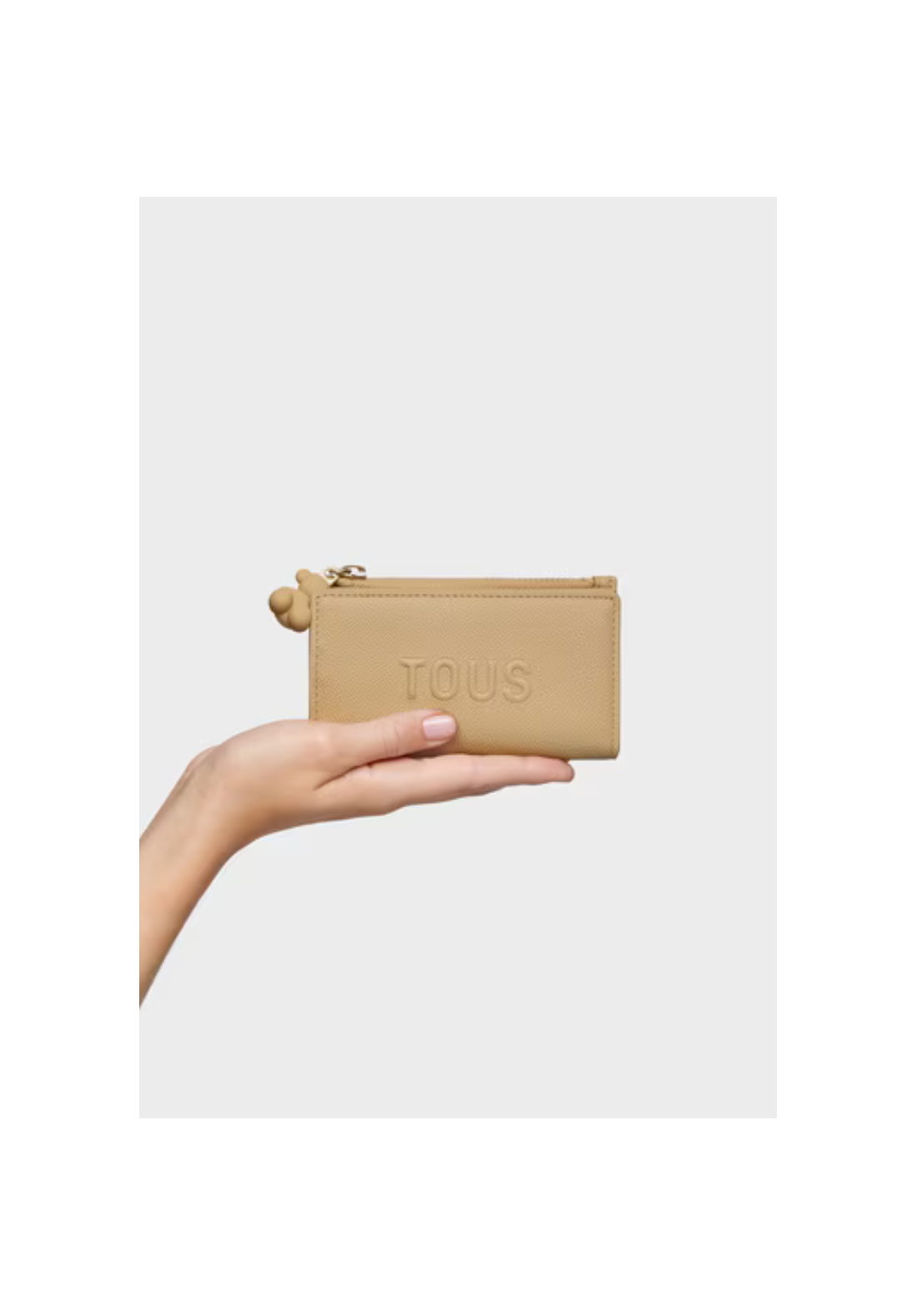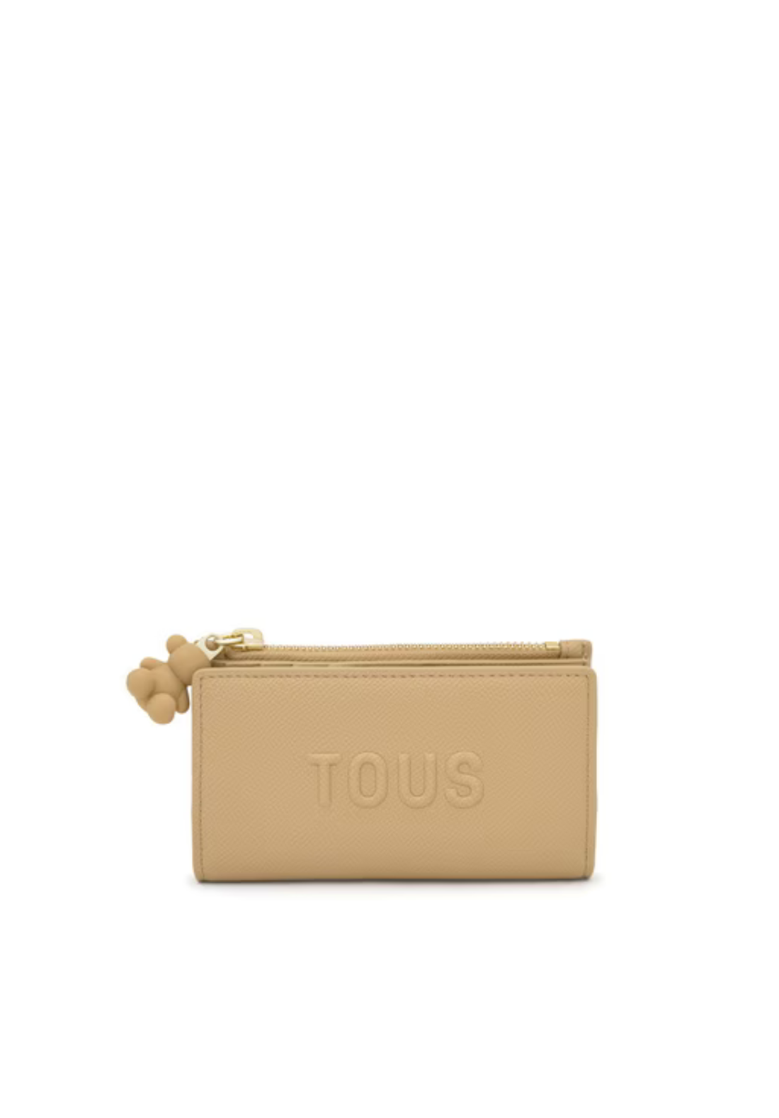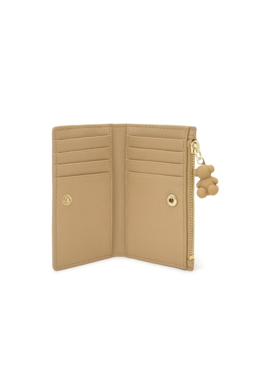 Cartera TOUS Brenda de poliuretano con cierre con botón a presión. Tiene un compartimento para monedas con cierre de cremallera. En el interior cuenta con ocho ranuras para tarjetas y dos espacios para billetes.