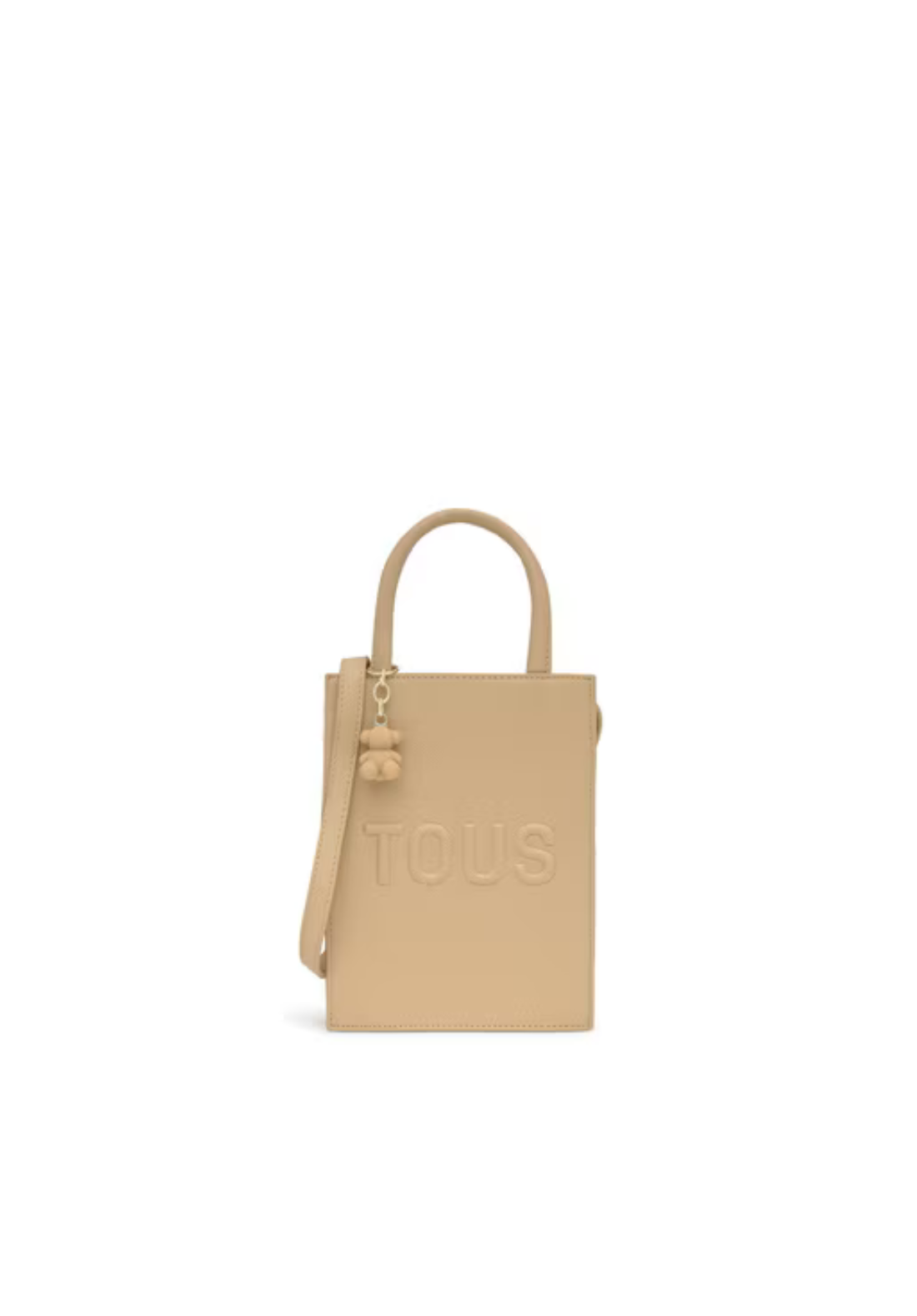 Minibolso Pop TOUS Brenda de poliuretano en color arena. Cierre con botón magnético. Asas fijas de mano y asa bandolera ajustable y desmontable. Incorpora un bonito detalle de oso colgante. Medidas (alto x ancho x fondo): 20 x 16 x 7 cm.