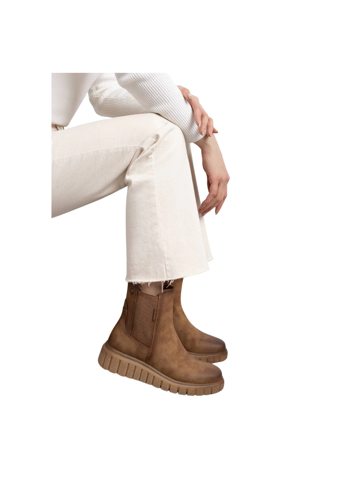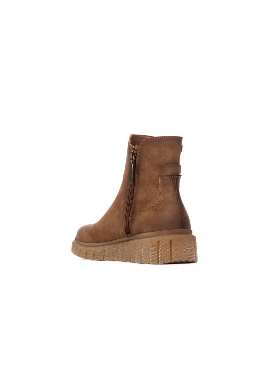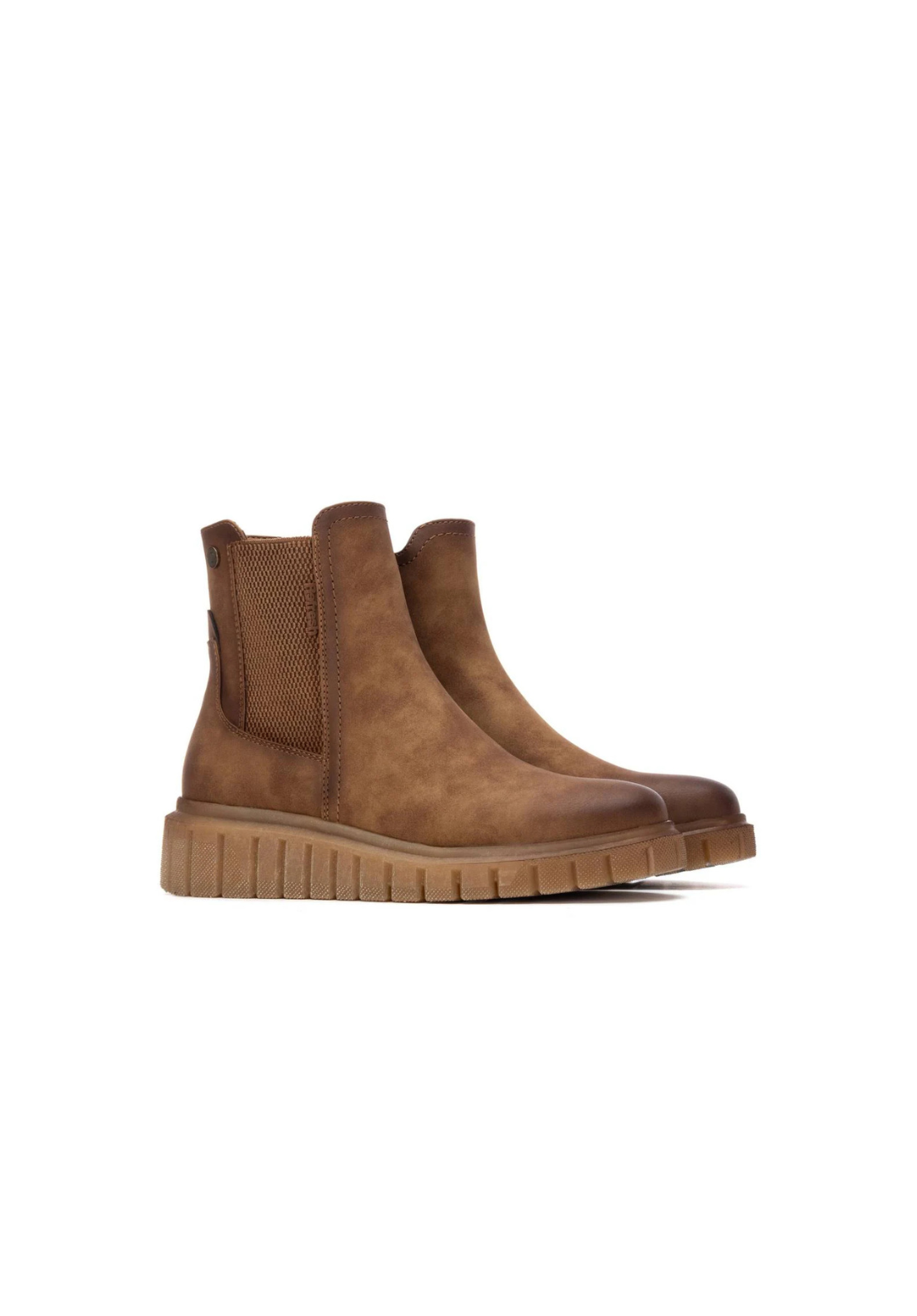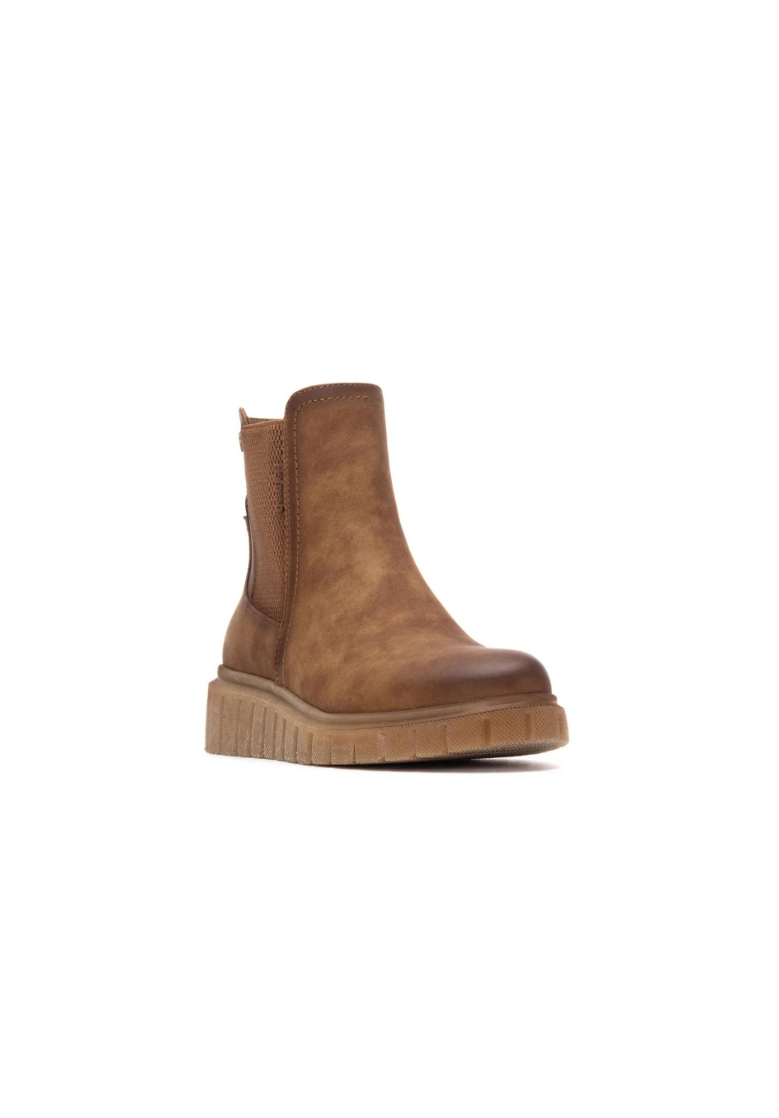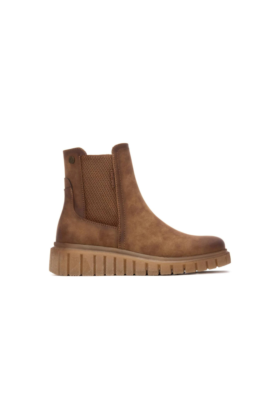 Botín tipo chelsea, fabricado en material que imita a la piel. Cierre mediante cremallera interna. Suela volumen rayada de goma antideslizante. Con plantilla extraíble. Este modelo ha obtenido el certificado vegano por la organización mundial PETA (Organización de los derechos de los animales).