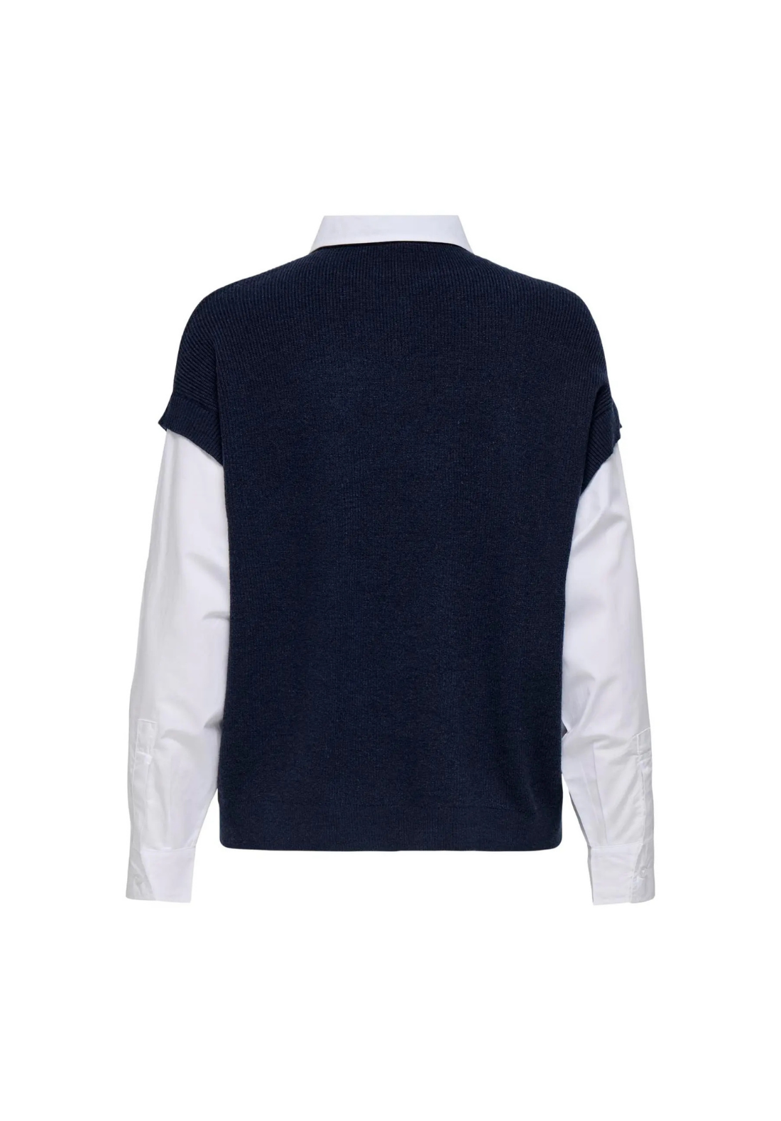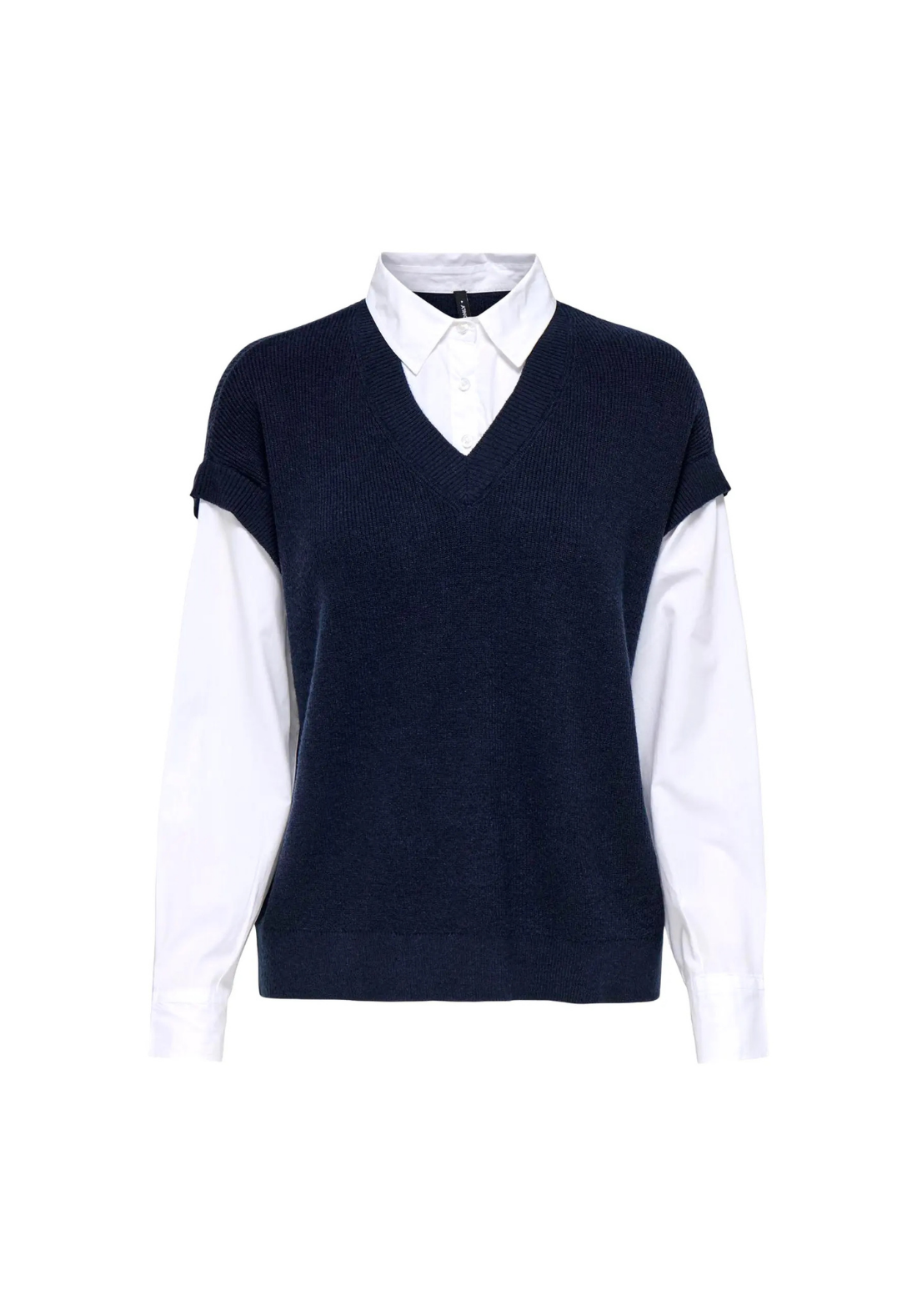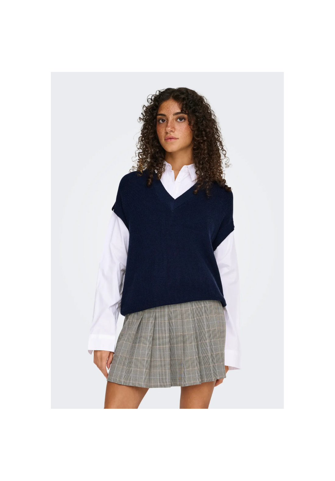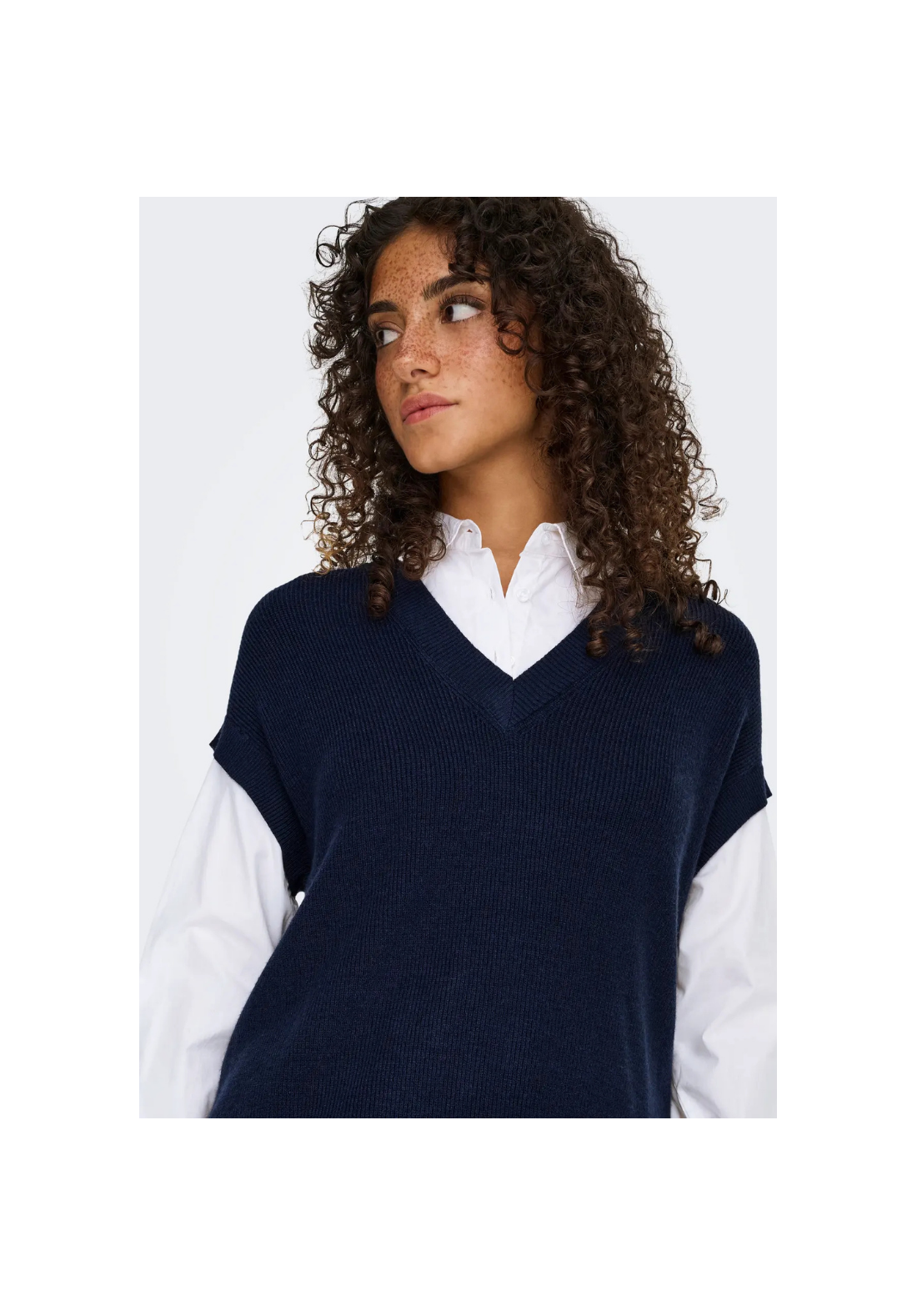 Chaleco de punto con cuello camisero. Manga: larga. Composición: 52 % viscosa, 26 % poliéster, 22 % nailon.