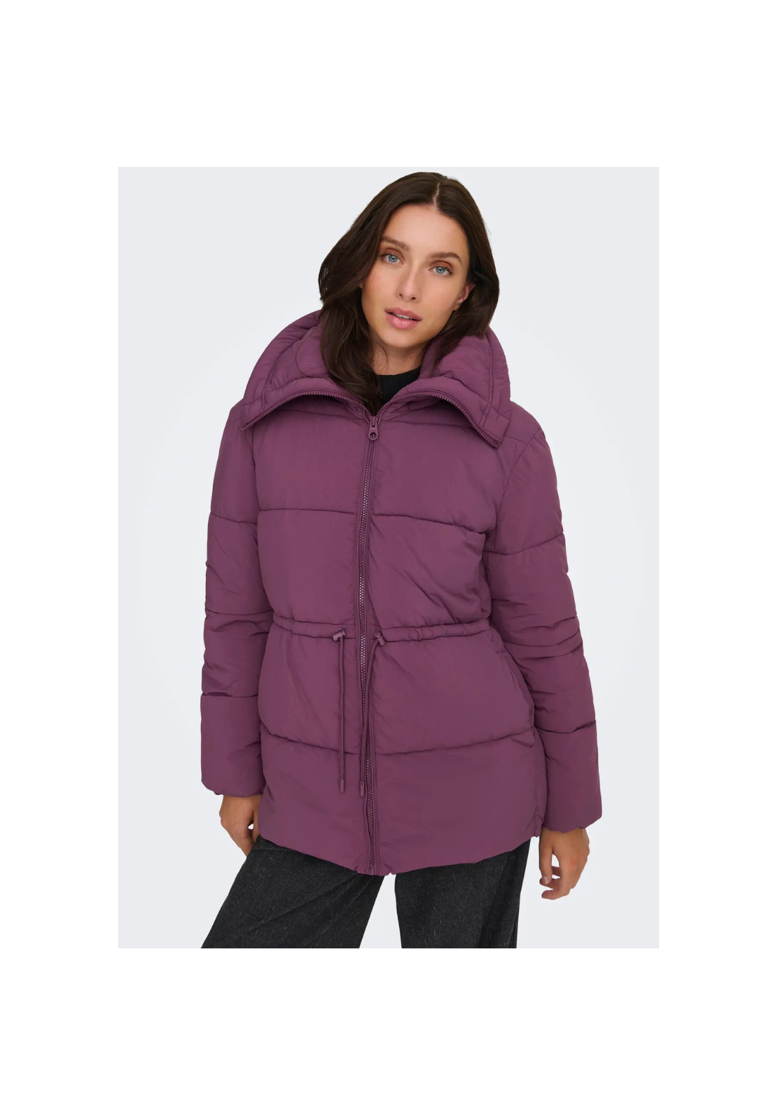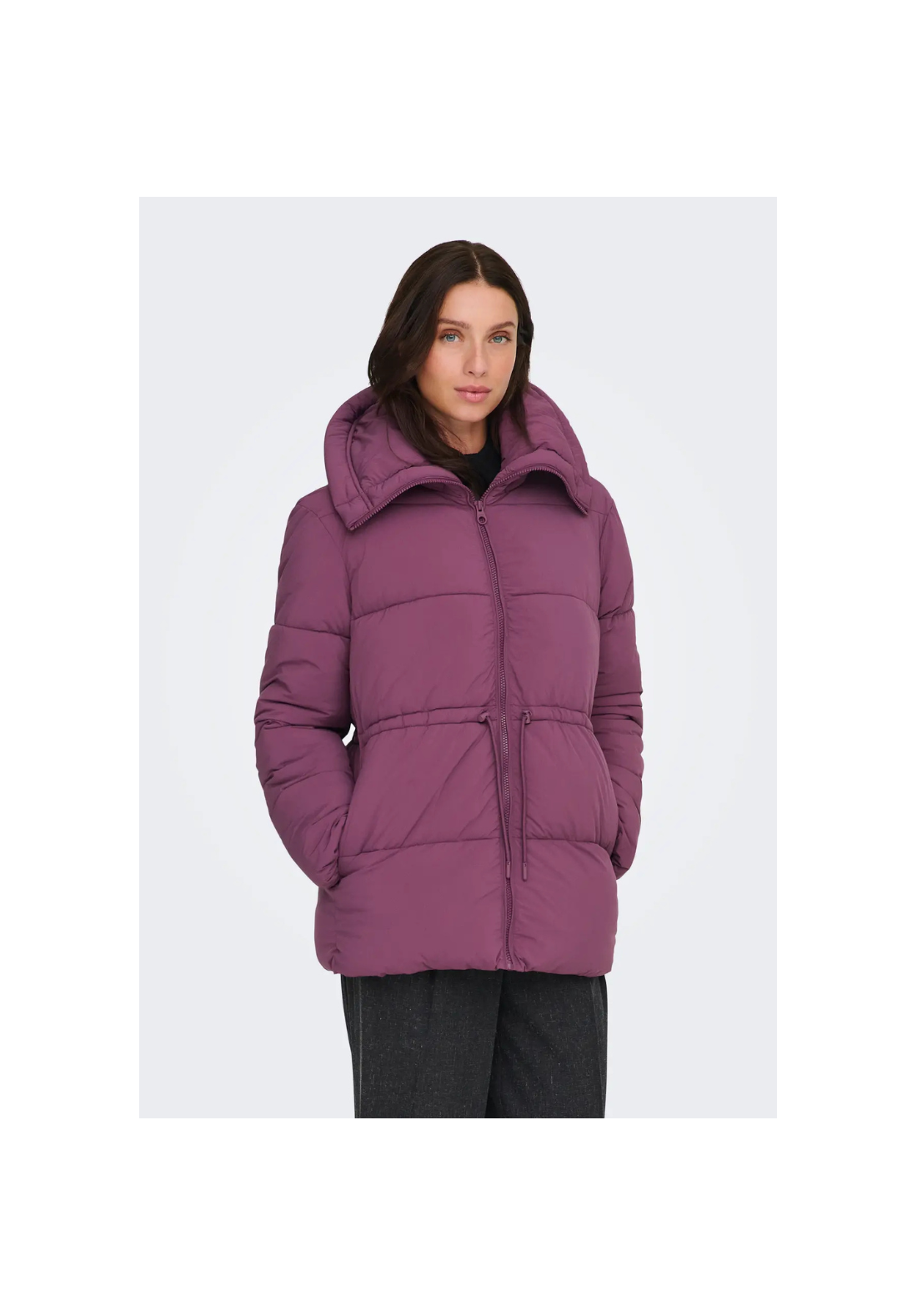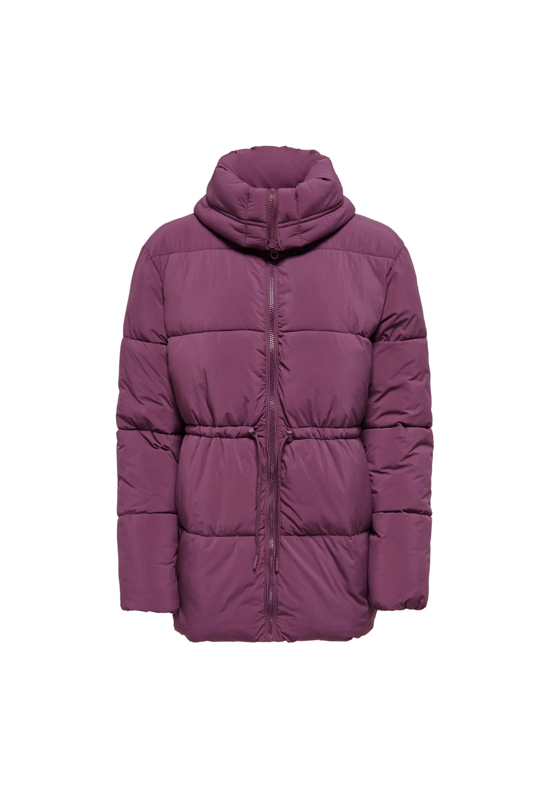 Chaqueta de cuello alto, con cierre de cremallera y bolsillos laterales. La cintura es ajustable.