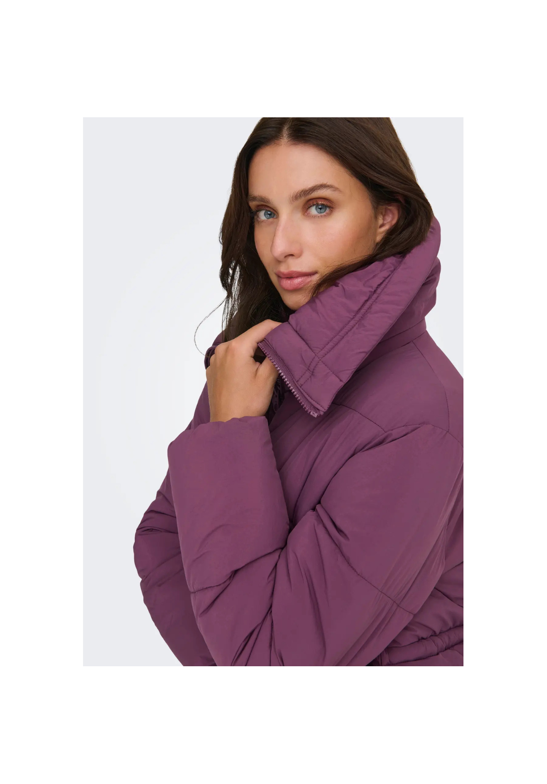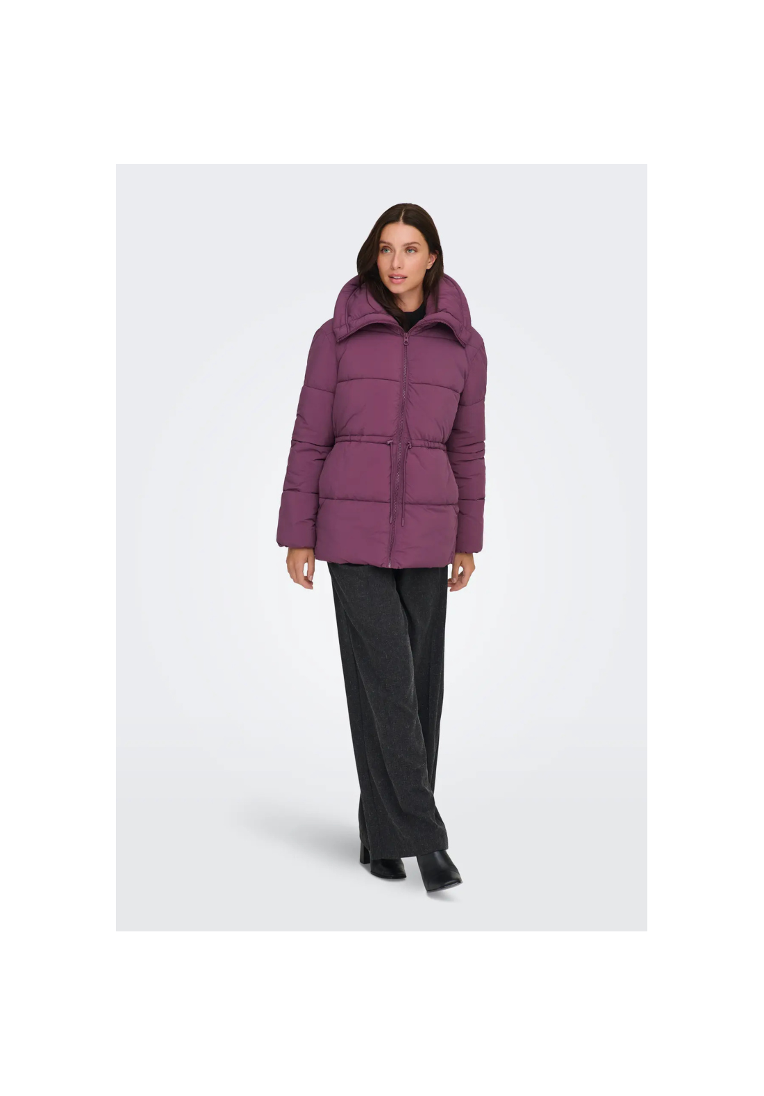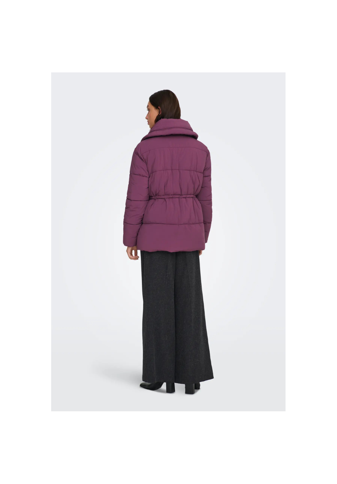 Chaqueta de cuello alto, con cierre de cremallera y bolsillos laterales. La cintura es ajustable.