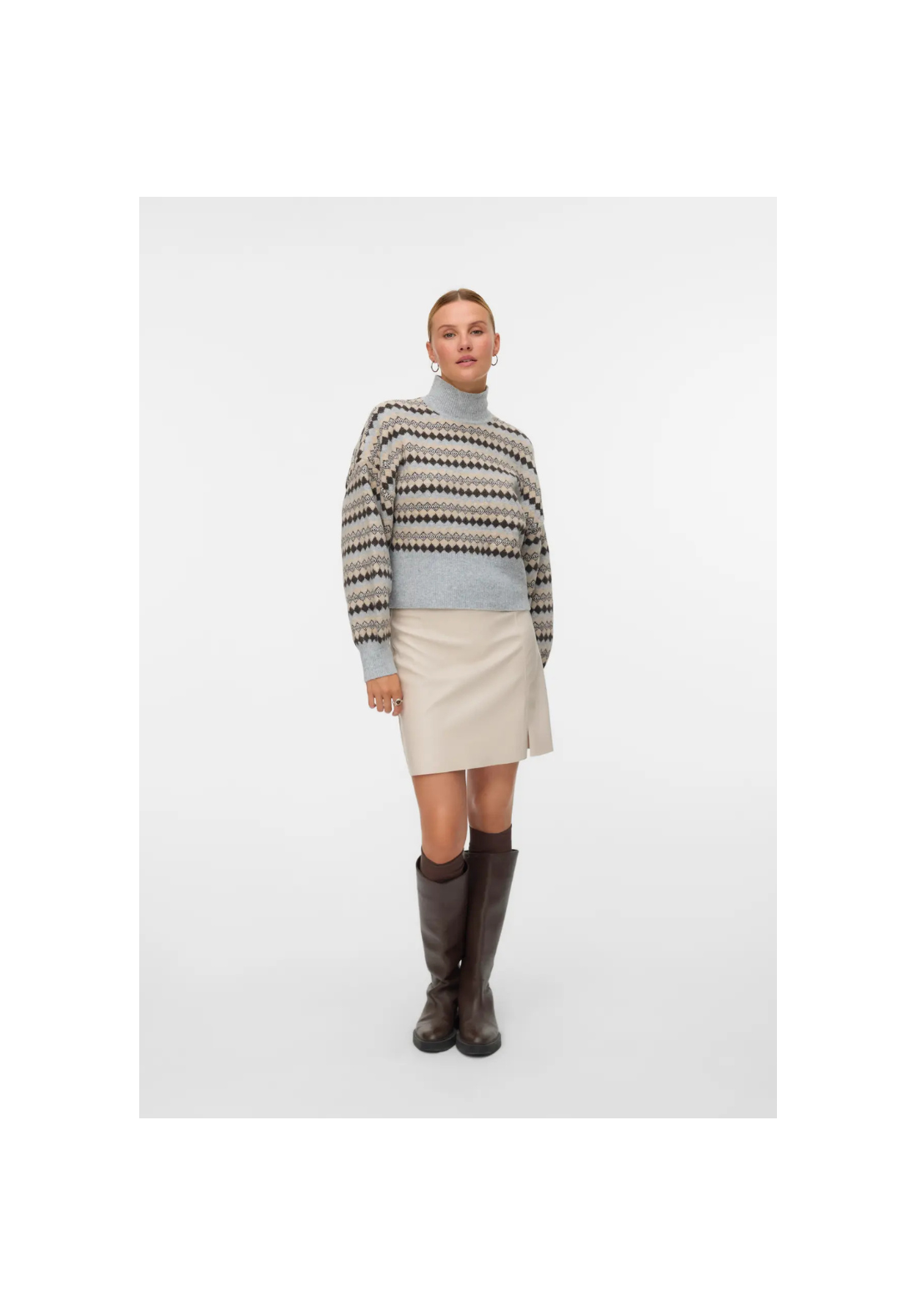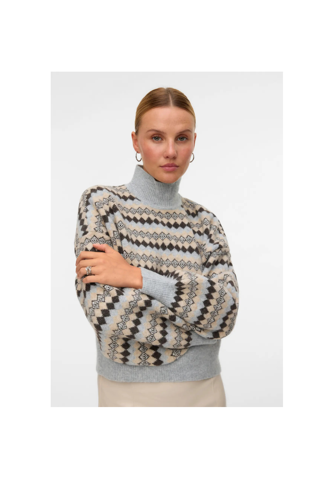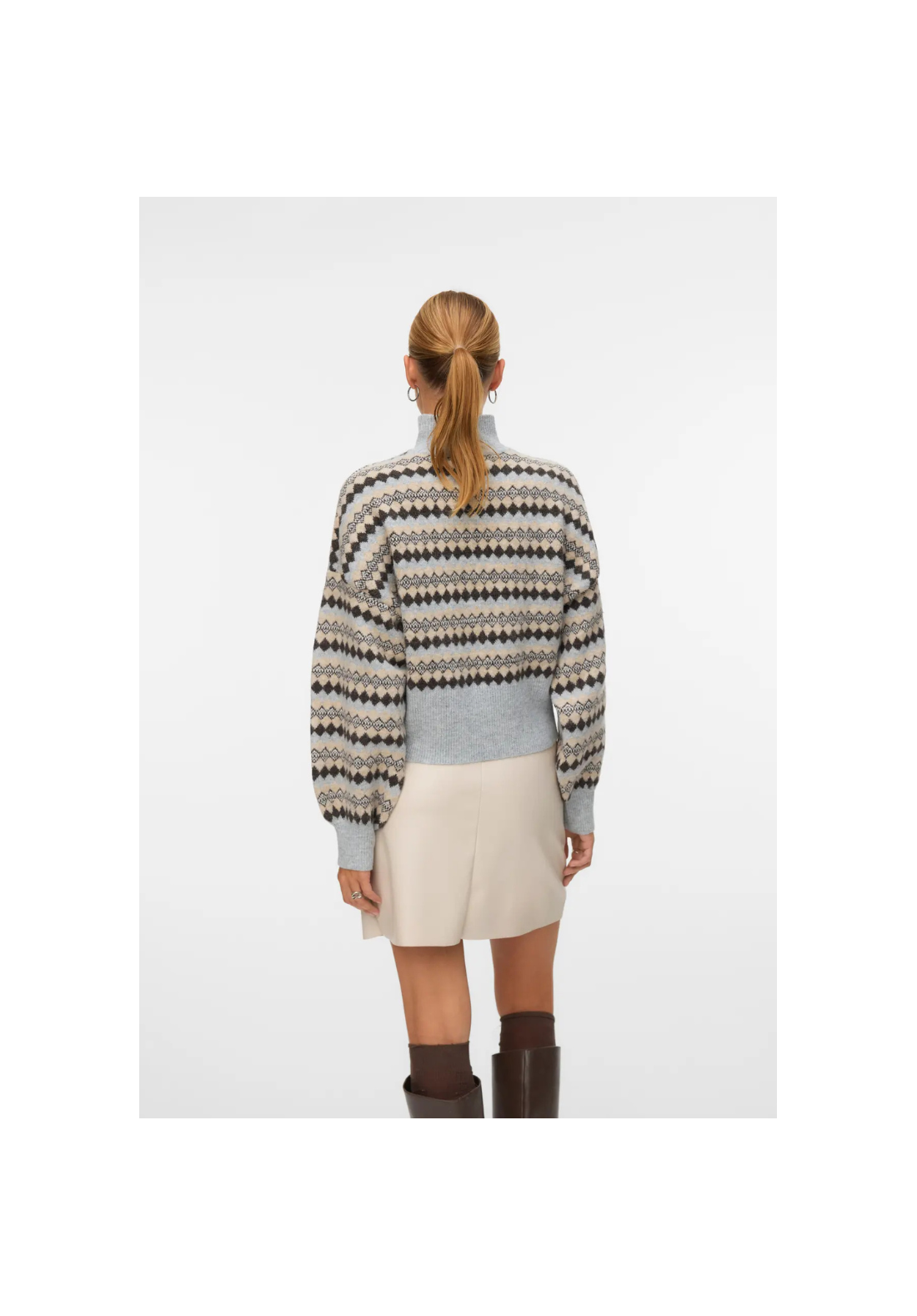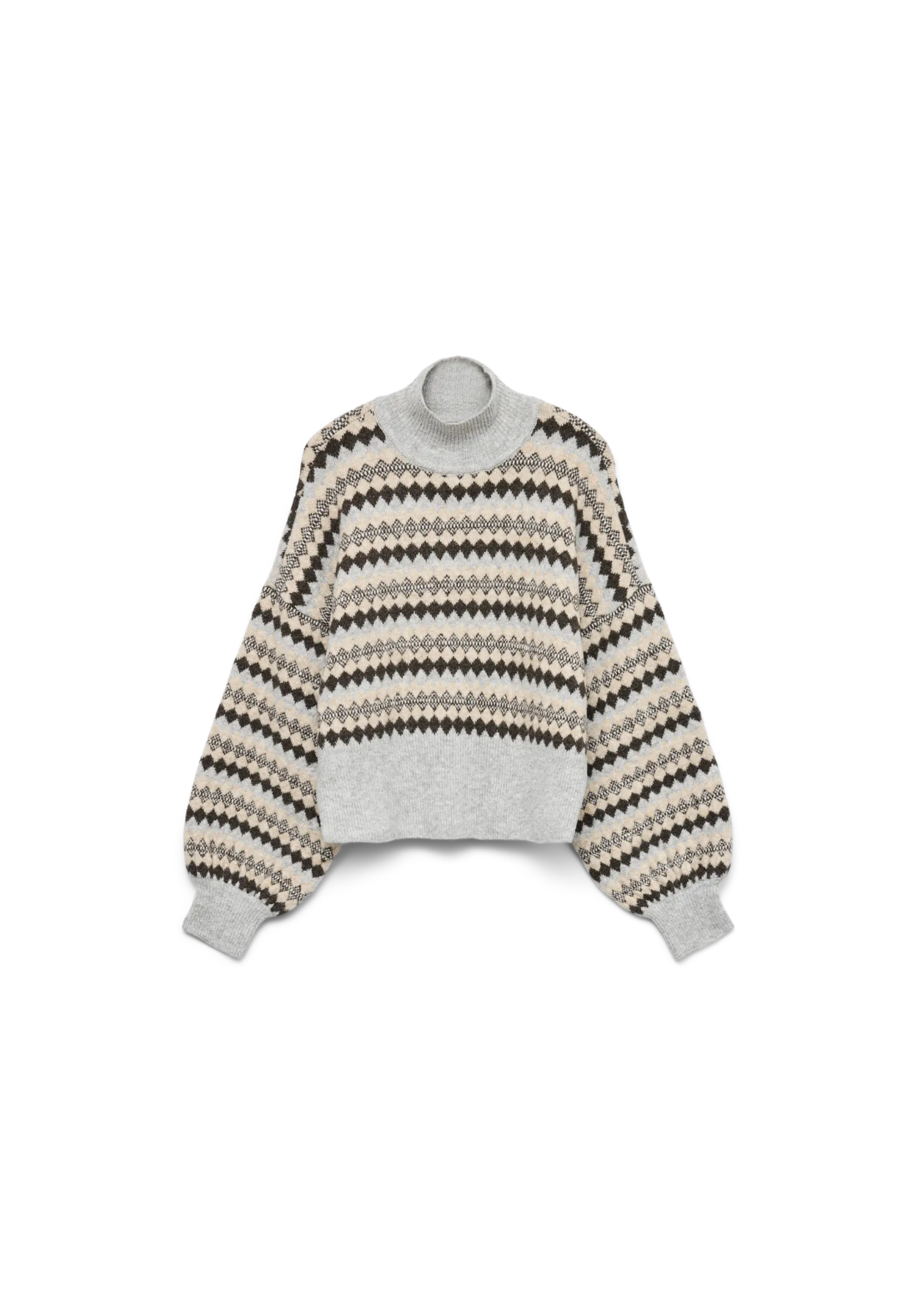 Jersey de punto, de cuello alto, mangas abullonadas y puños acanalados.