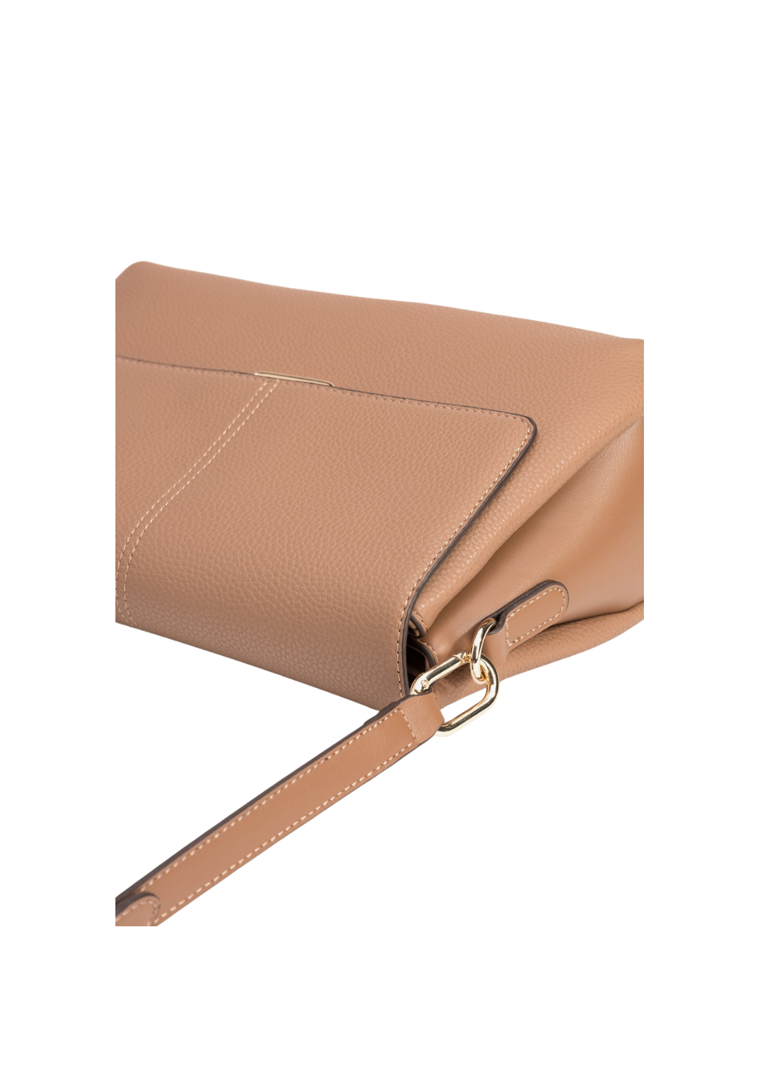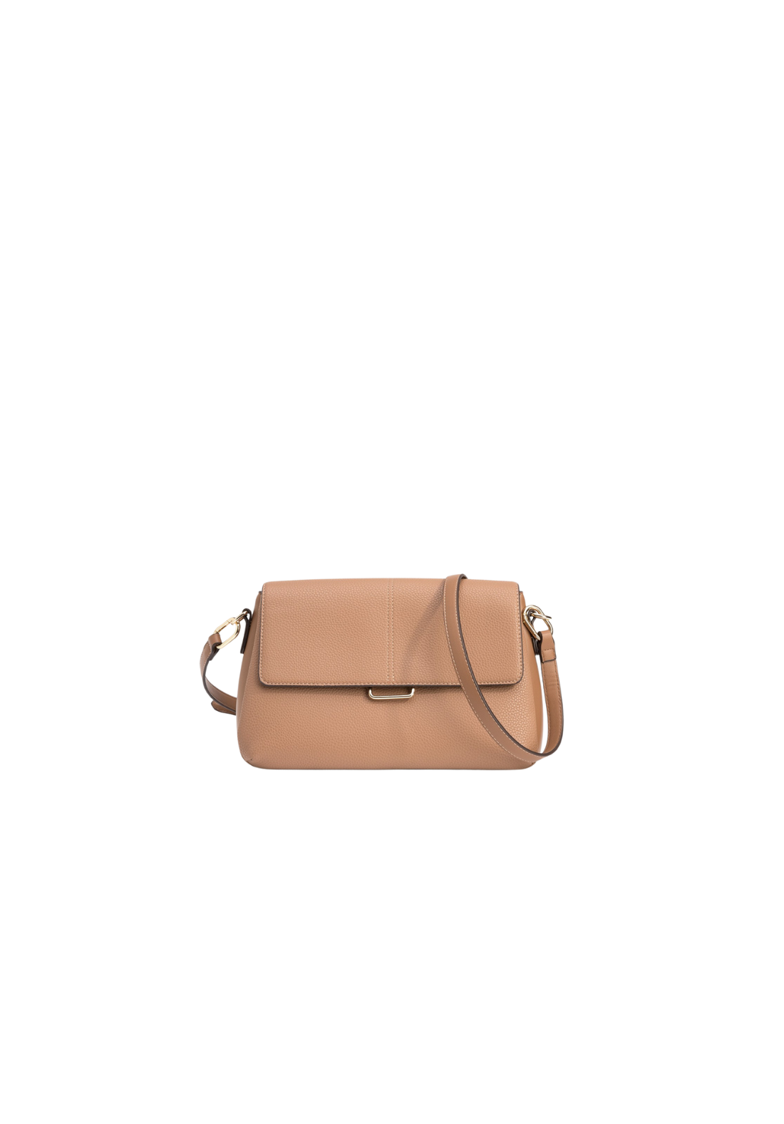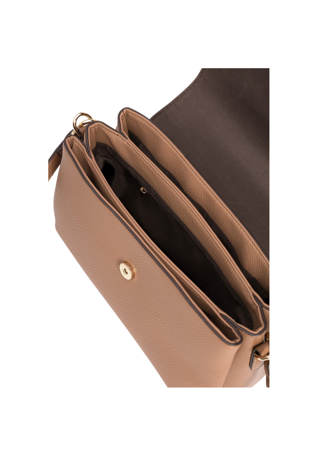 Bolso bandolera efecto piel con tres compartimentos, solapa con cierre magnético y detalle de hebilla. Asa bandolera ajustable y extraíble. Bolsillo interior con cierre de cremallera. Tamaño pequeño.
