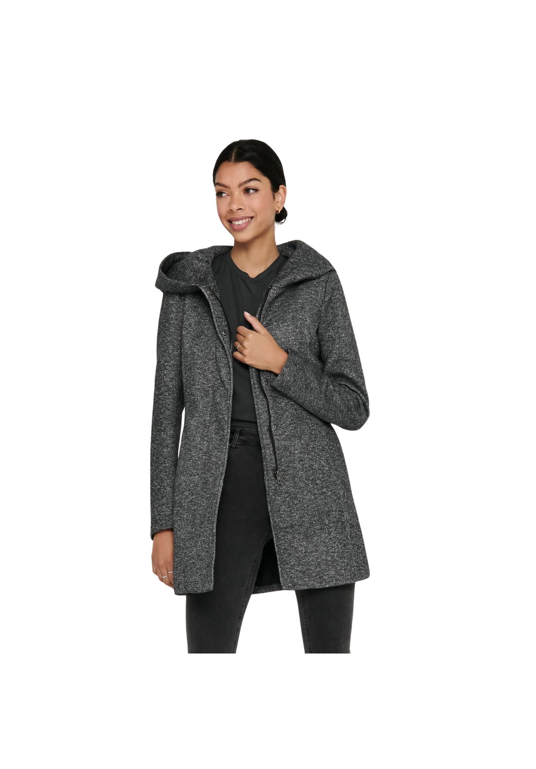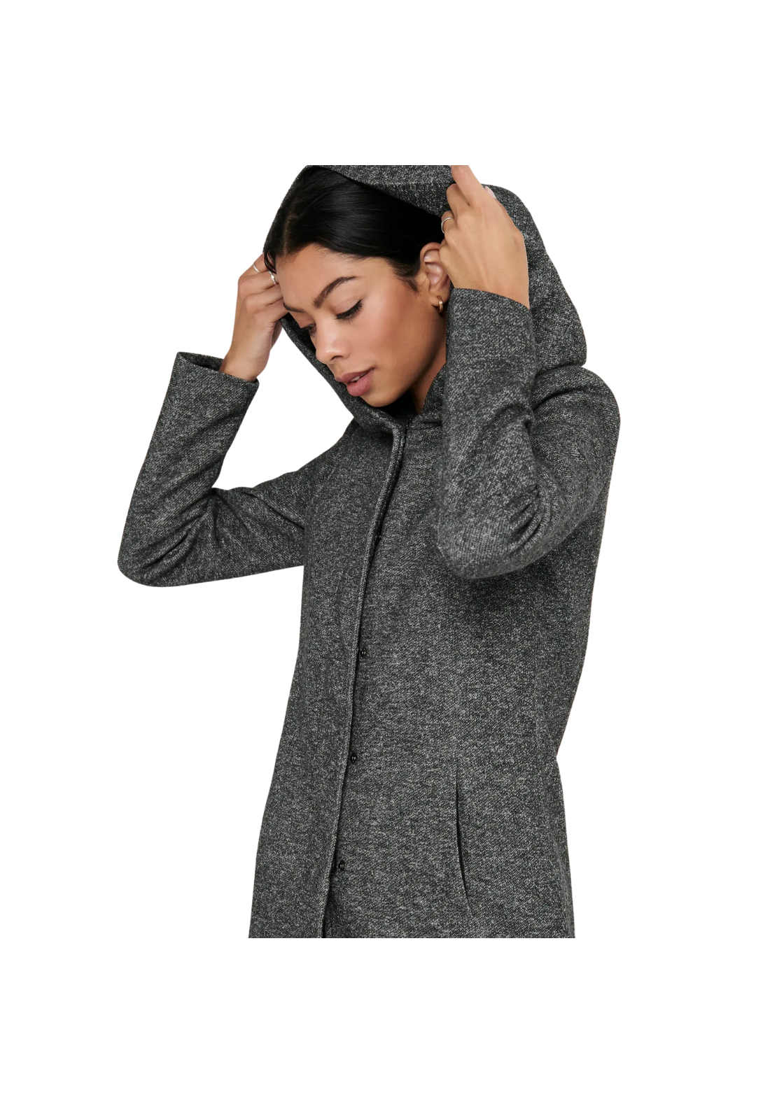Abrigo con capucha, de punto circular.