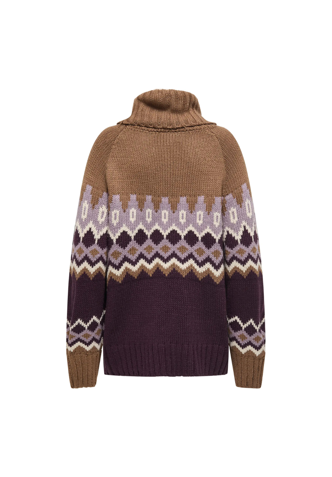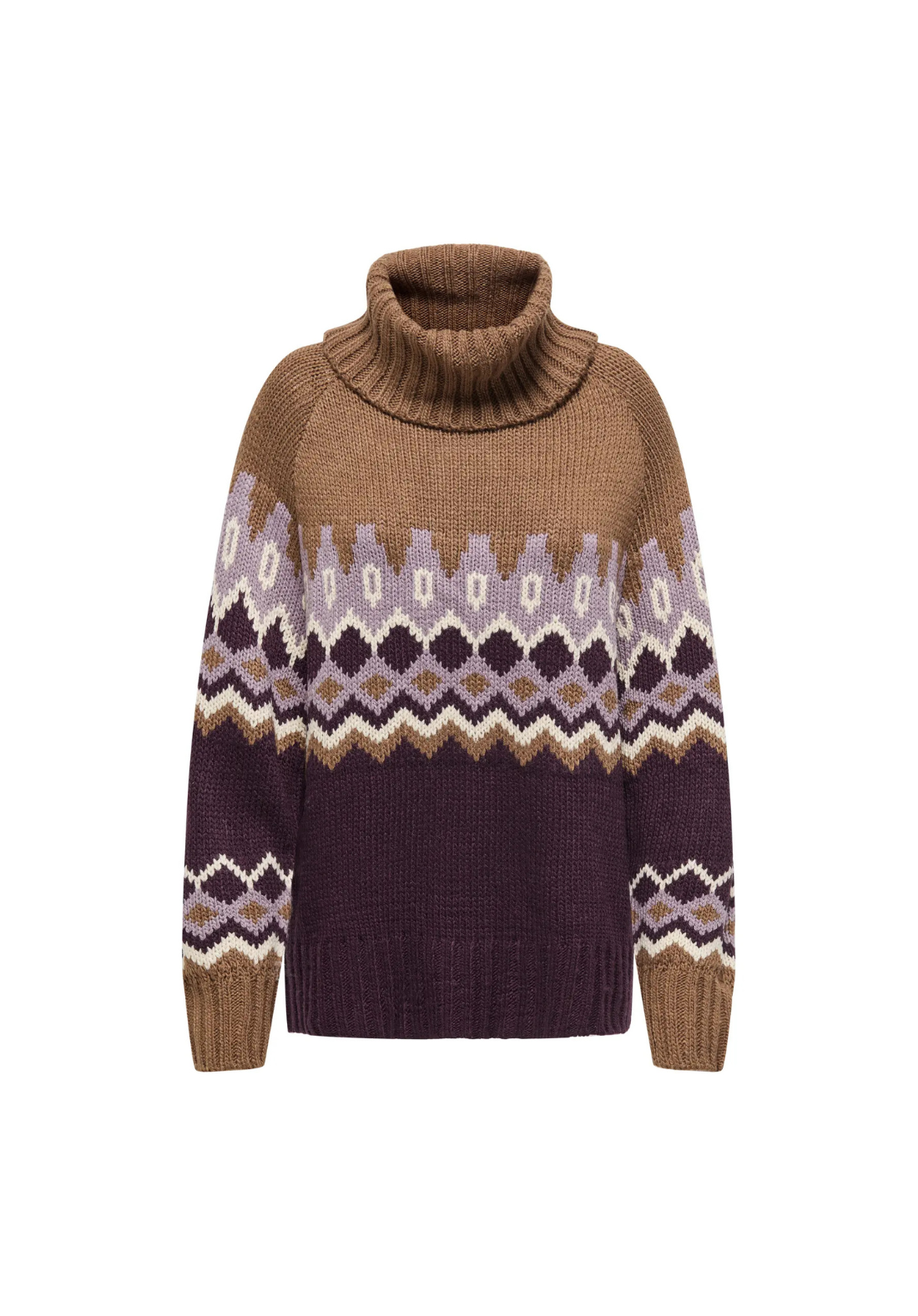 Jersey de punto, de cuello vuelto, puños acanalados y hombros caídos.