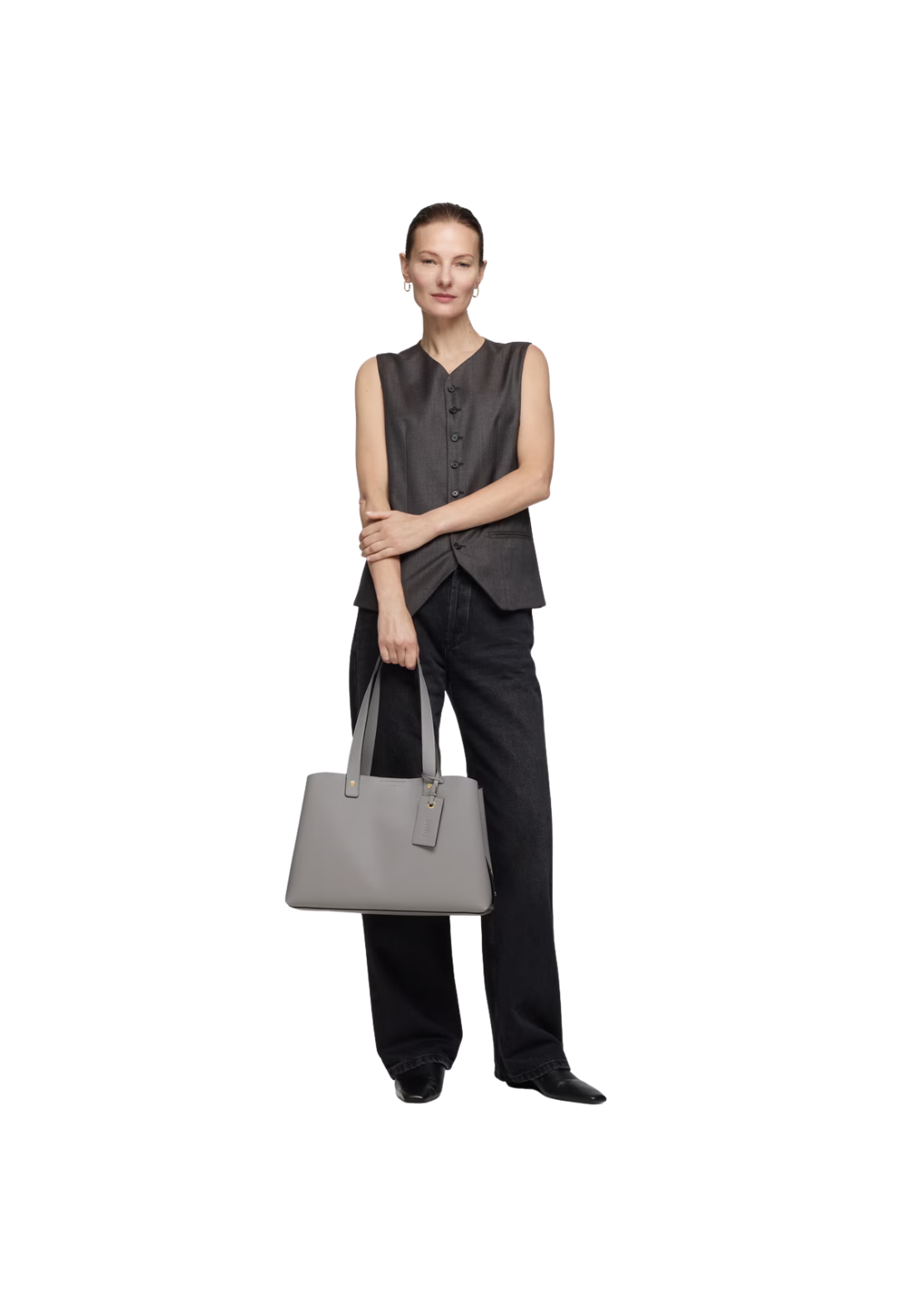 Bolso city mediano The Citybow de poliuretano con cierre con botón magnético. Bolsillo interior con cremallera. Asa fija de hombro.
