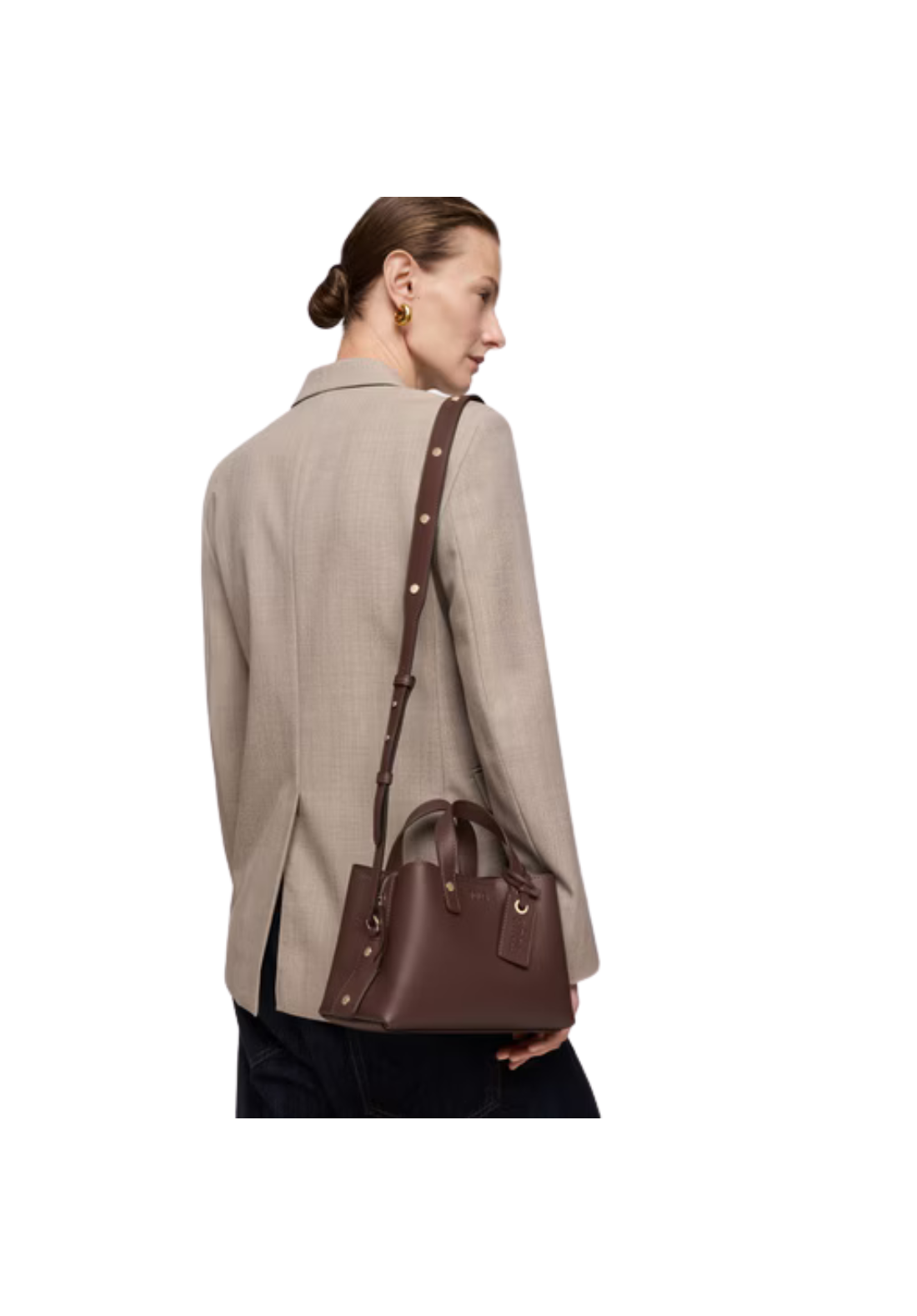 Bolso city pequeño The Citybow de poliuretano con cierre de cremallera. Bolsillo interior abierto. Asa fija de hombro y asa bandolera ajustable y extraíble. Medidas (alto x ancho x fondo): 13,5 x 25 x 15 cm.