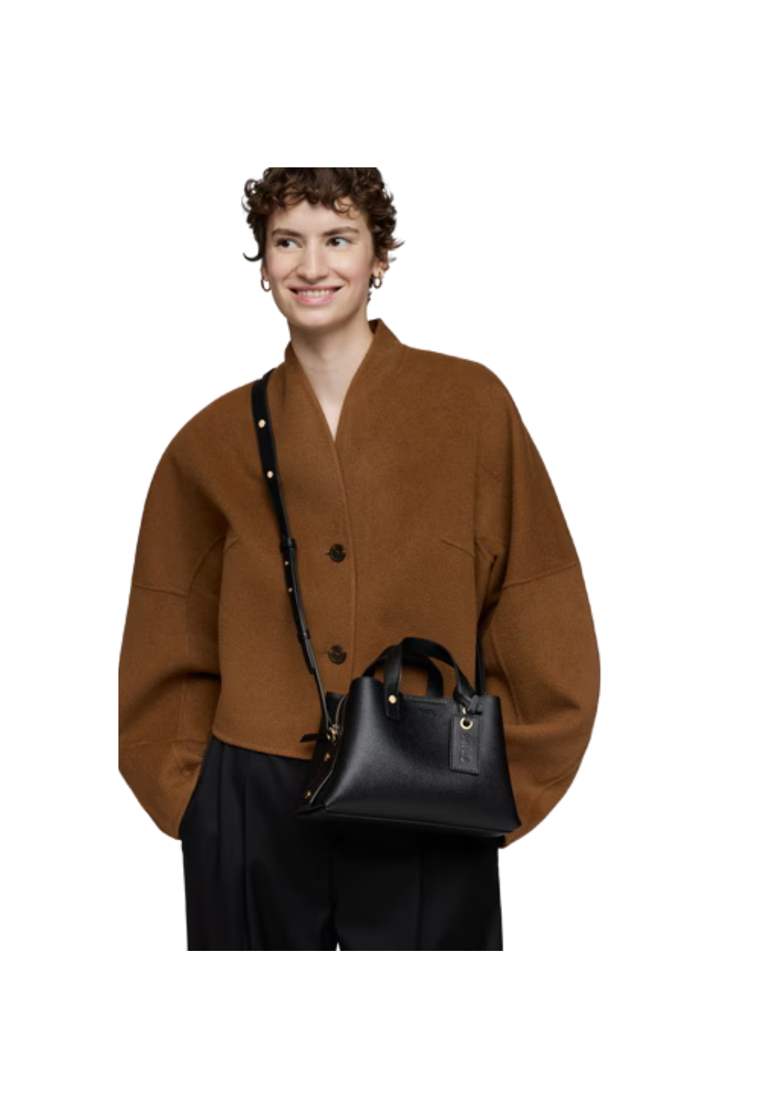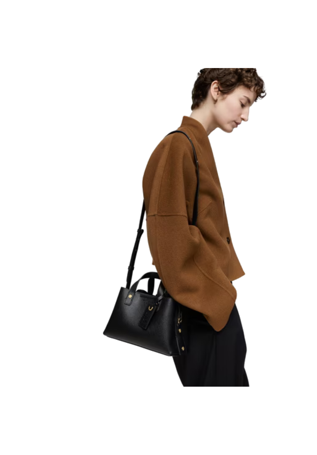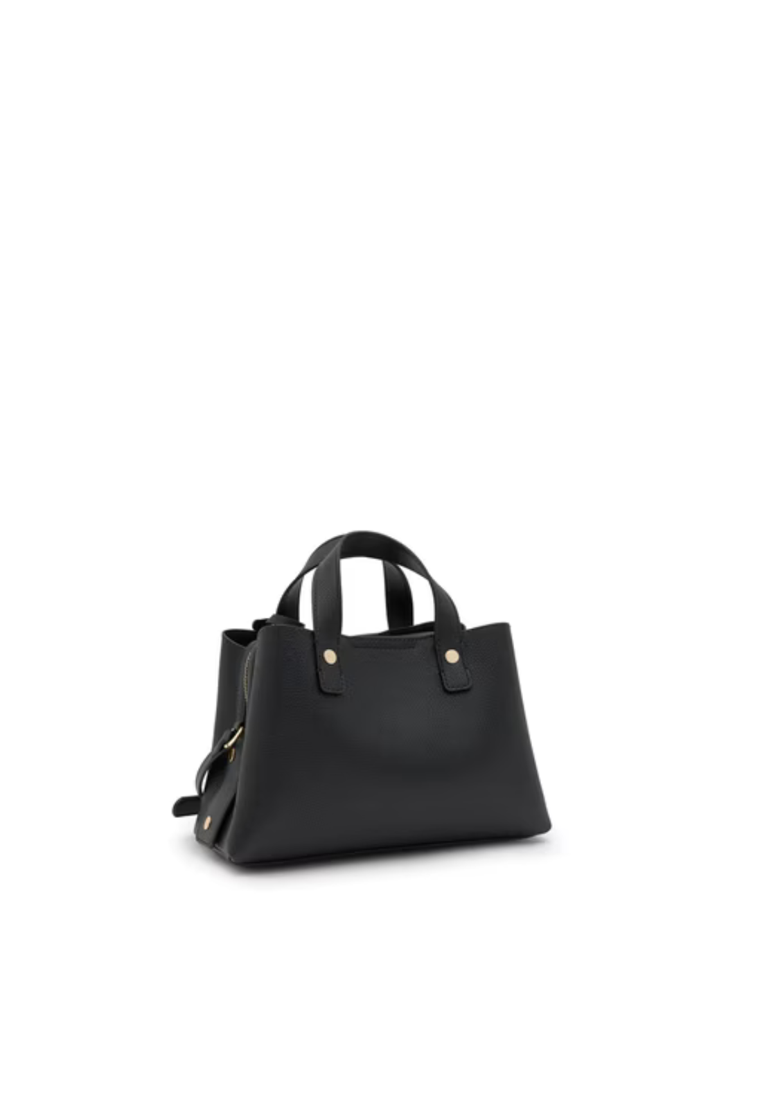 Bolso city pequeño The Citybow de poliuretano con cierre de cremallera. Bolsillo interior abierto. Asa fija de hombro y asa bandolera ajustable y extraíble. Medidas (alto x ancho x fondo): 13,5 x 25 x 15 cm.