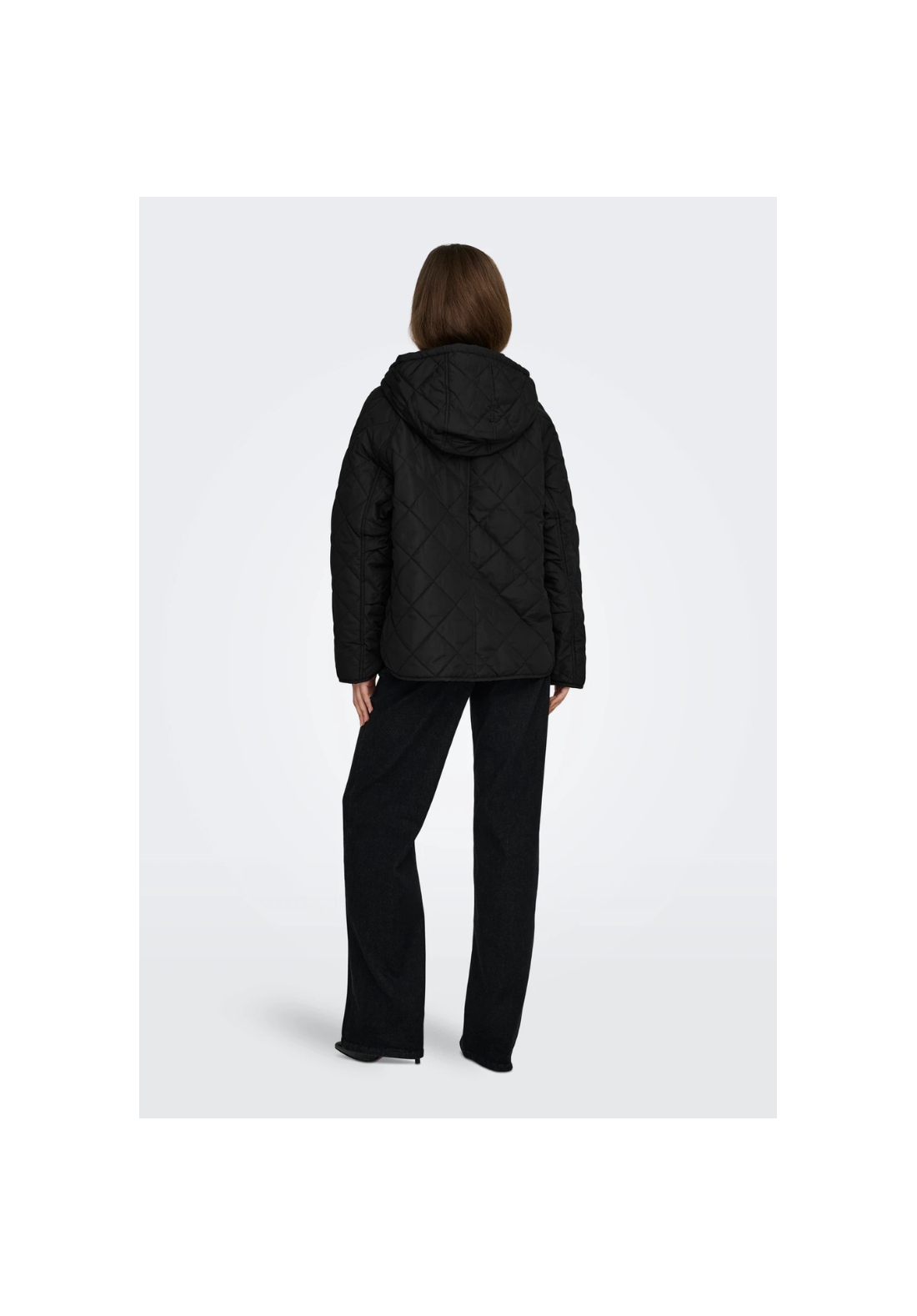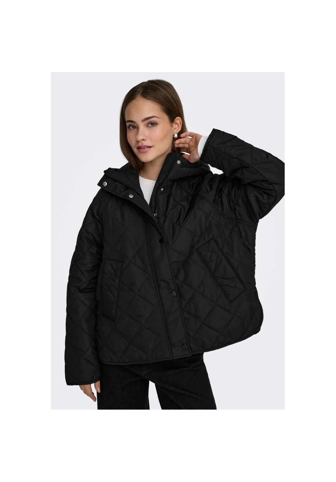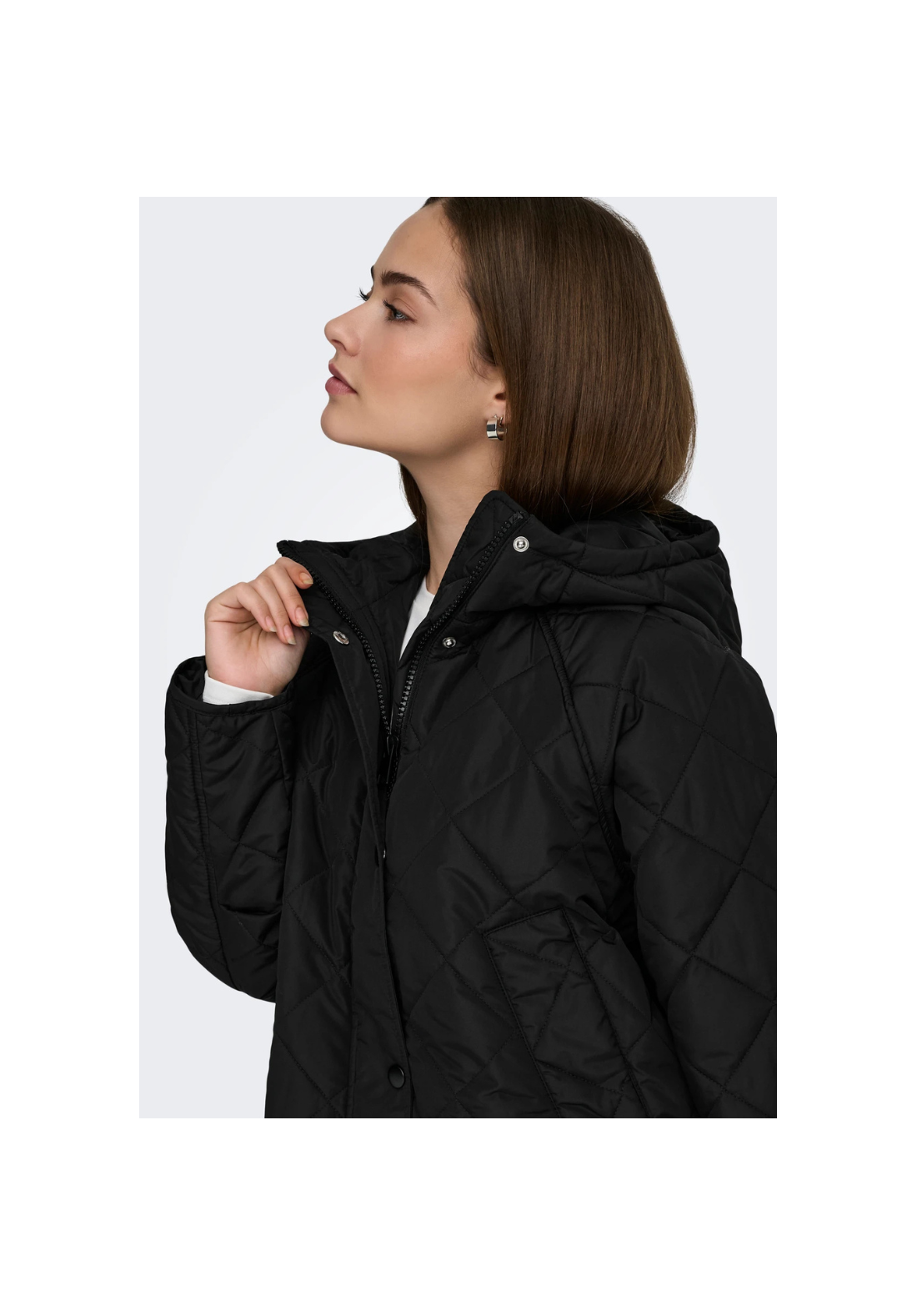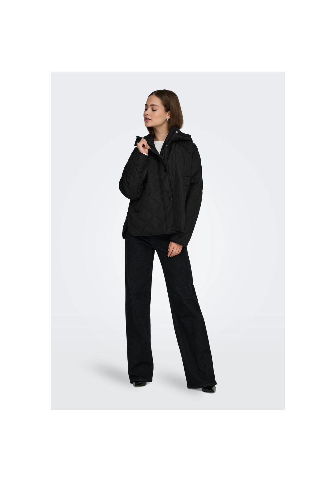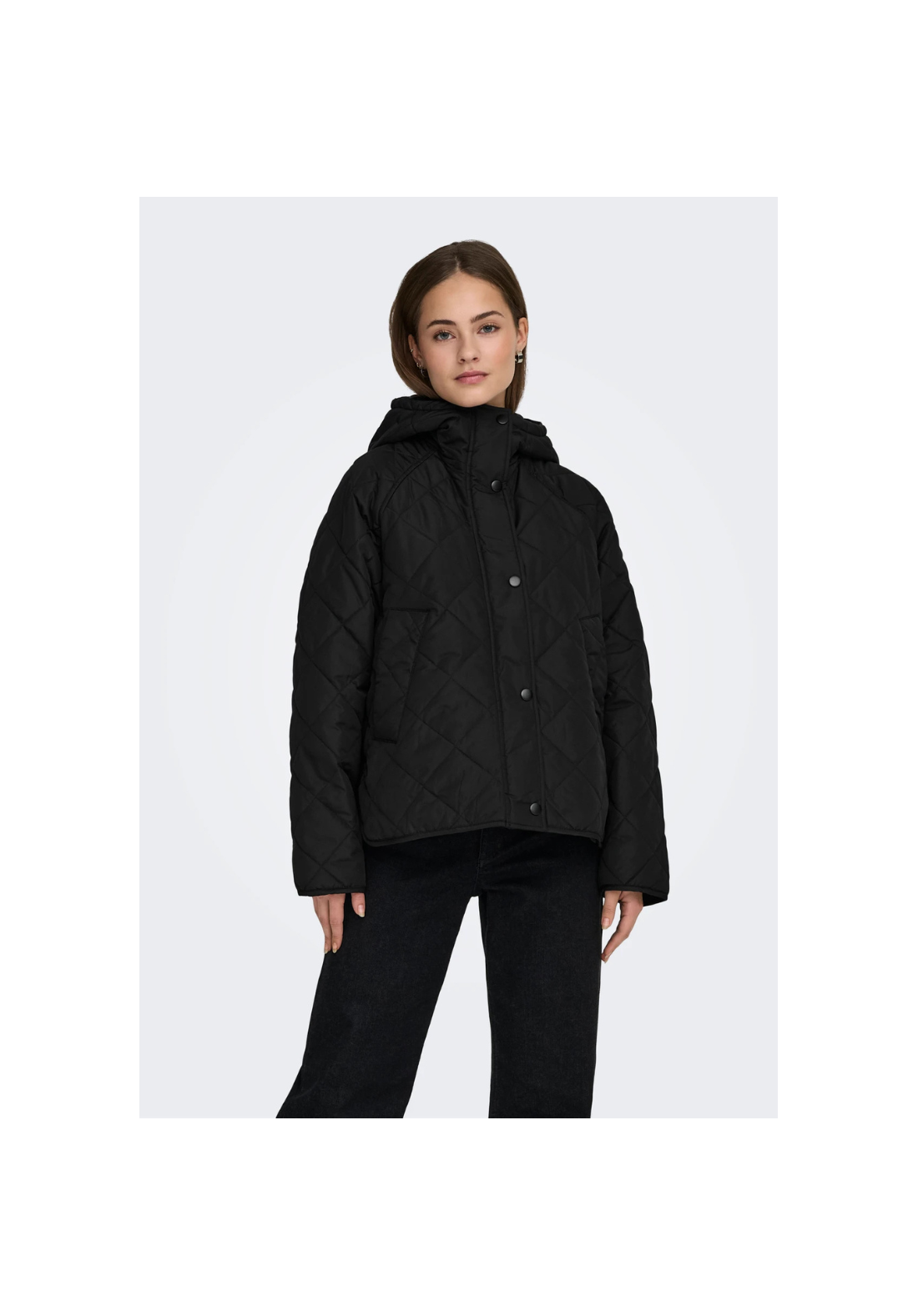 Chaqueta con cuello tipo beisbol, con cierre de botones, dos bolsillos laterales y capucha.