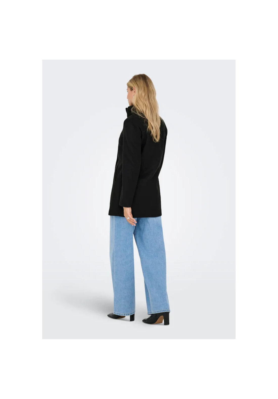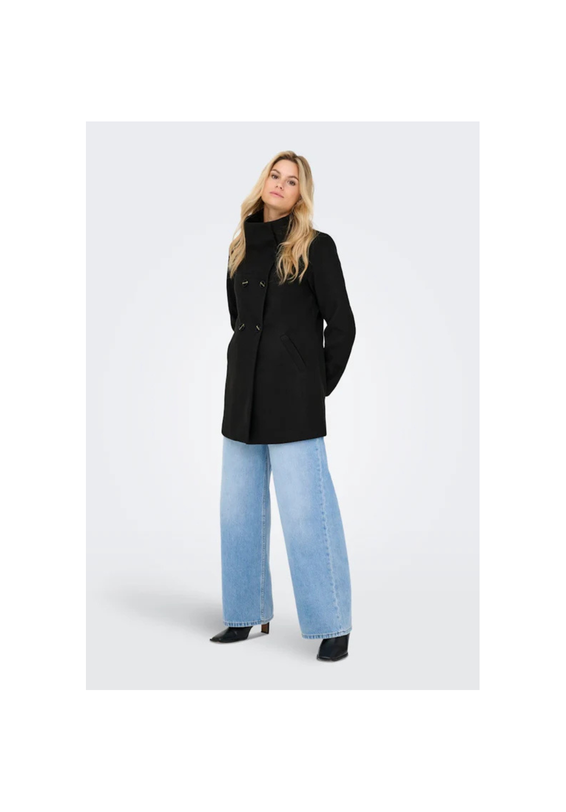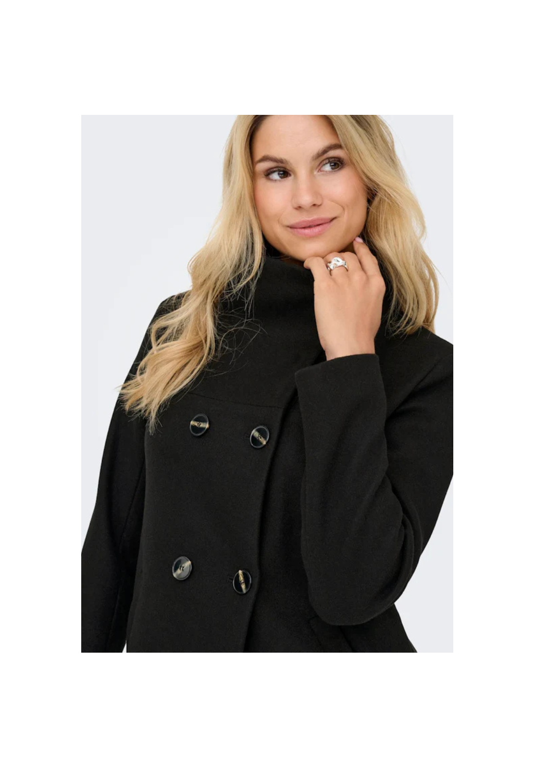 Abrigo de cuello reverso, con cierre de doble botonadura. Tiene bolsillos laterales