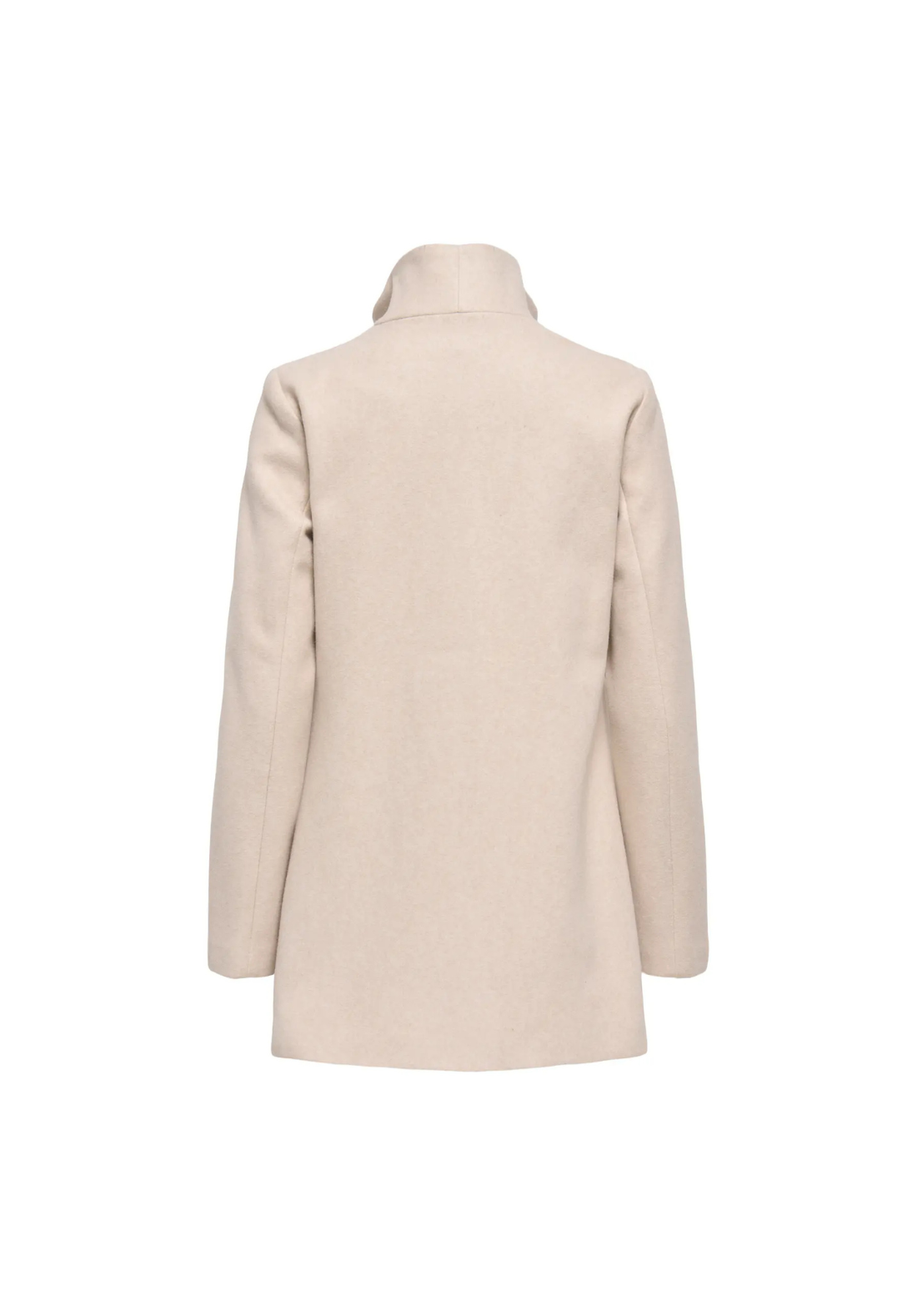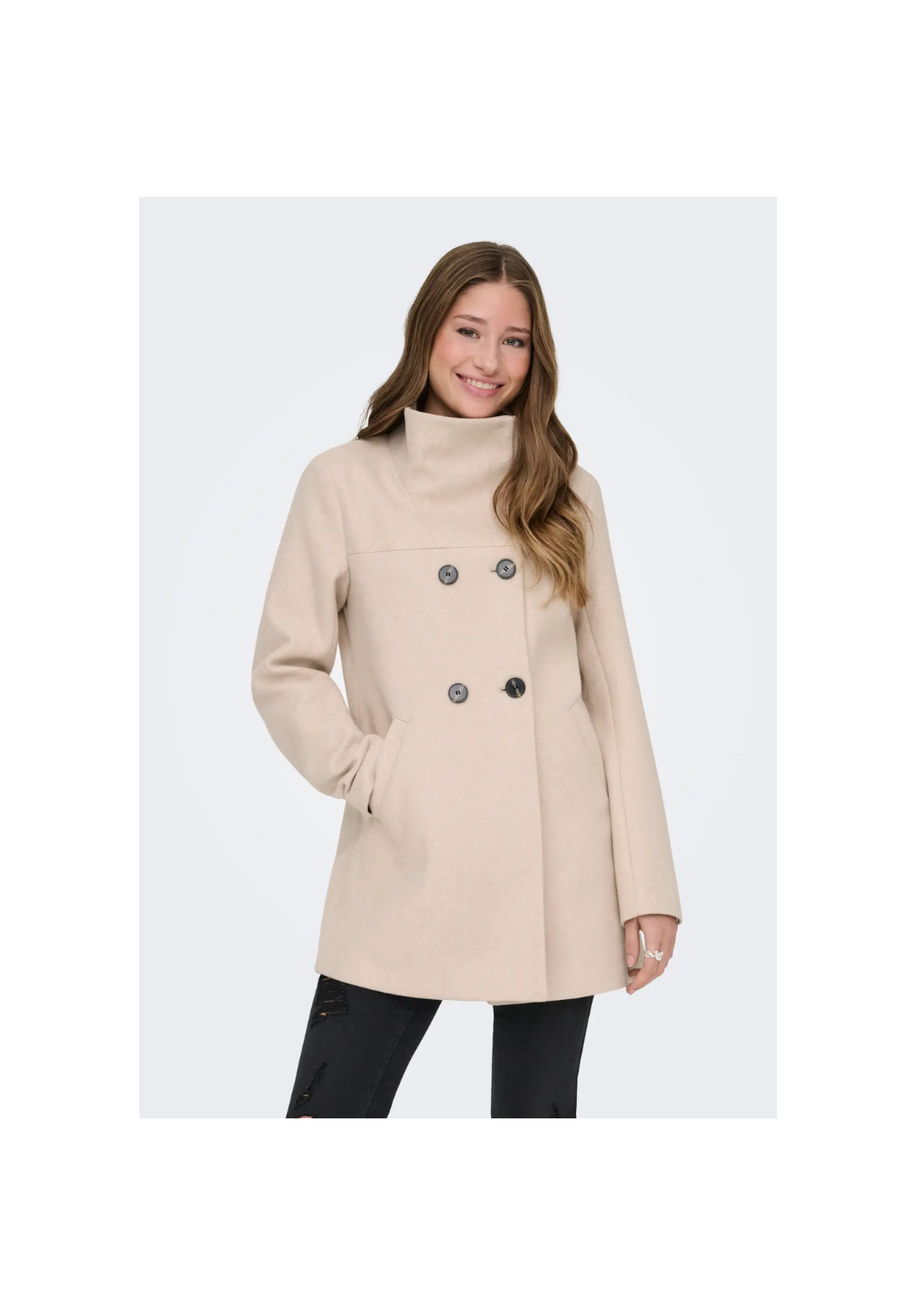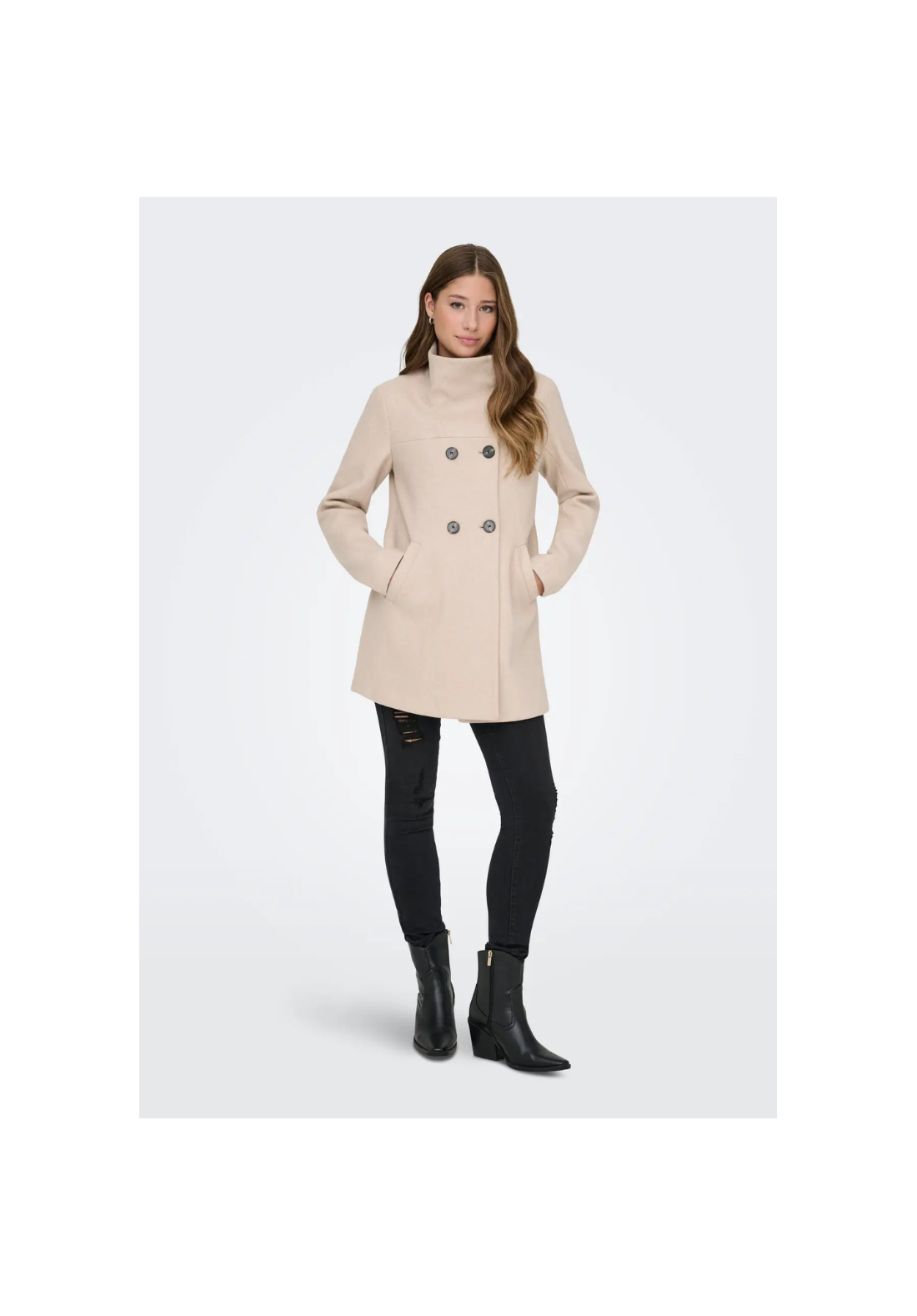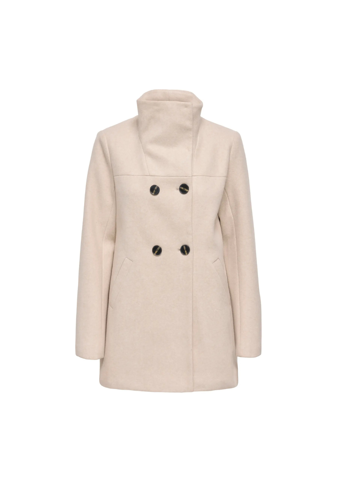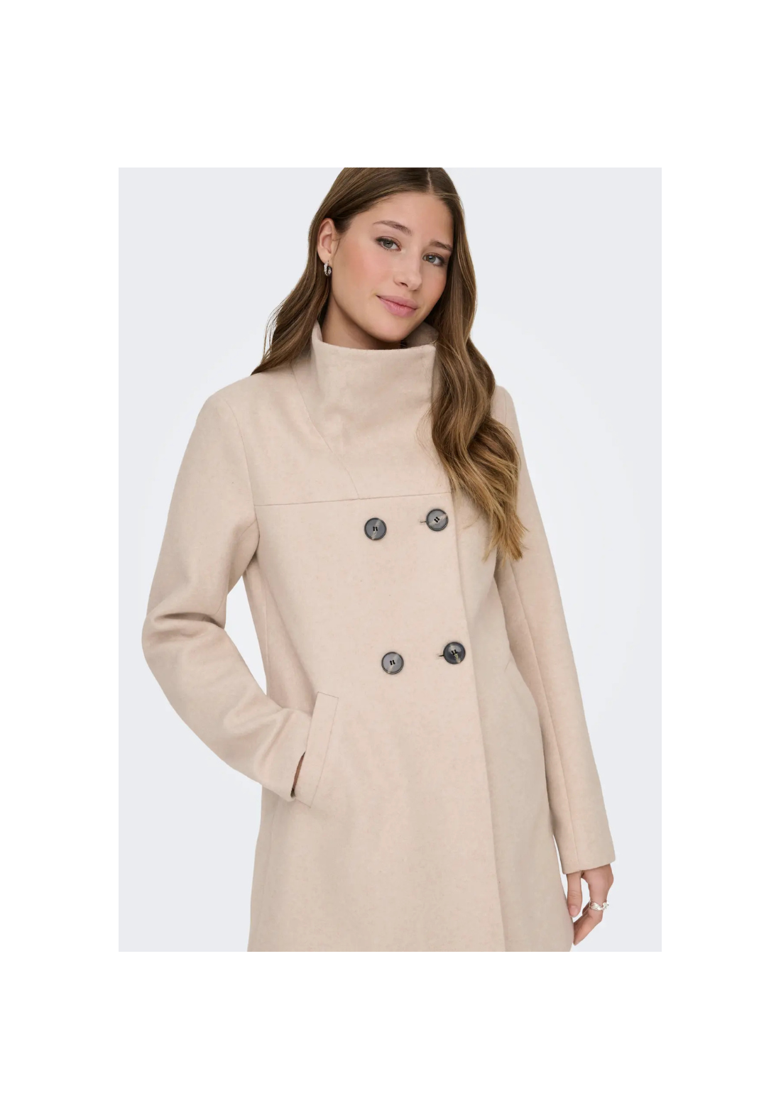 Abrigo de cuello reverso, con cierre de doble botonadura. Tiene bolsillos laterales