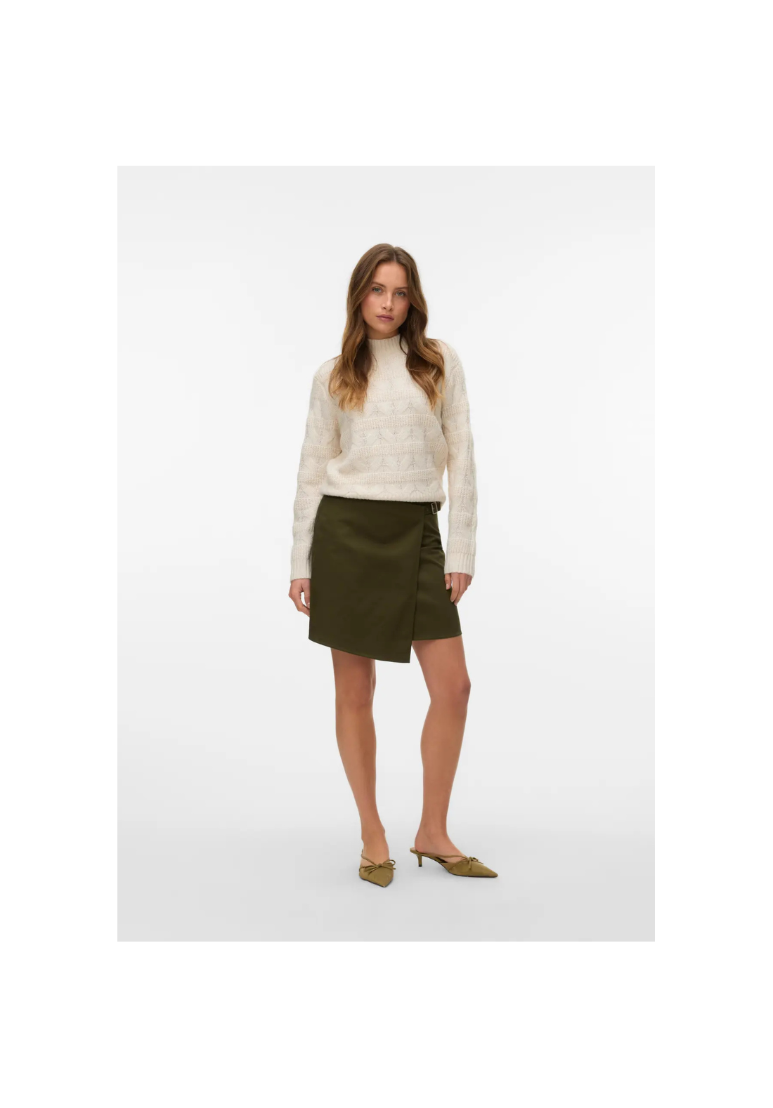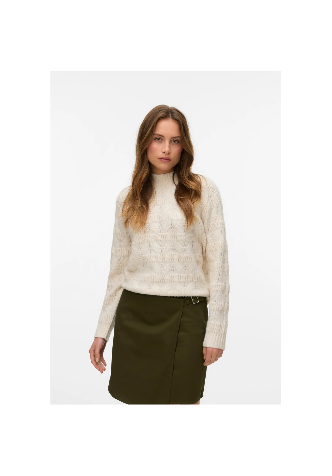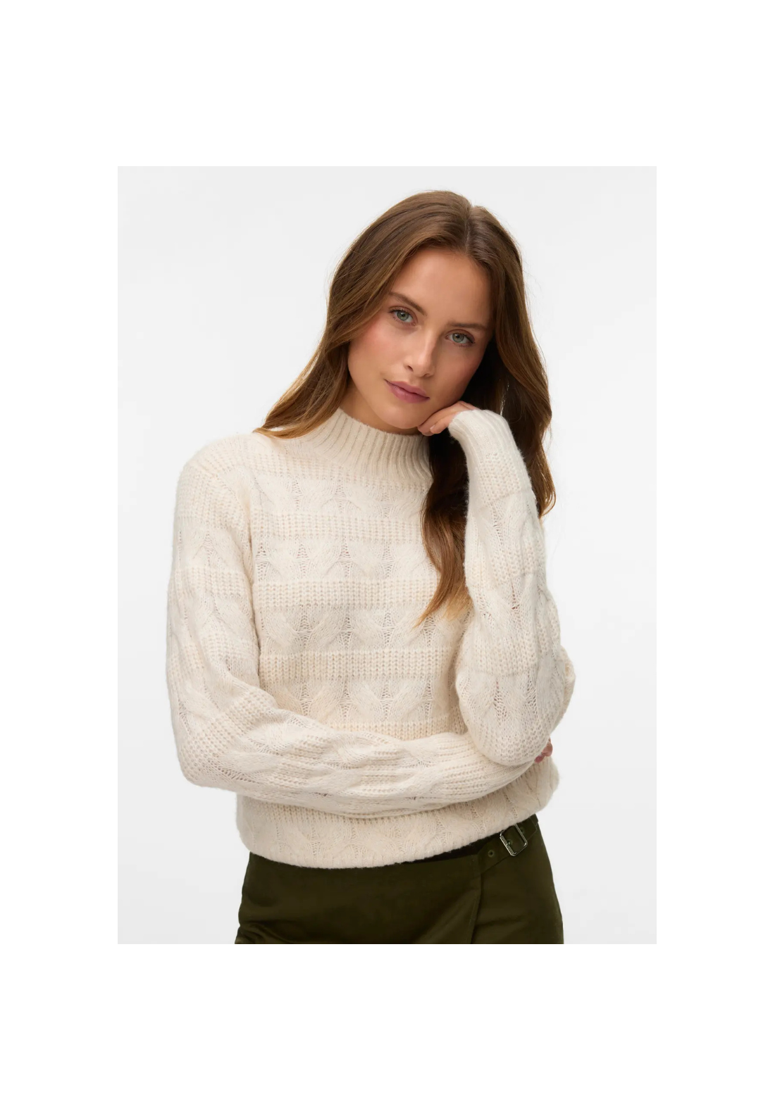 Jersey de punto, cuello alto, hombros caídos y puños acanalados.