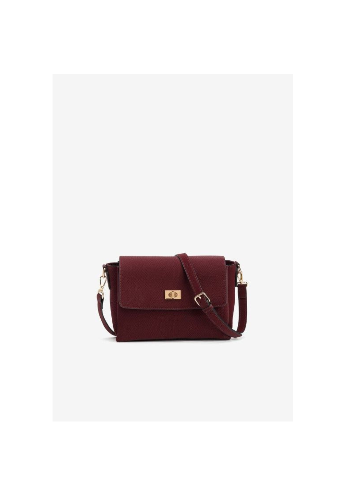 Bolso con textura, cierre metálico dorado y correa ajustable. Diseño moderno.